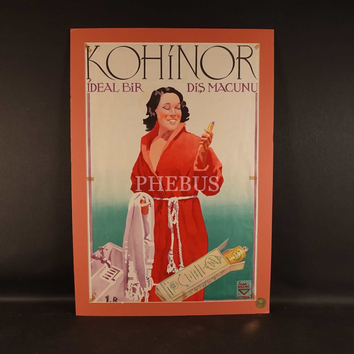 İhap Hulusi tasarımlı Kohinor Diş Macunu afişi, "Kohinor: İdeal Bir Diş Macunu", 70x100 cm...