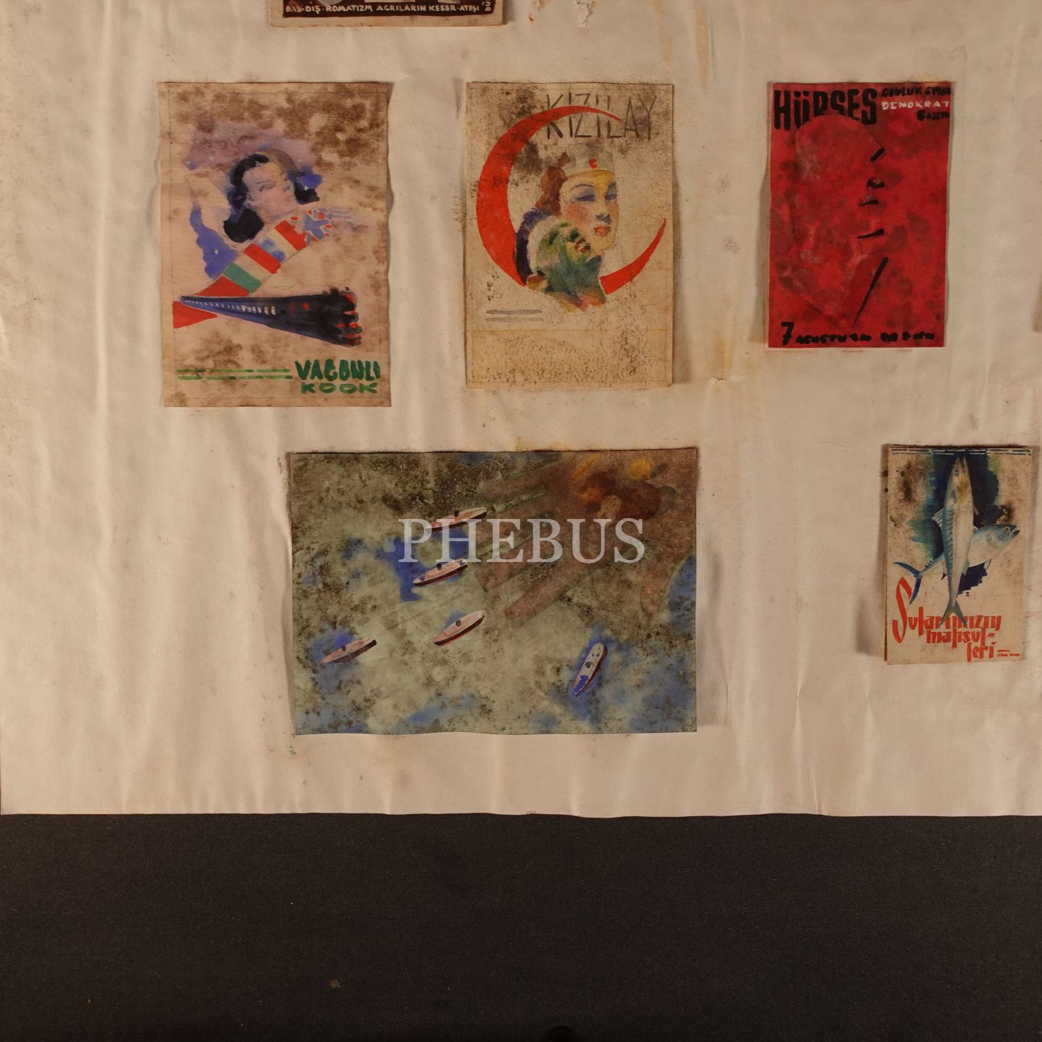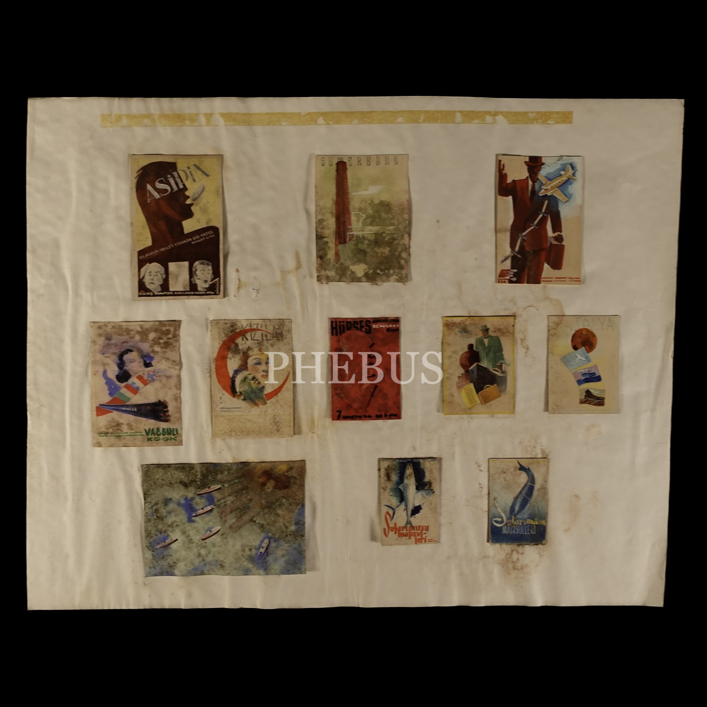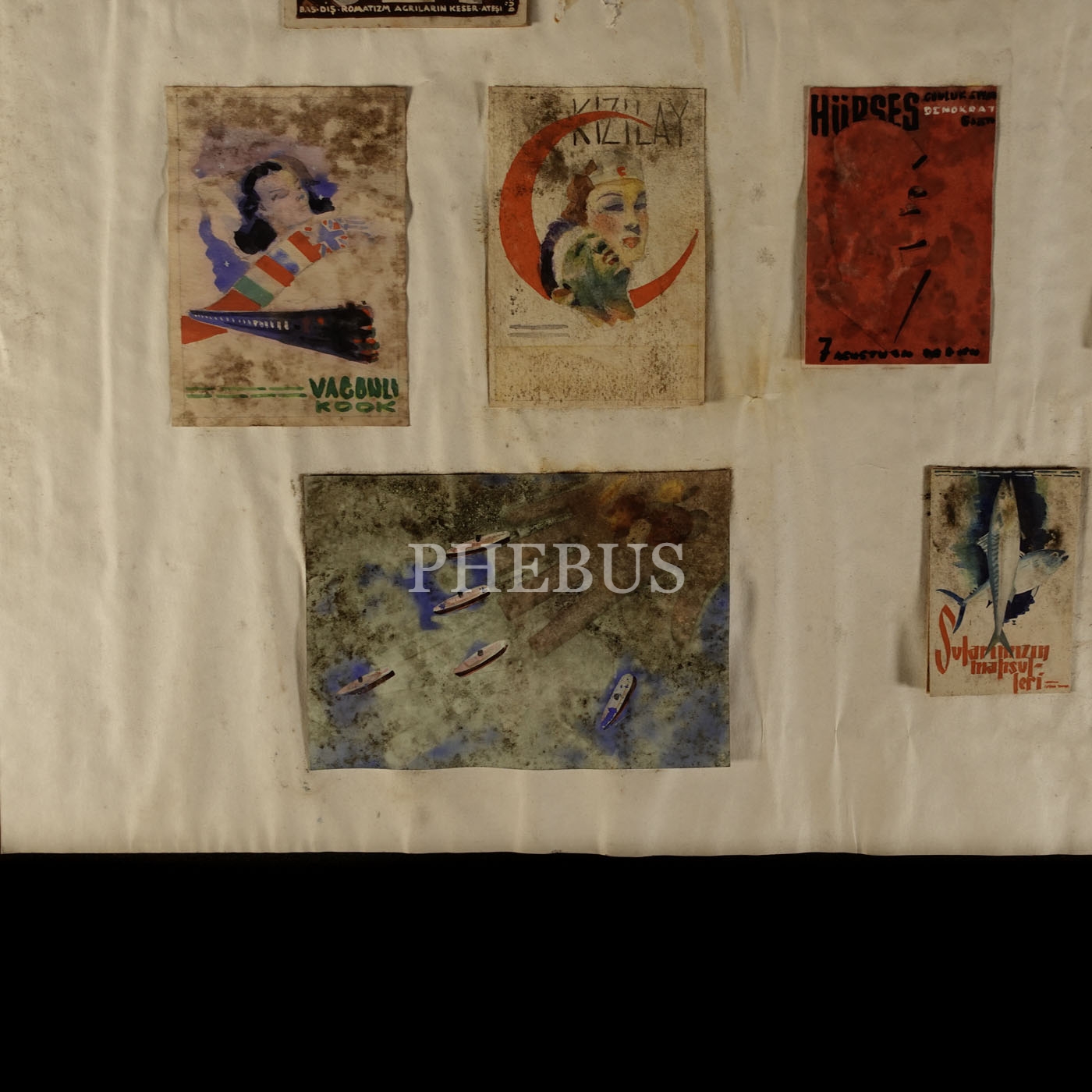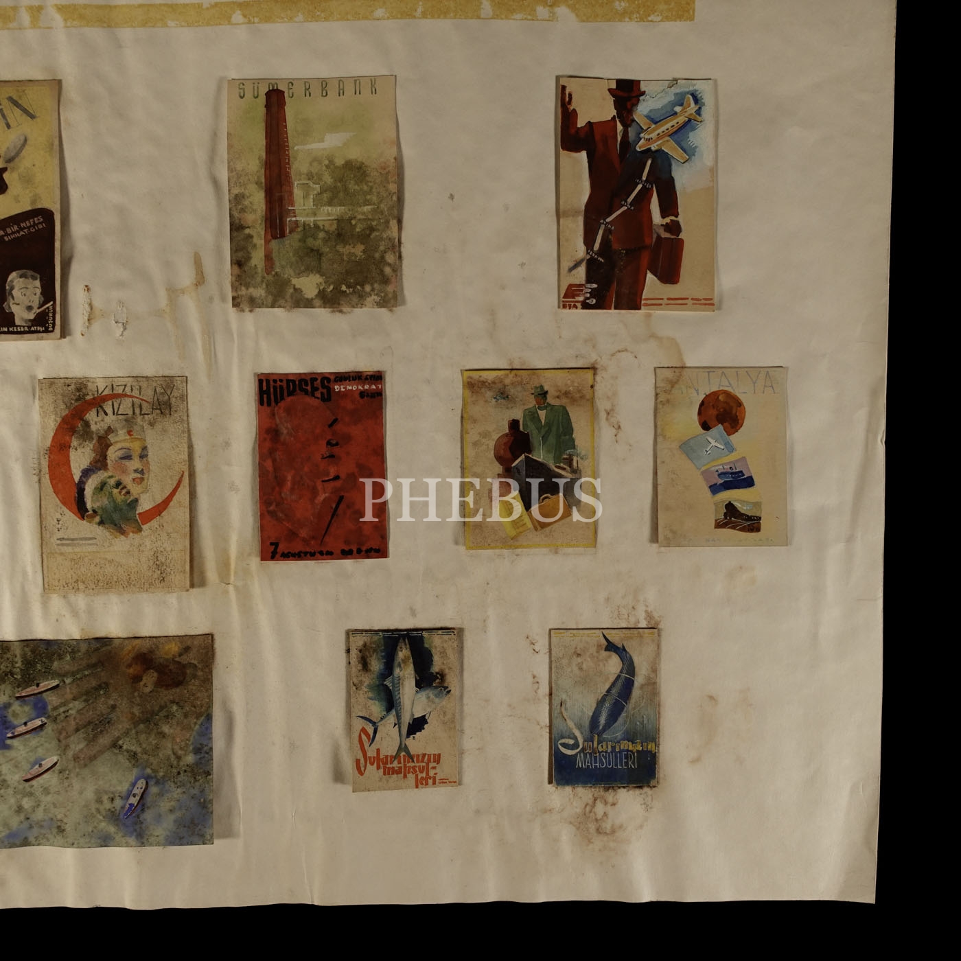 İhap Hulusi´nin küçük kartonlar üzerine resmettiği orijinal afiş taslakları, 8x11 cm...