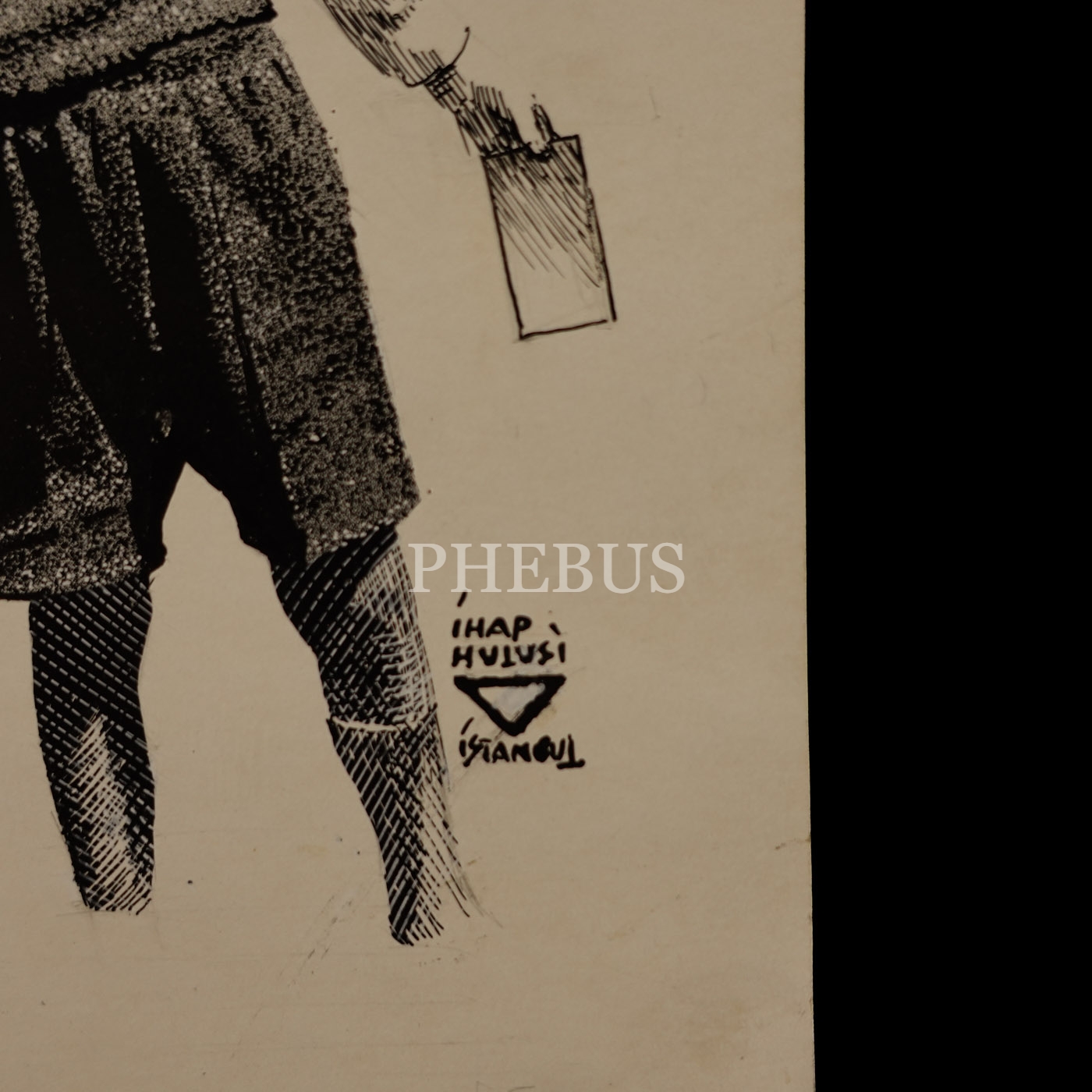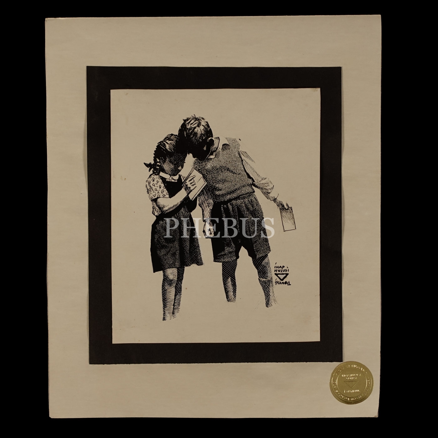İhap Hulusi´nin ıslak imzasıyla öğrenci çocuklar temalı orijinal çizim, kâğıt üzeri çini mürekkebi, çizim 19x23 cm, paspartu 31x37 cm...