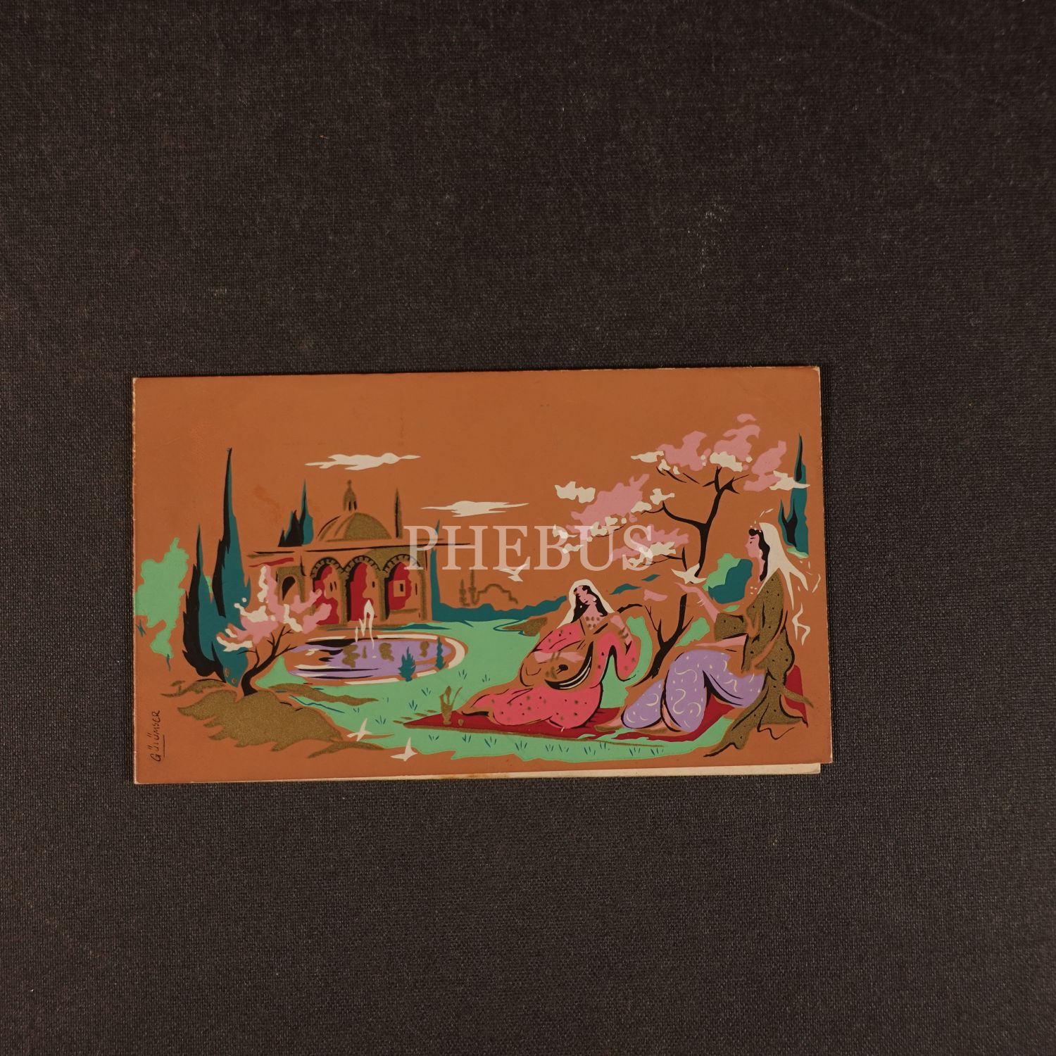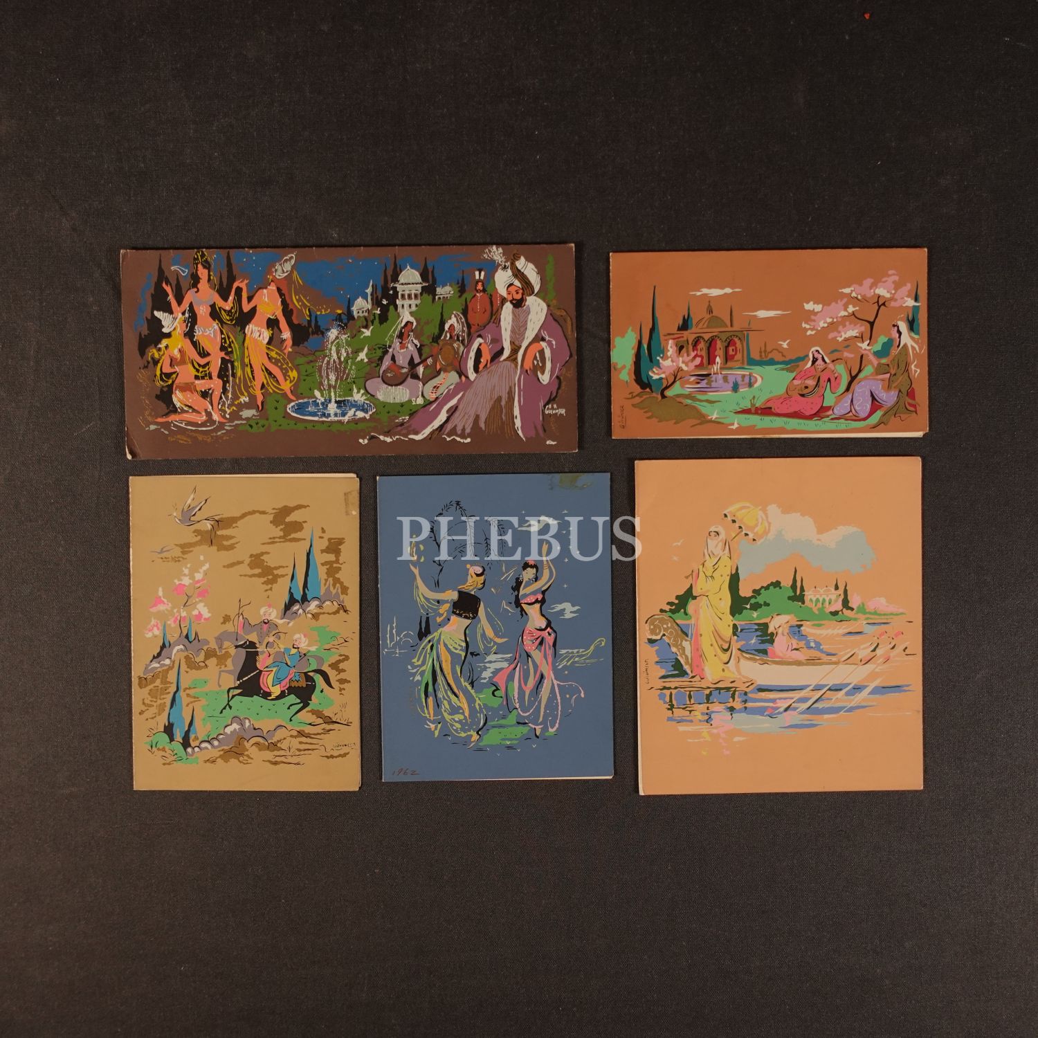 Gülümser Aral´ın, Tufan Yayınları için 1957-58 yıllarında hazırladığı, eski İstanbul ve saray yaşamı temalı bayram tebrik kartı çizimlerinin serigrafi baskıları (6 adet),