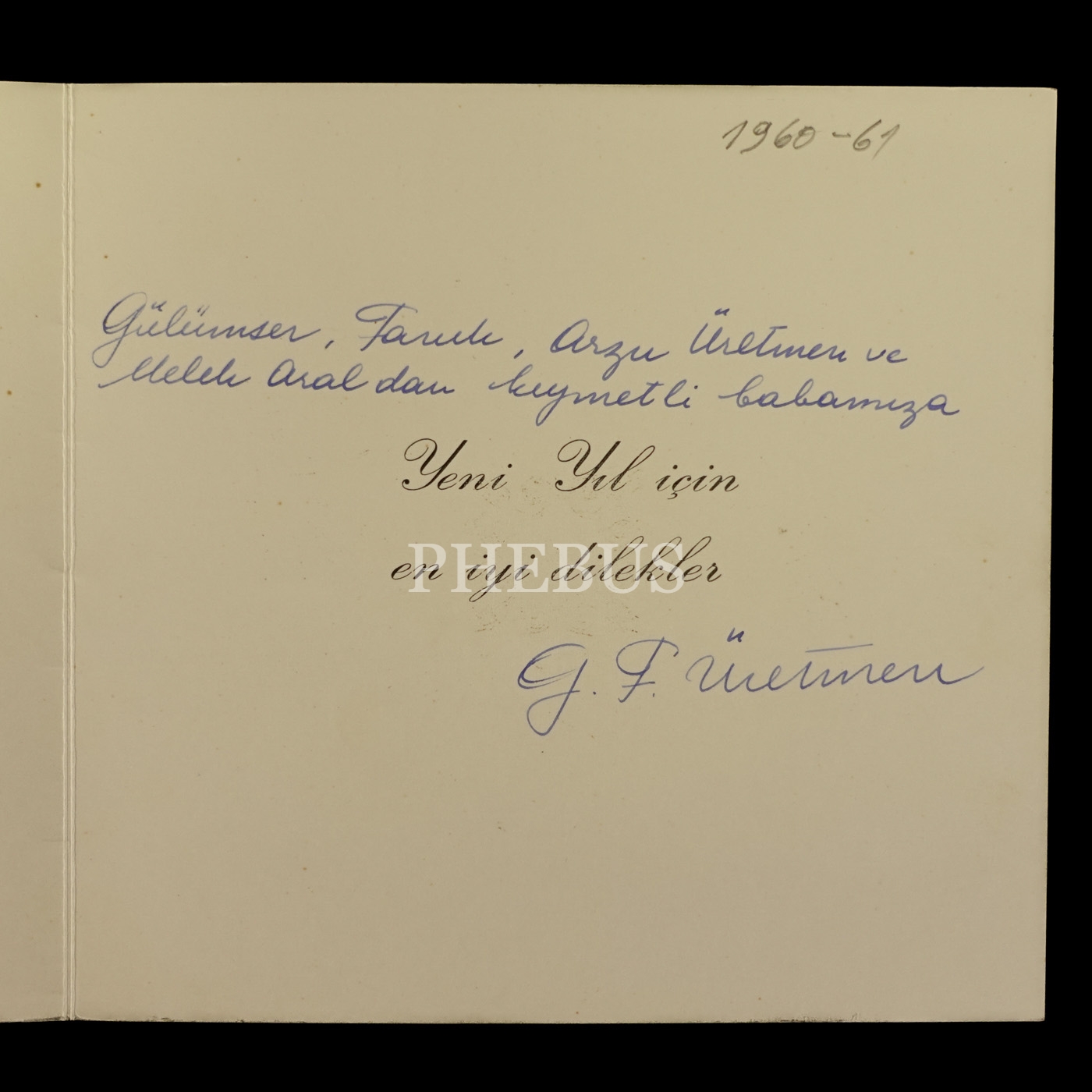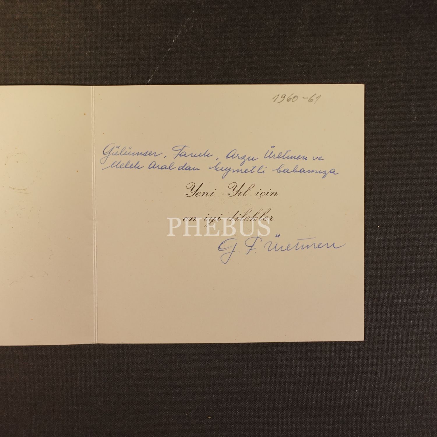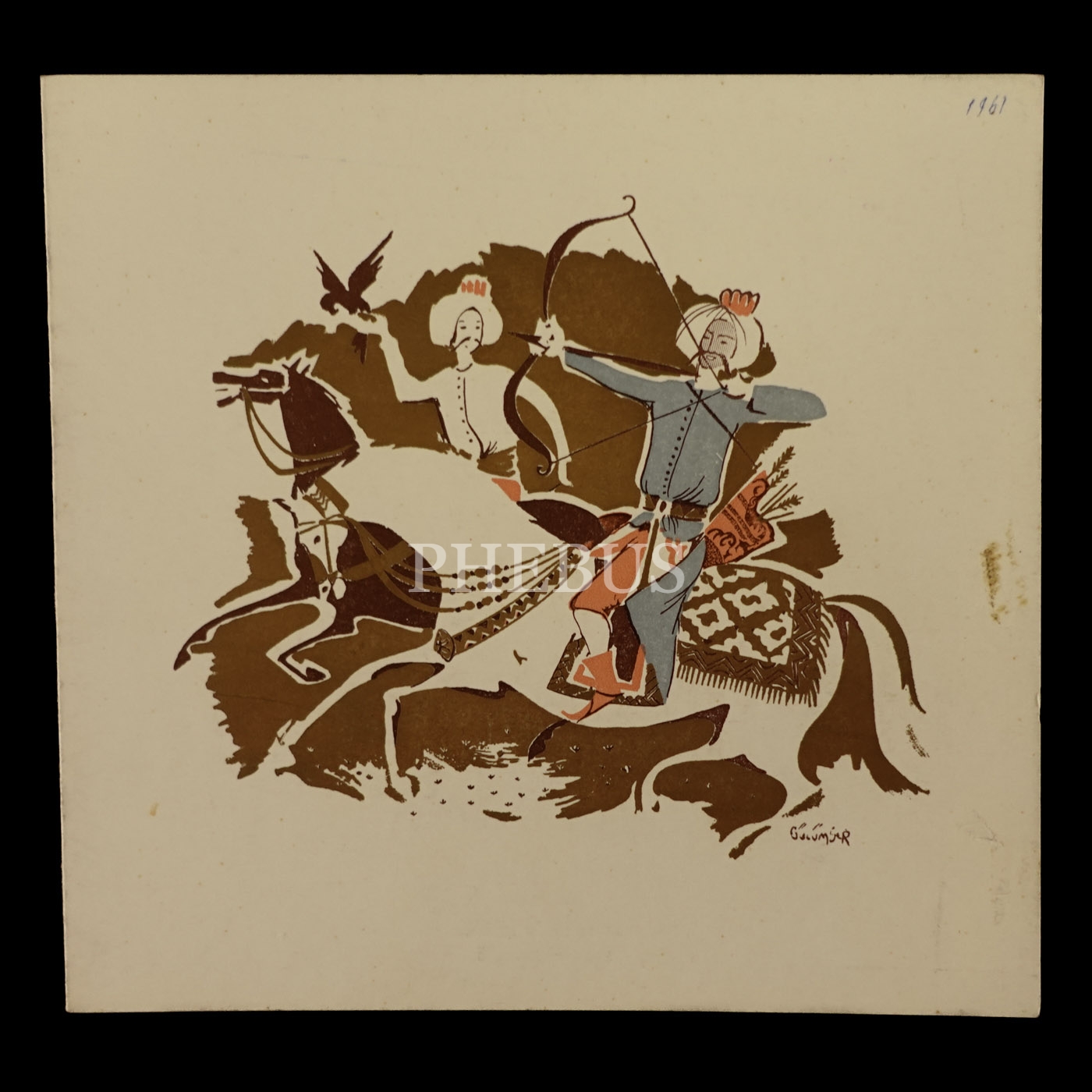 Gülümser Aral´ın, 1960-61 yıllarında Atina Türk Sefareti için tasarladığı, Türk motif ve figürleri görselli, serigrafi baskı yeni yıl tebrik kartları (10 adet), bir kısmı doldurulmuş, ortalama 16,5x17 cm...
