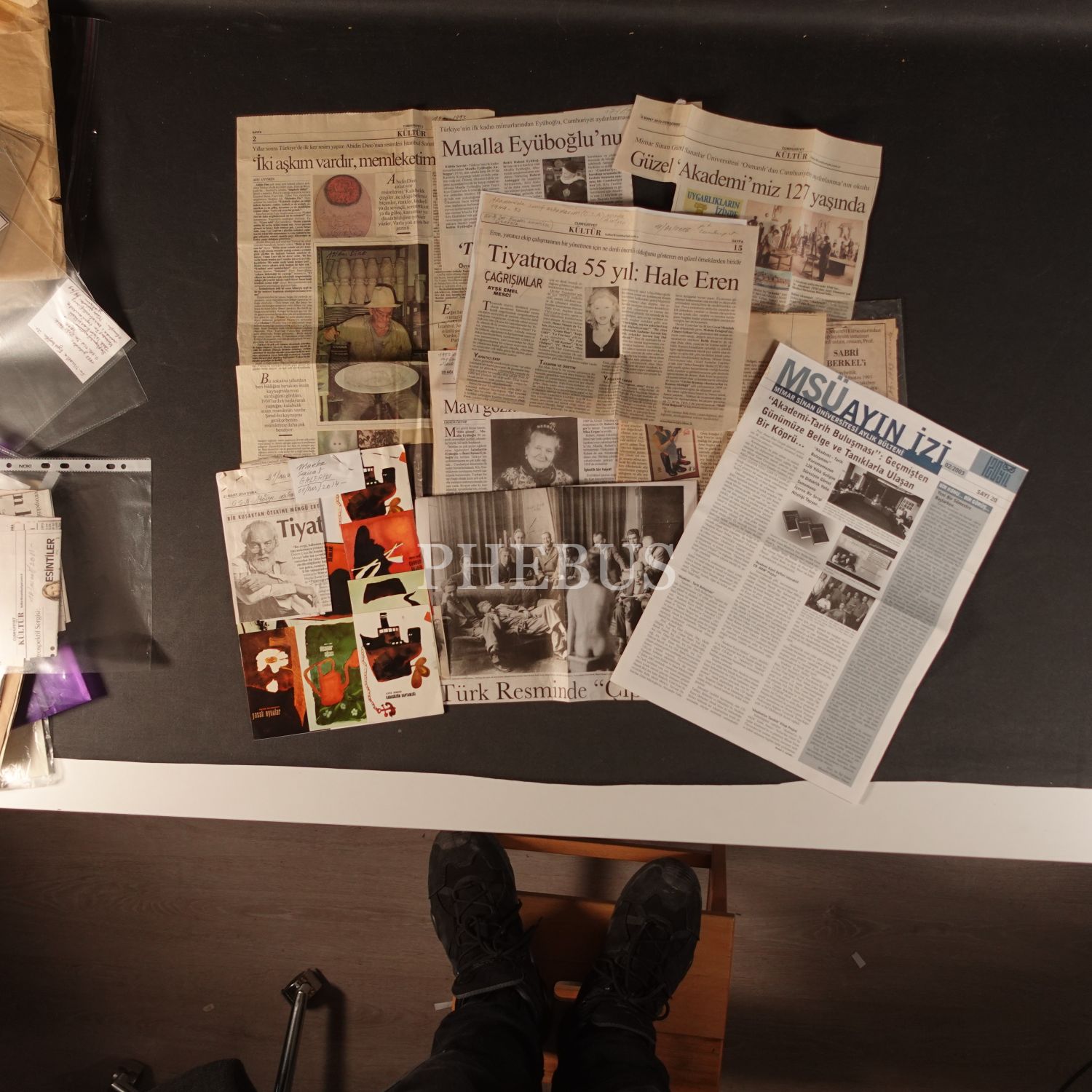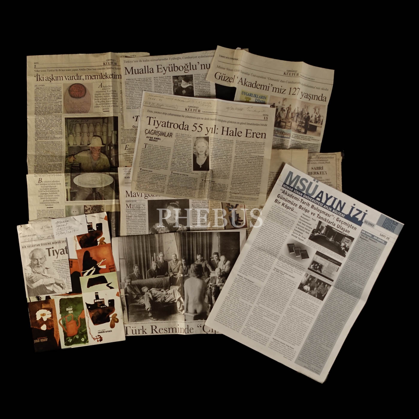 Gülümser Aral´ın, Güzel Sanatlar Akademisi´ne, akademiden dostlarına ve hocalarına, meslektaşlarına dair çeşitli yıllarda çıkan haber kupürlerini toplayıp, üzerlerine birtakım notlar aldığı lot...