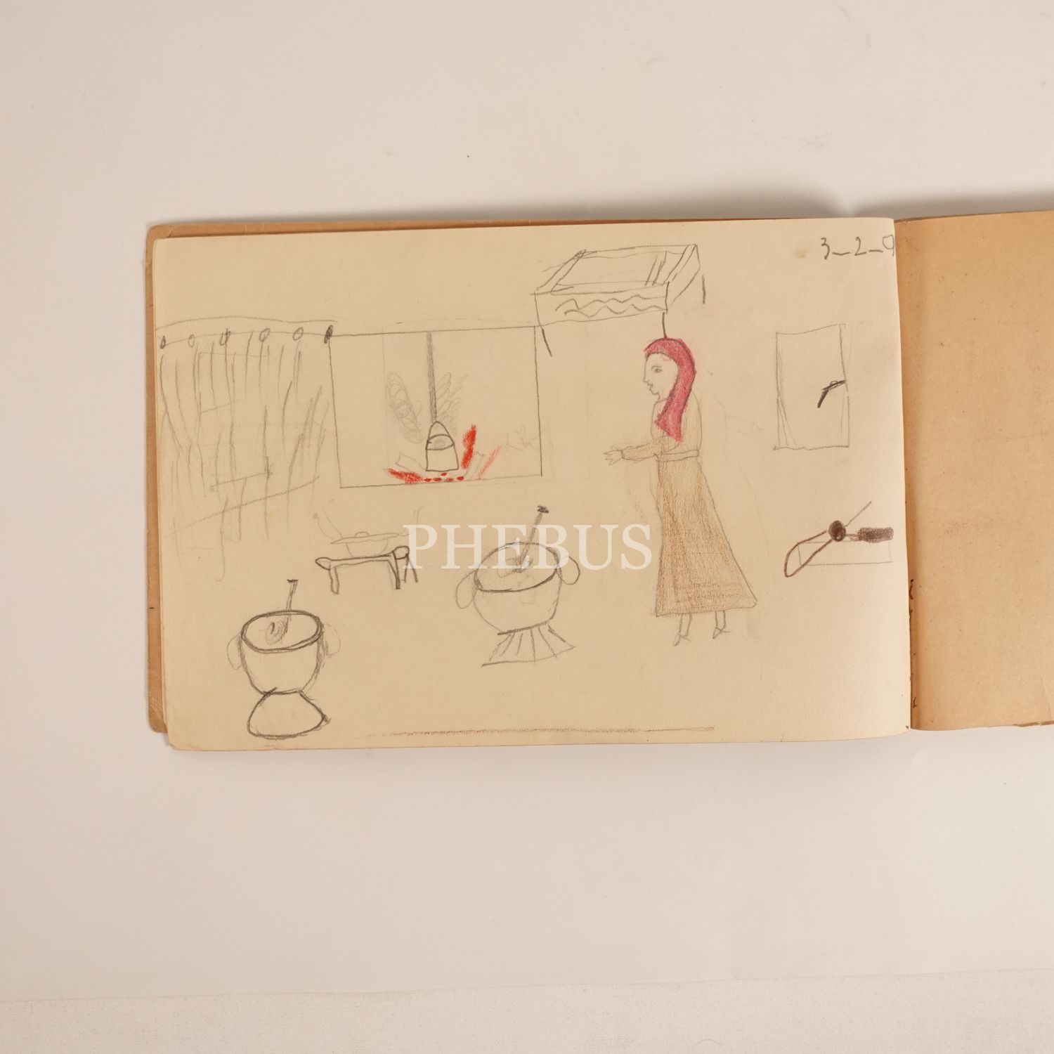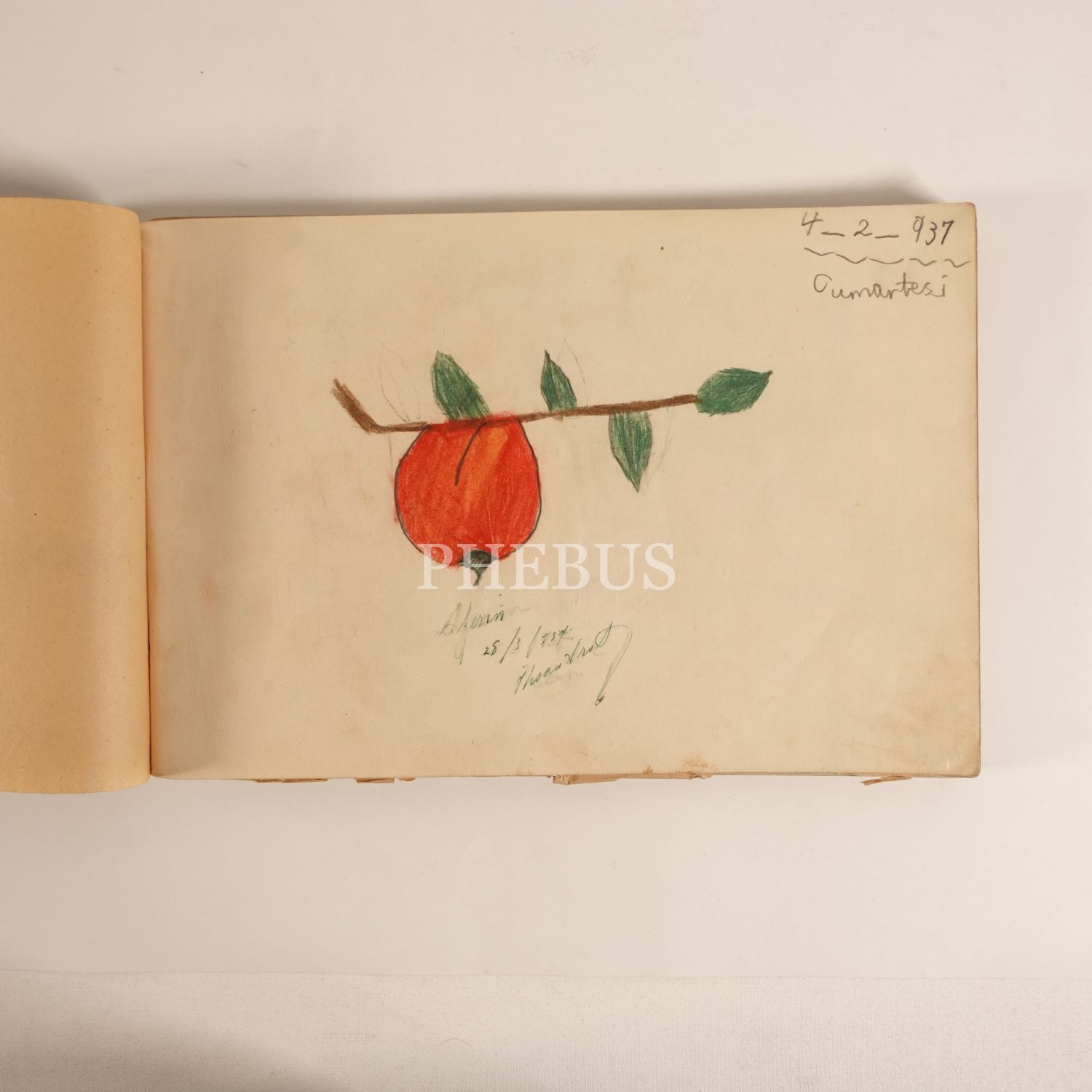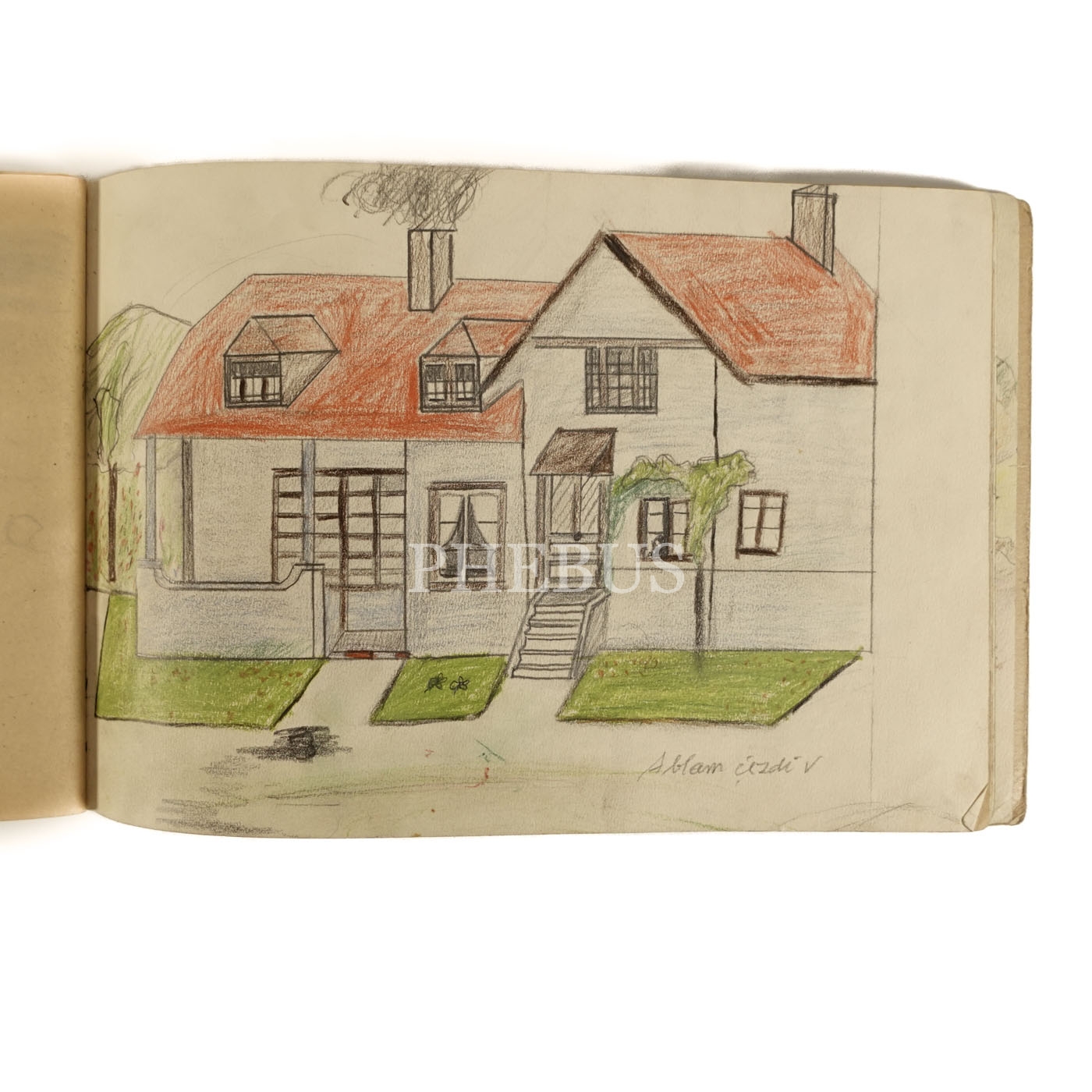 Gülümser Aral´ın, 1937 yılında, 8 yaşındayken çizdiği resimleri içeren resim defteri, içerisinde 74 resim yer almaktadır, 27x18 cm...