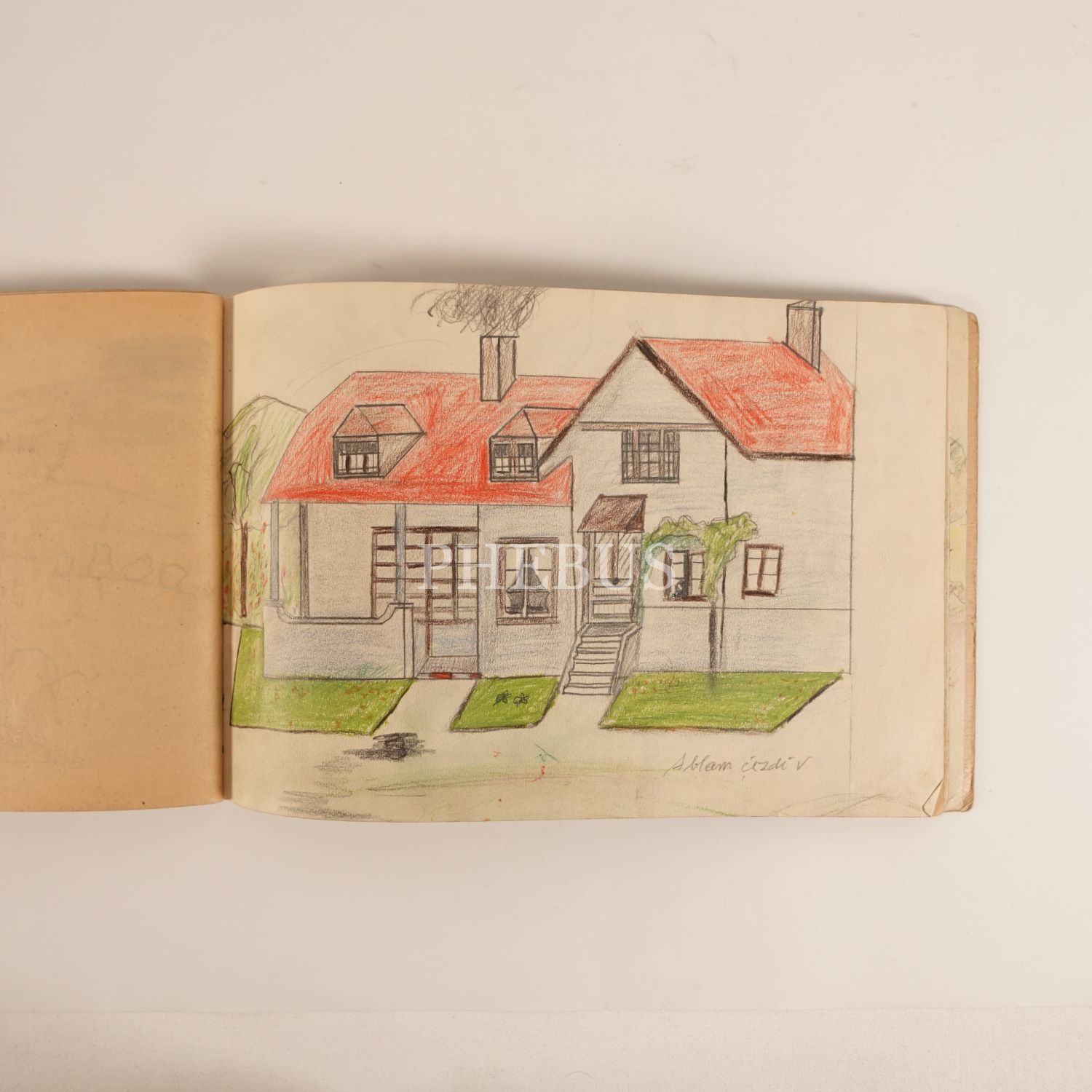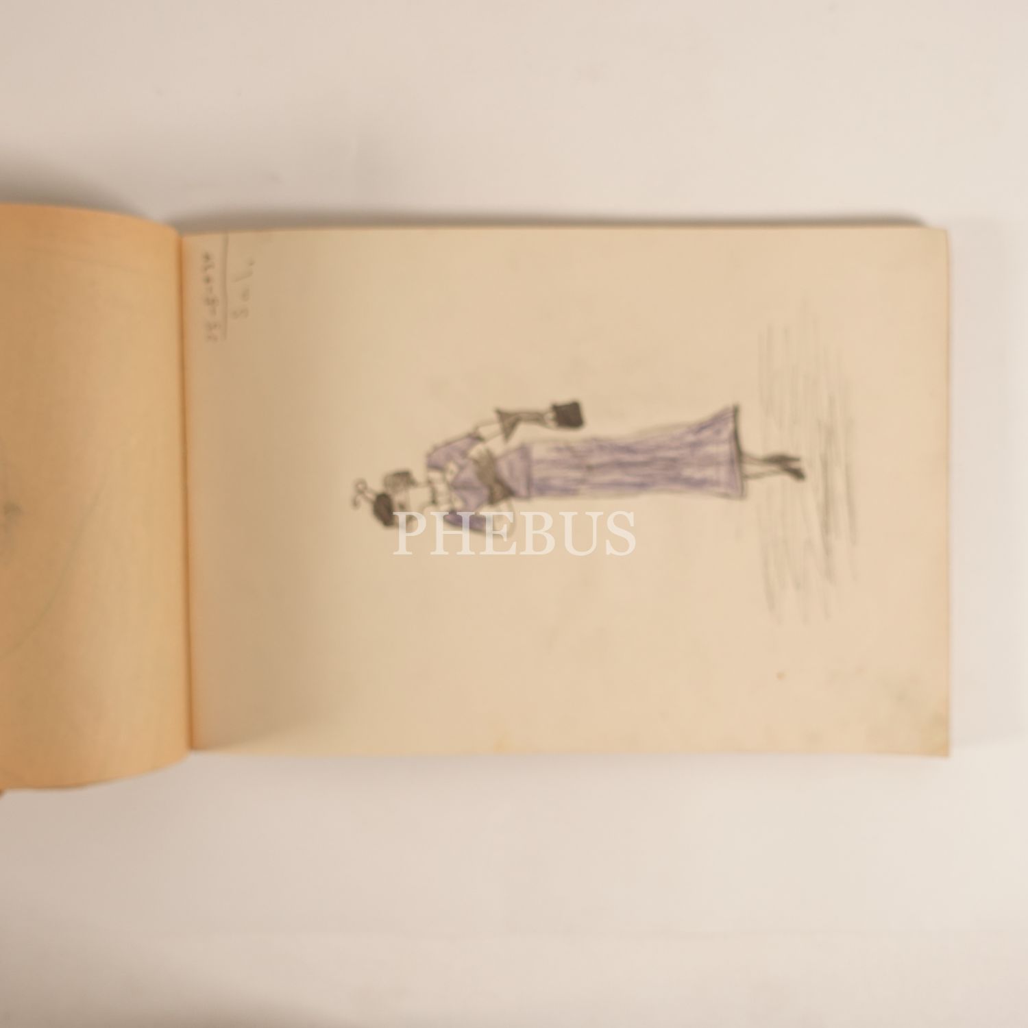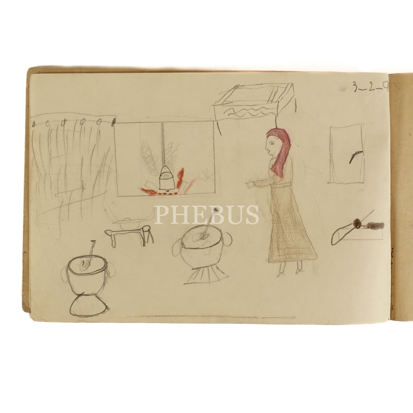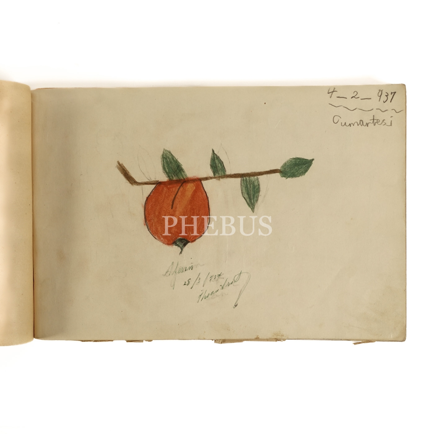 Gülümser Aral´ın, 1937 yılında, 8 yaşındayken çizdiği resimleri içeren resim defteri, içerisinde 74 resim yer almaktadır, 27x18 cm...