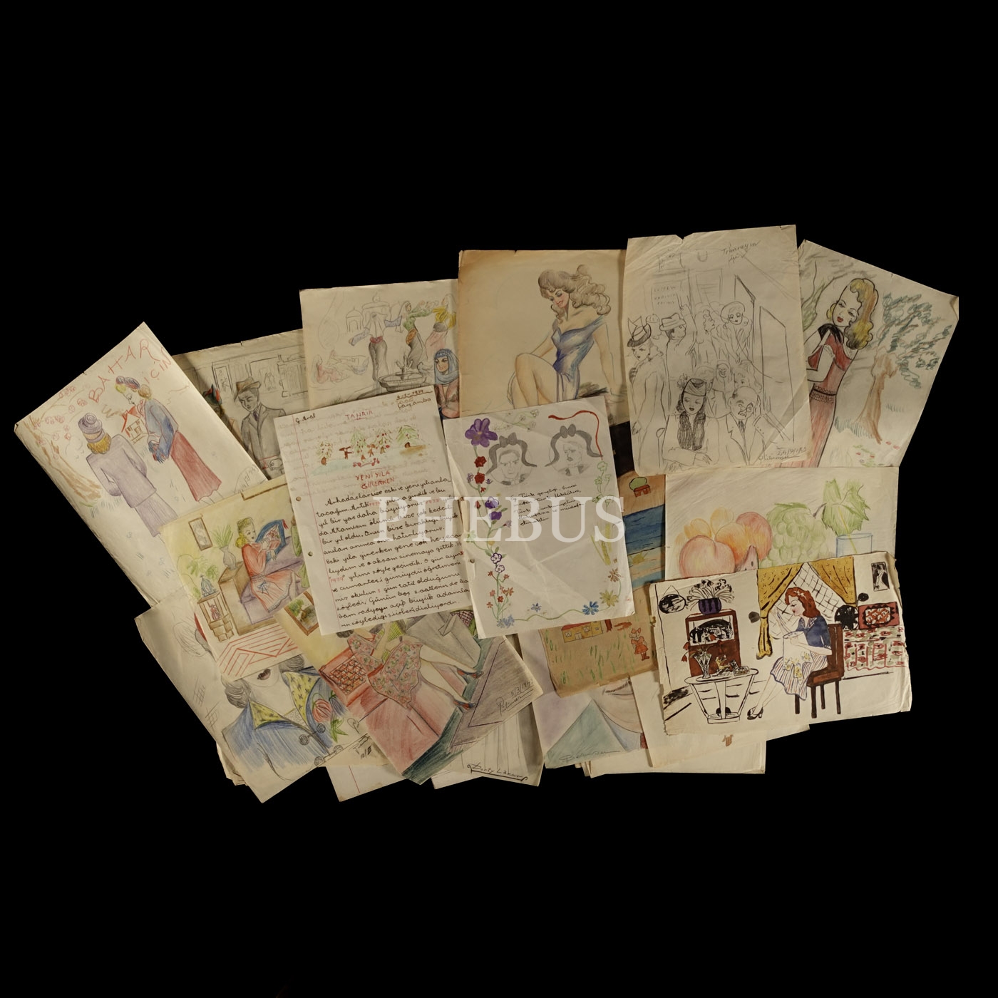 Gülümser Aral´ın, 1930´lu yılların sonralarından 1940´lı yılların ortalarına dek çizdiği 56 adet resim, muhtelif ebatlarda...