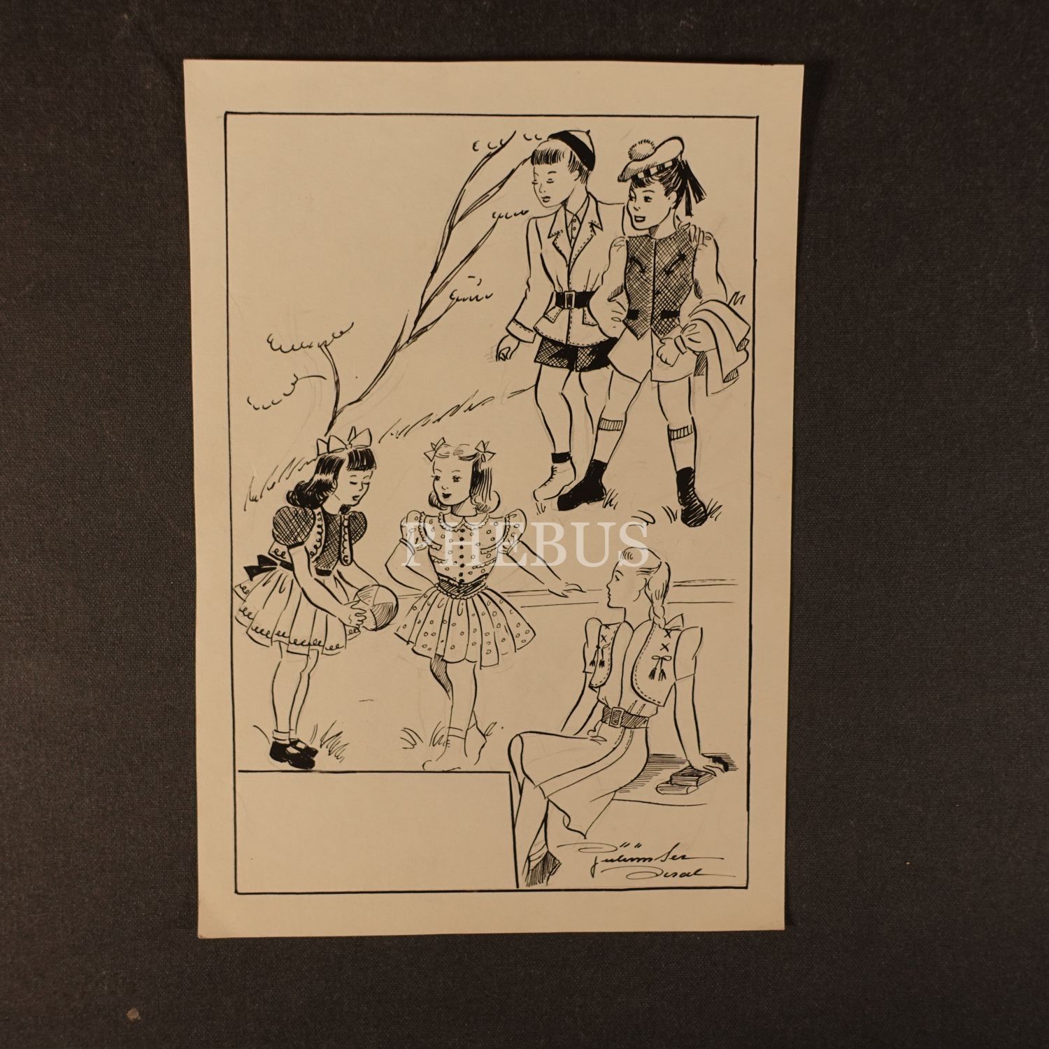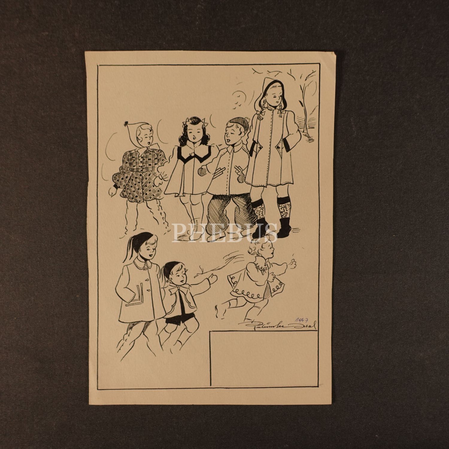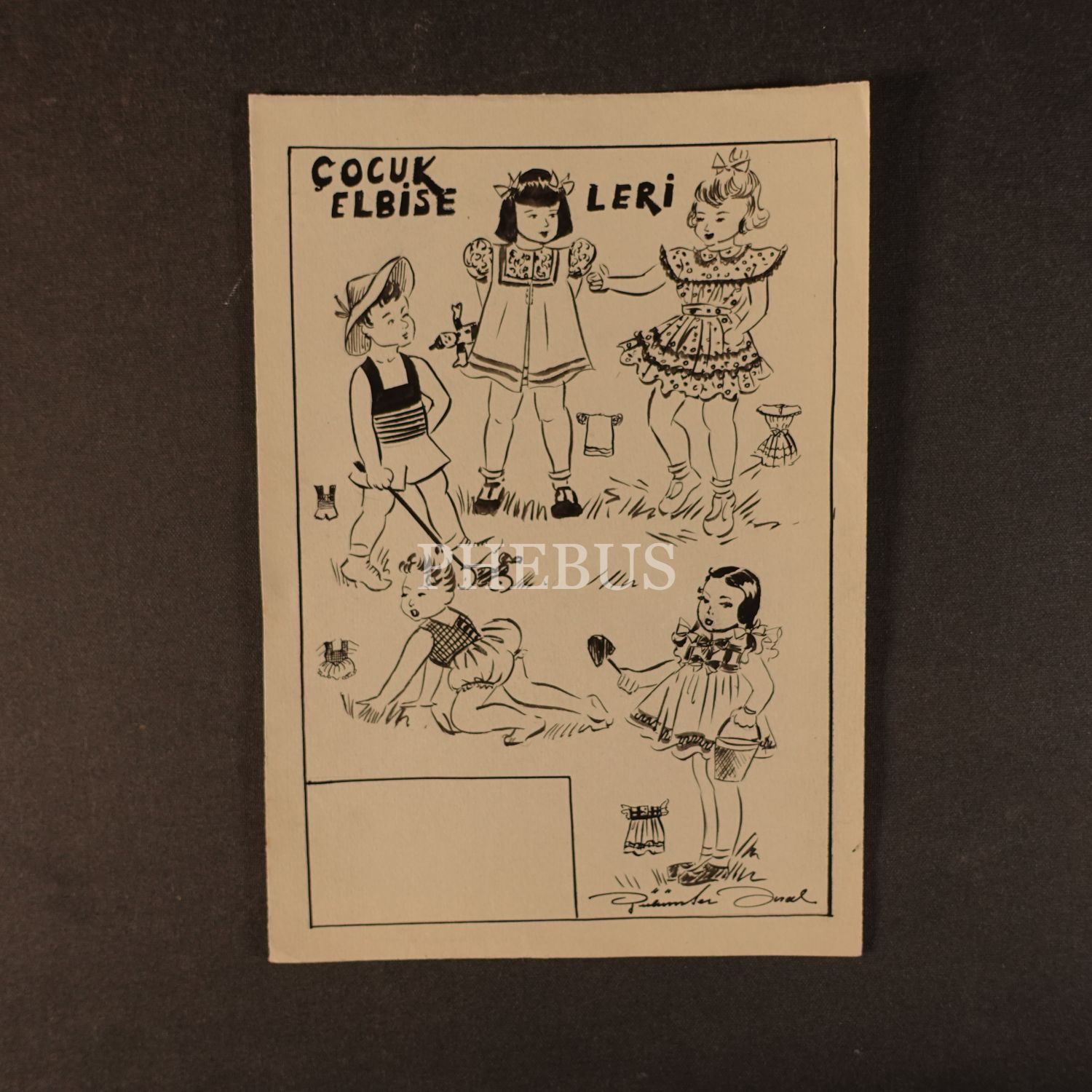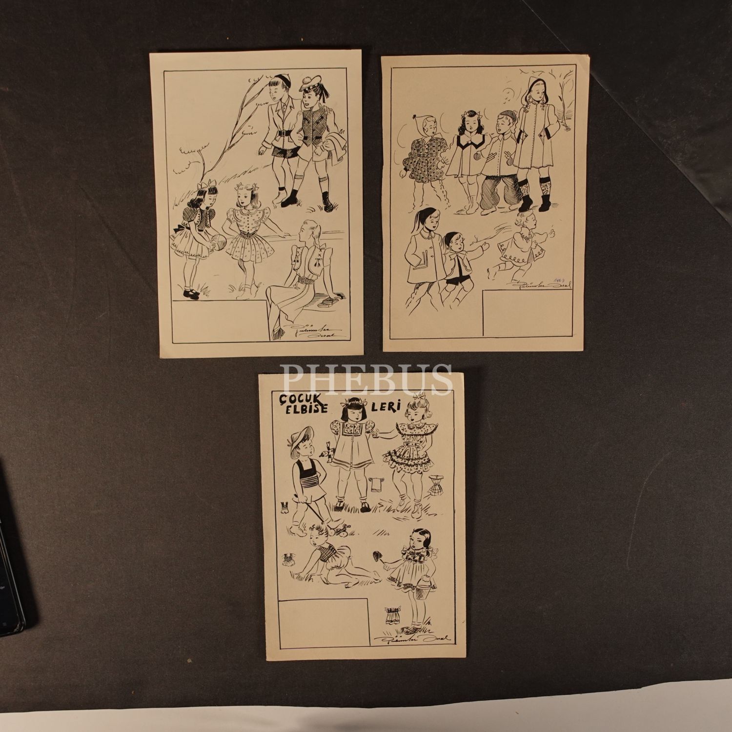 Gülümser Aral´ın EV-İŞ dergisi için çizdiği, ıslak imzalı üç adet çocuk elbiseleri tasarımı, 18x27 cm...