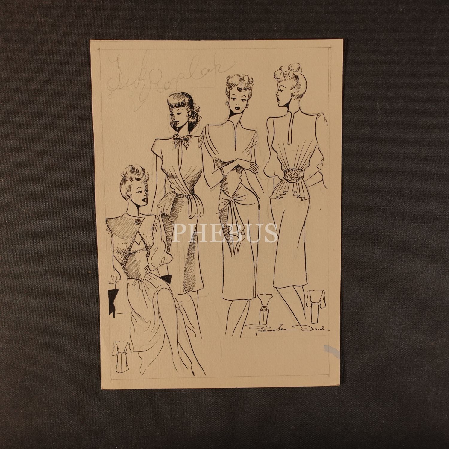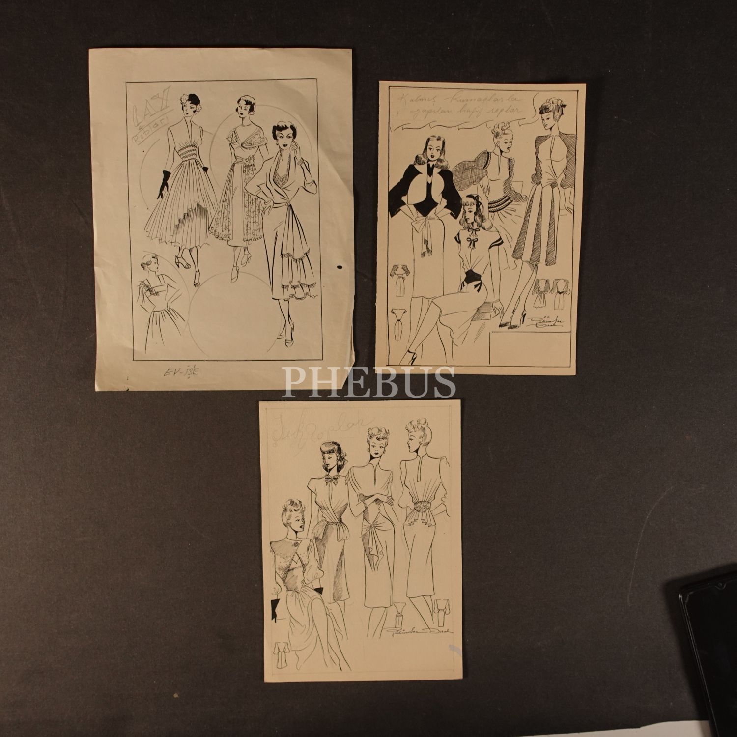 Gülümser Aral´ın EV-İŞ dergisi için çizdiği, ikisi ıslak imzalı üç adet rob tasarımı, ortalama 18x25 cm...
