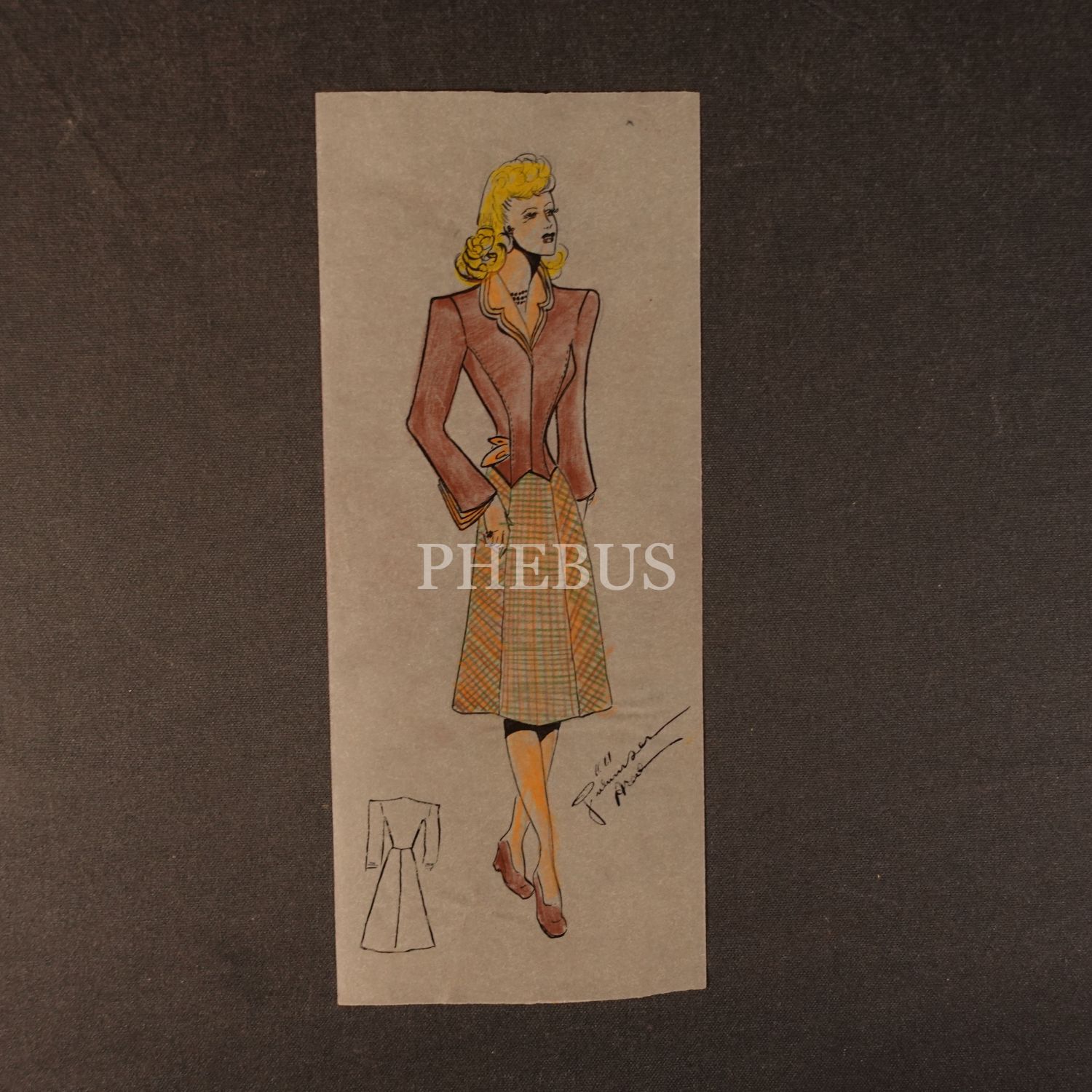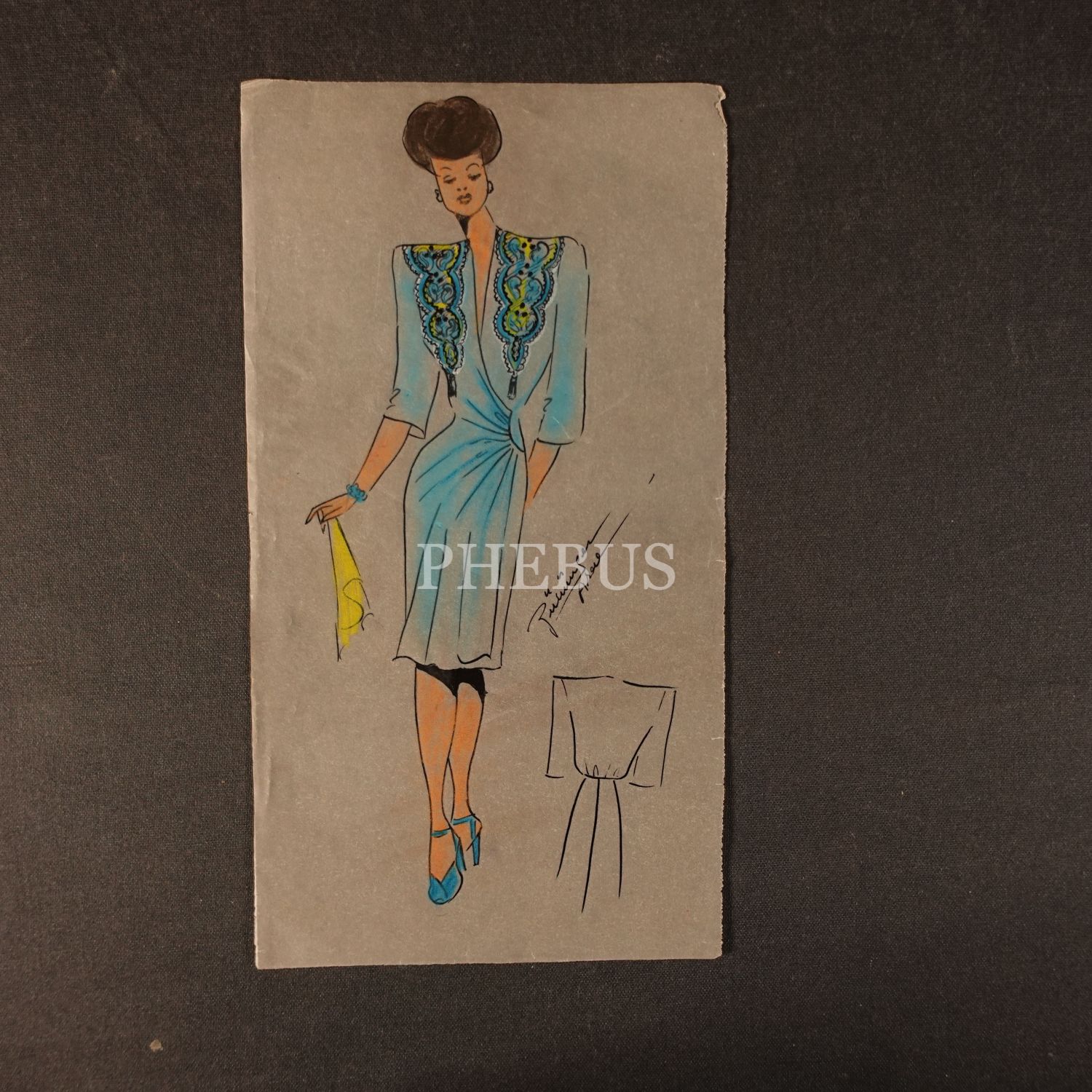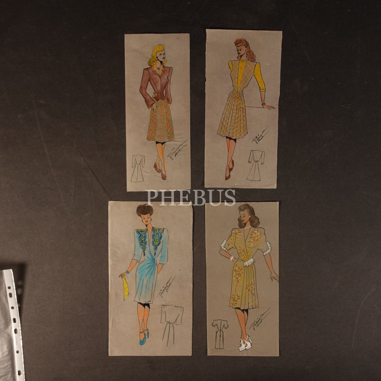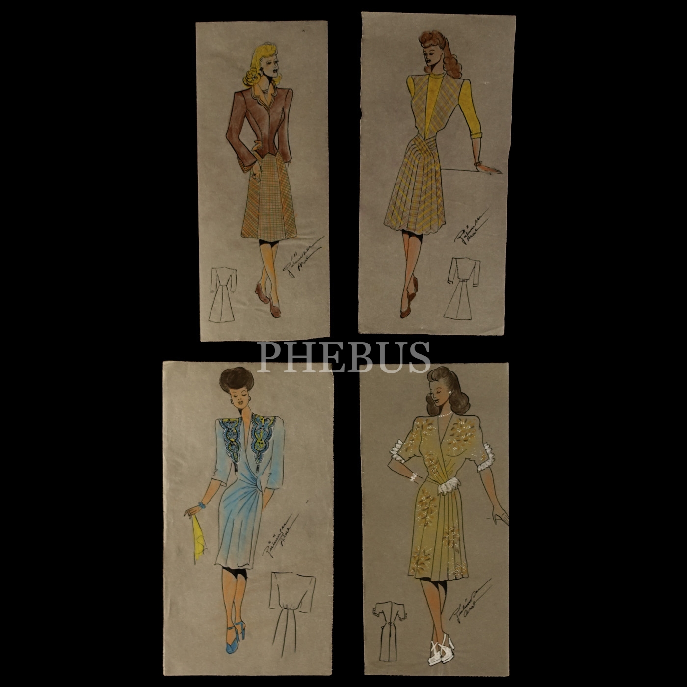 Gülümser Aral´ın EV-İŞ dergisi için çizdiği, ıslak imzalı dört adet kıyafet tasarımı, ortalama 14x28 cm...