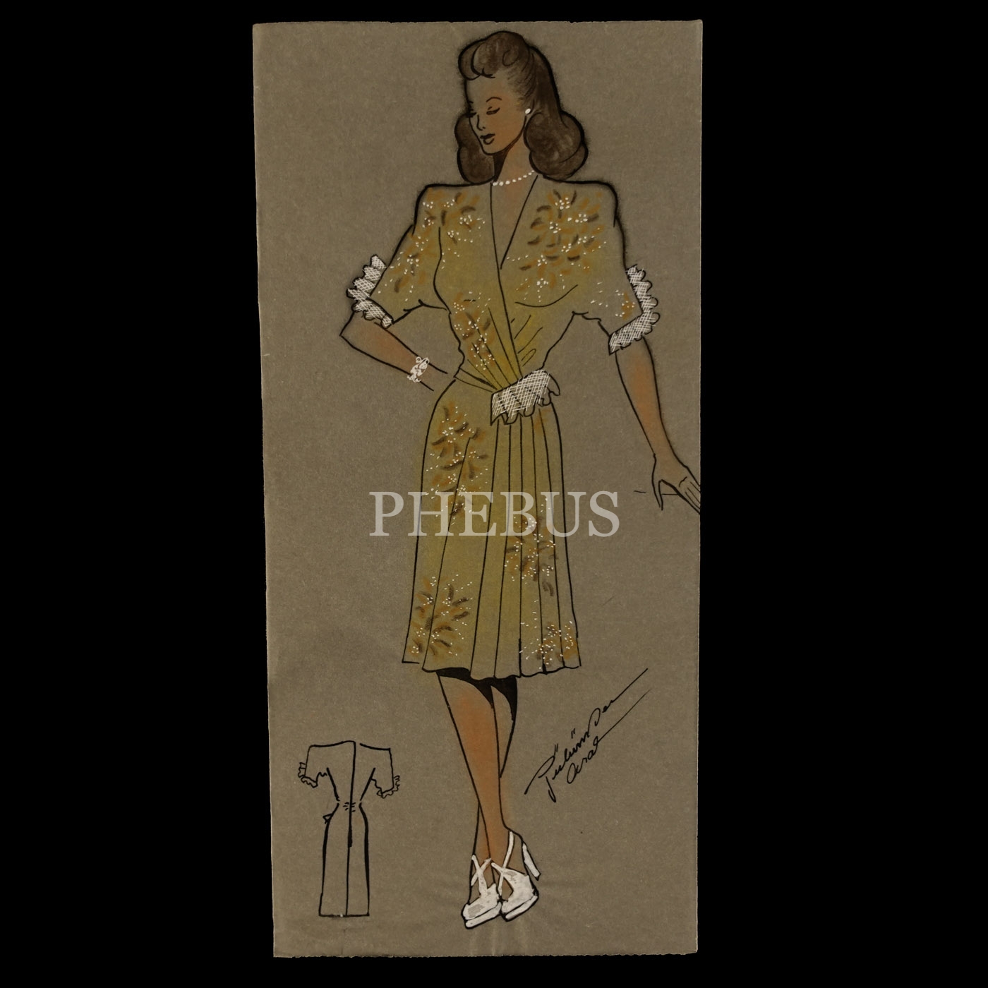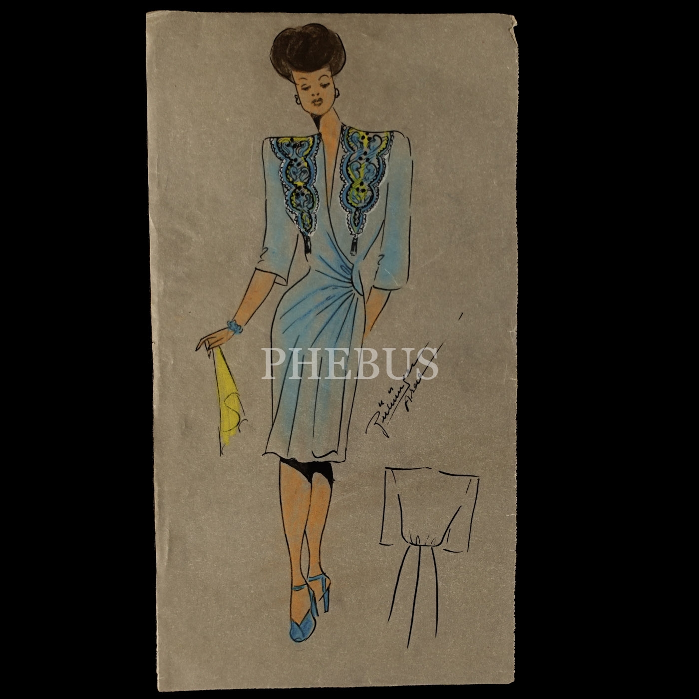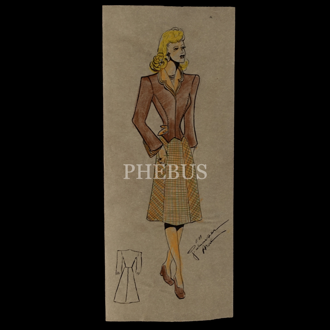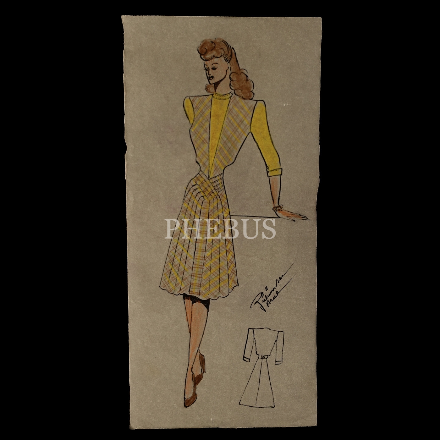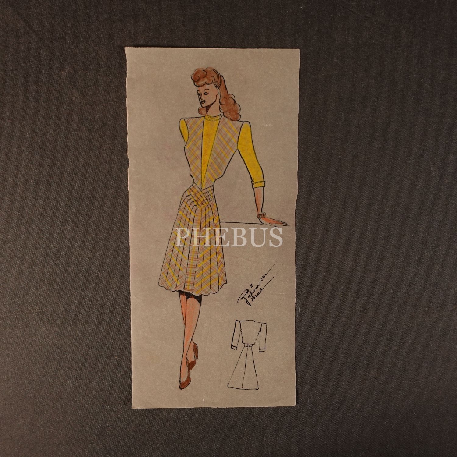 Gülümser Aral´ın EV-İŞ dergisi için çizdiği, ıslak imzalı dört adet kıyafet tasarımı, ortalama 14x28 cm...