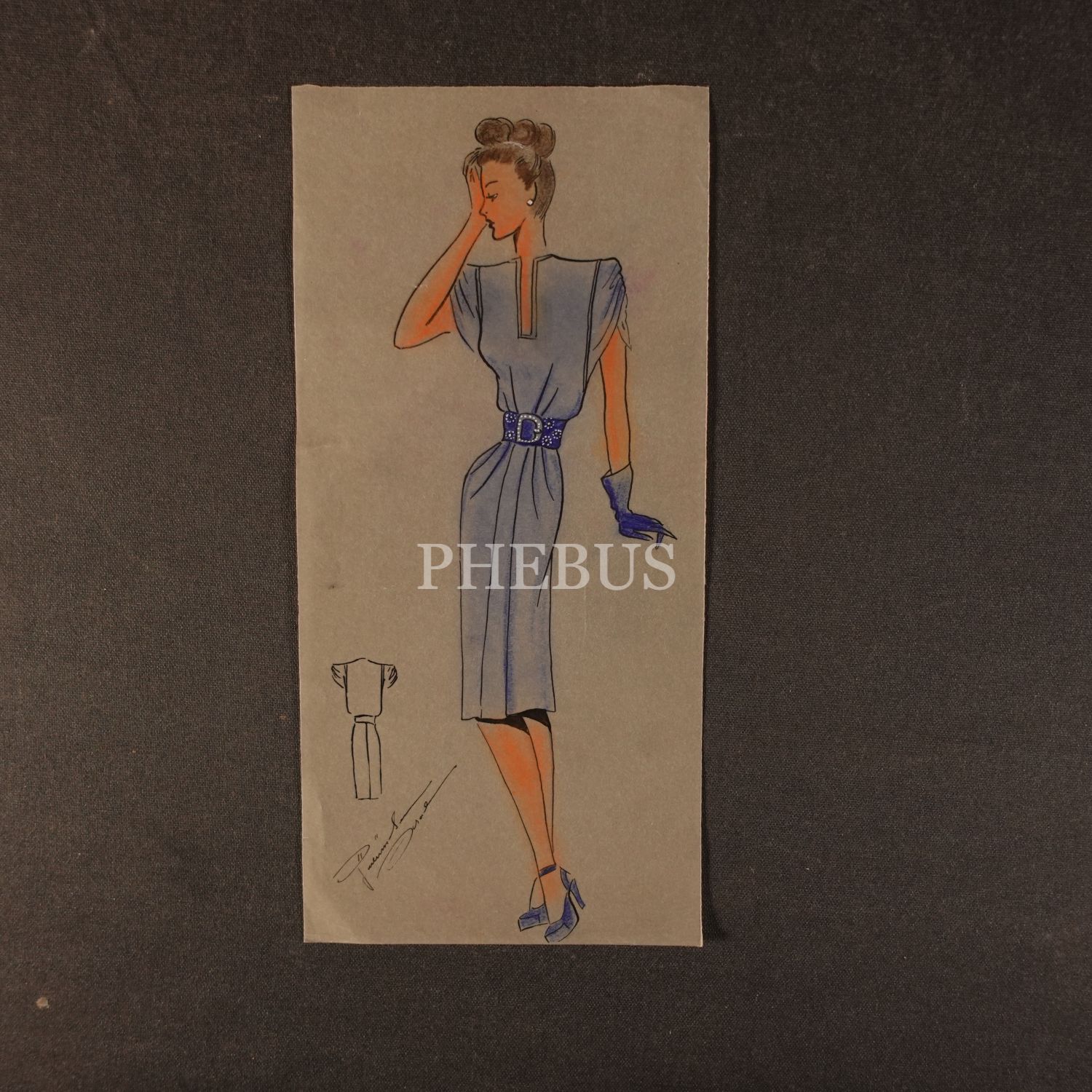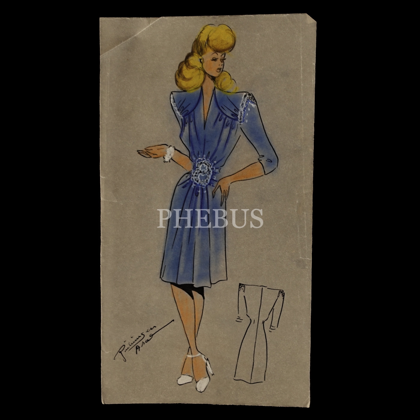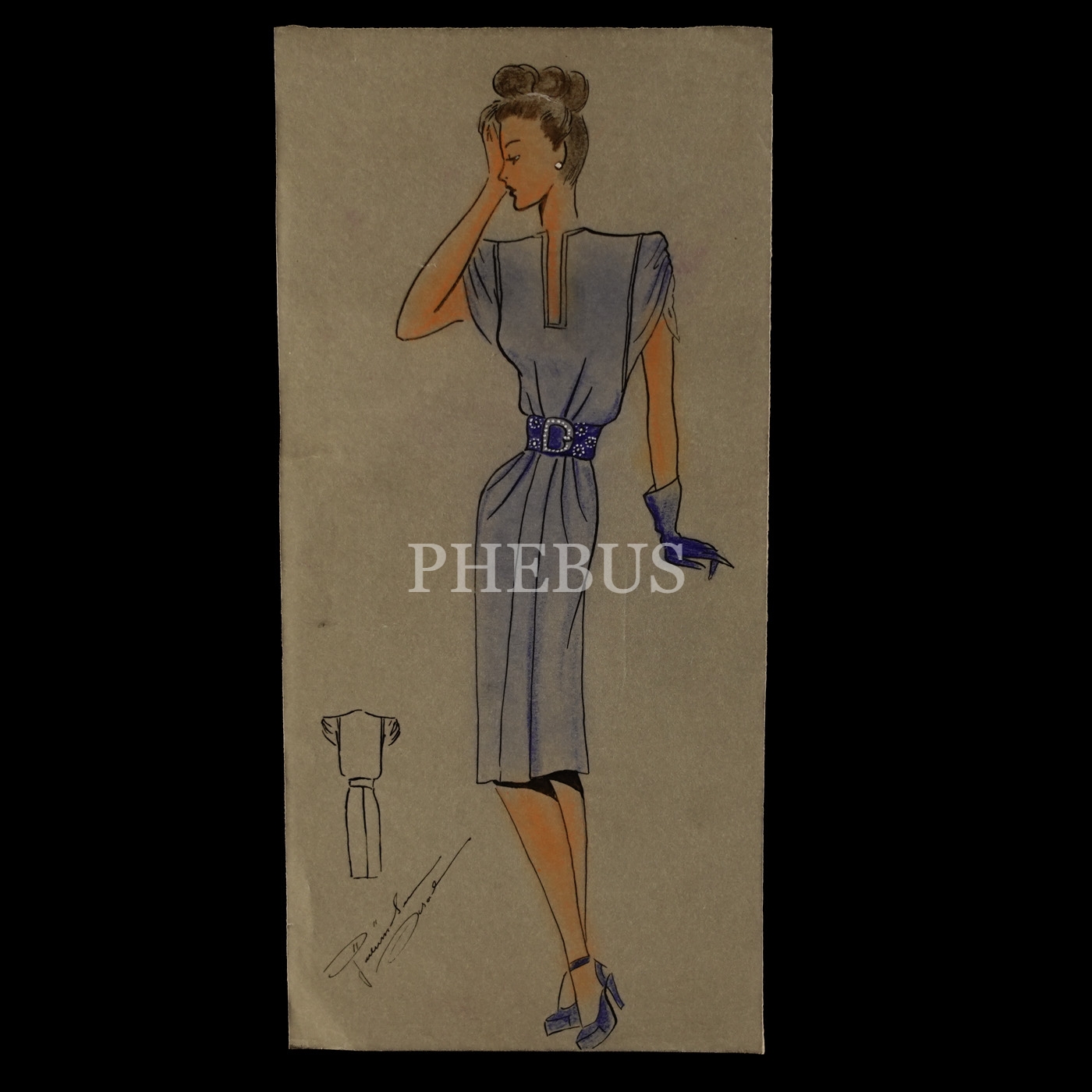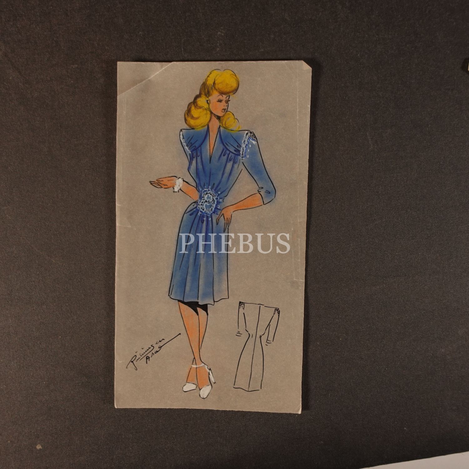 Gülümser Aral´ın EV-İŞ dergisi için çizdiği, ıslak imzalı dört adet kıyafet tasarımı, ortalama 14x28 cm...