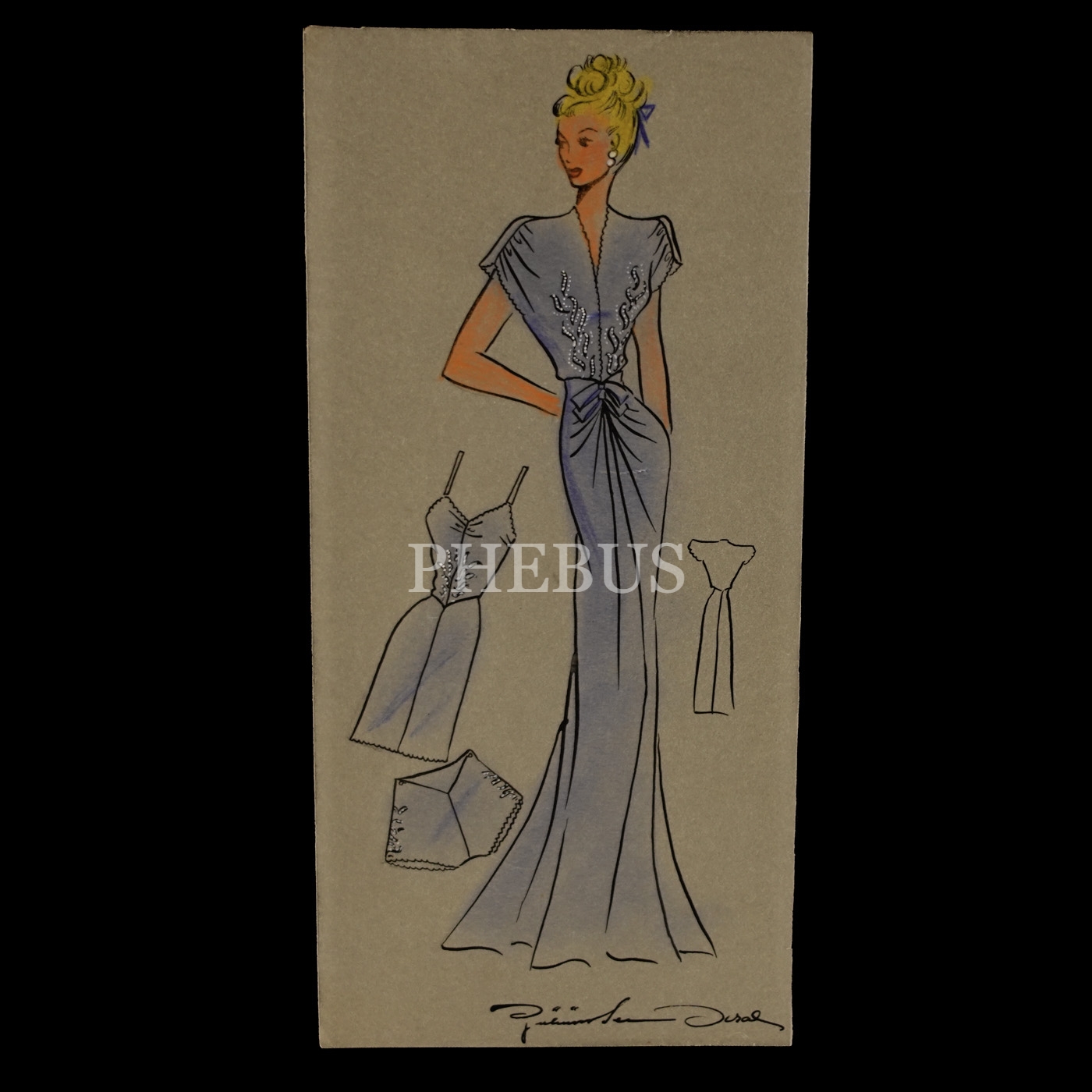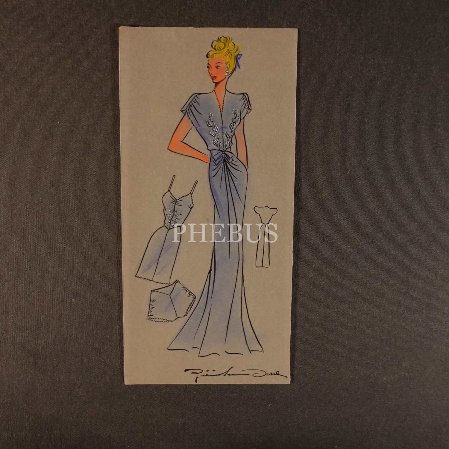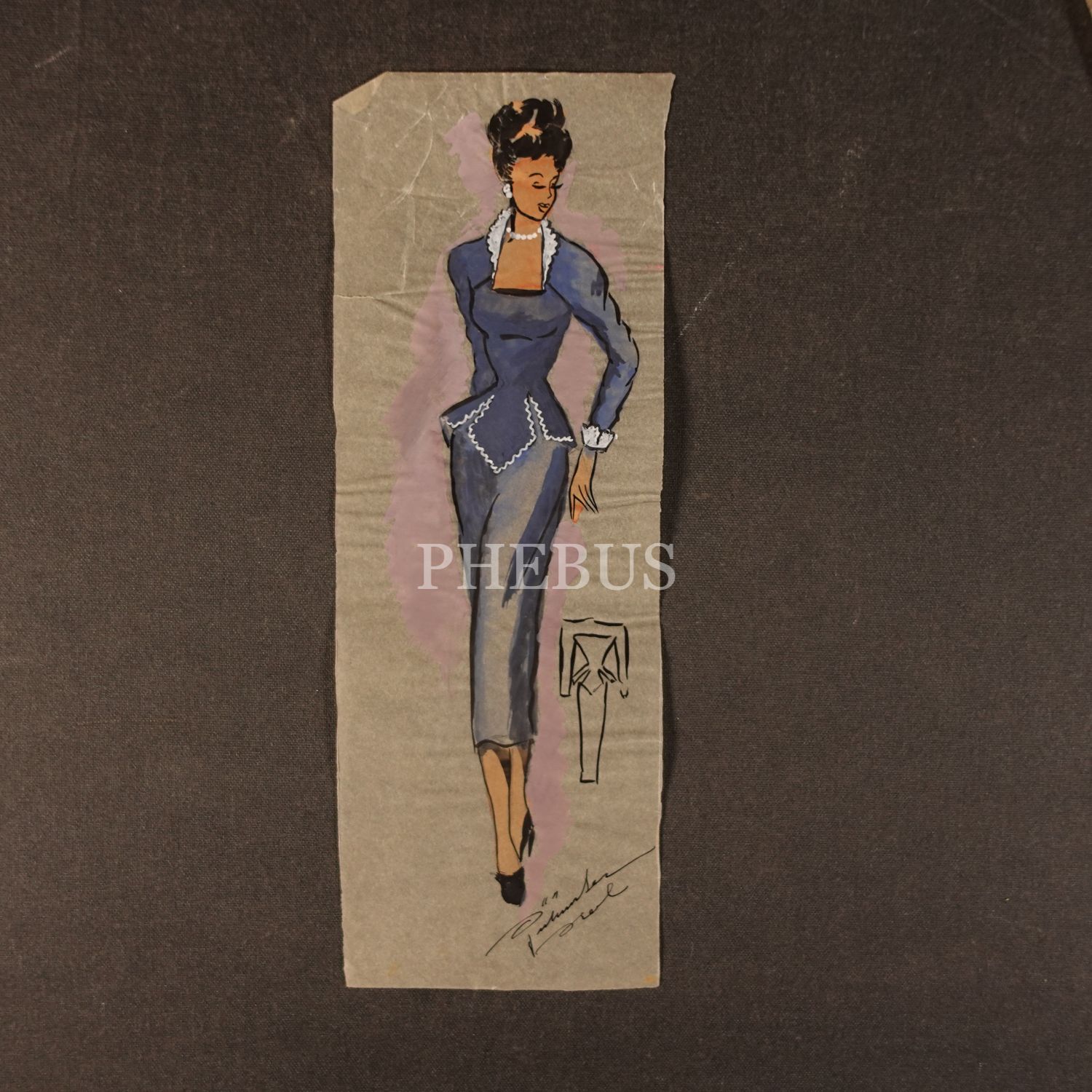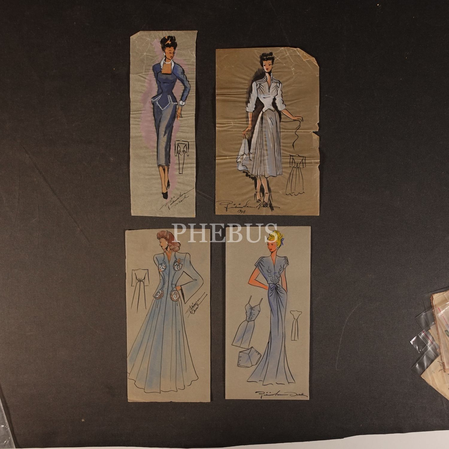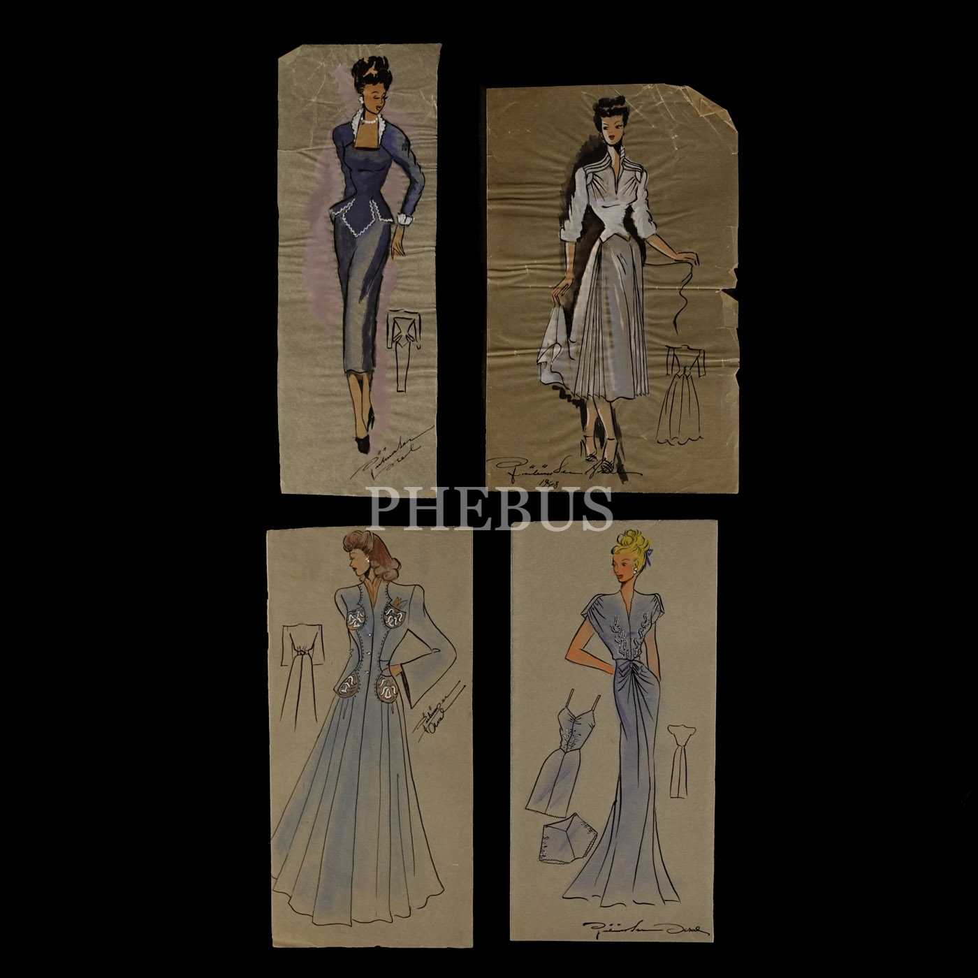 Gülümser Aral´ın EV-İŞ dergisi için çizdiği, ıslak imzalı dört adet kıyafet tasarımı, ortalama 14x28 cm...