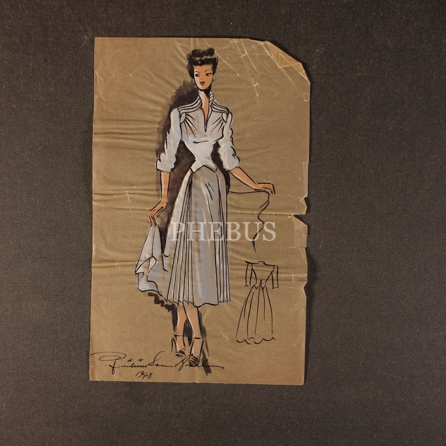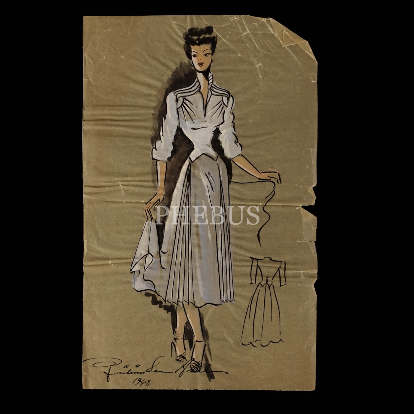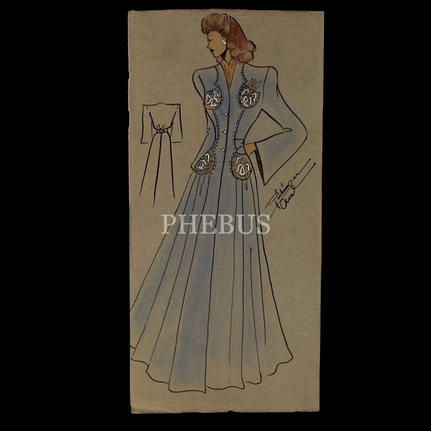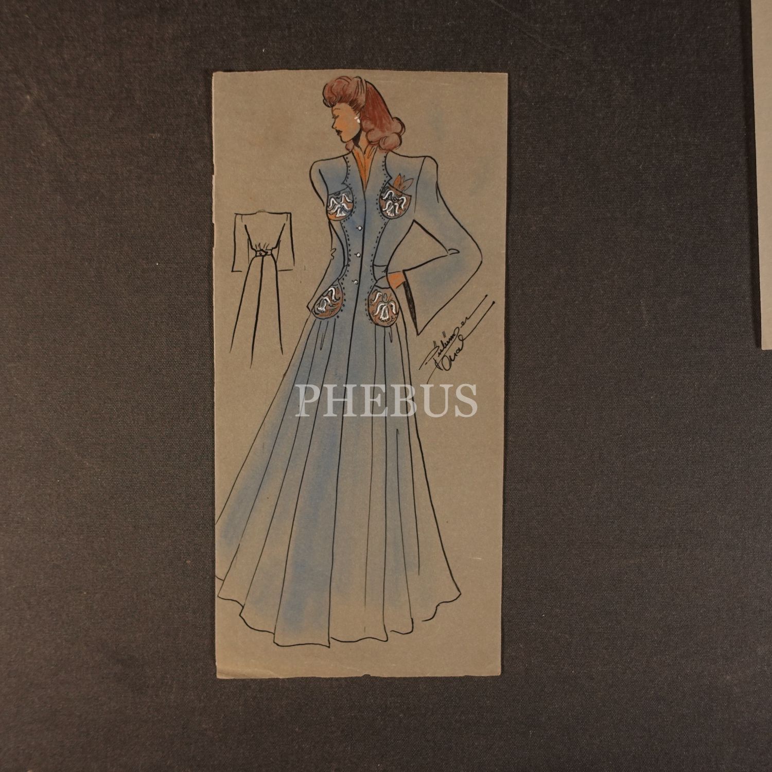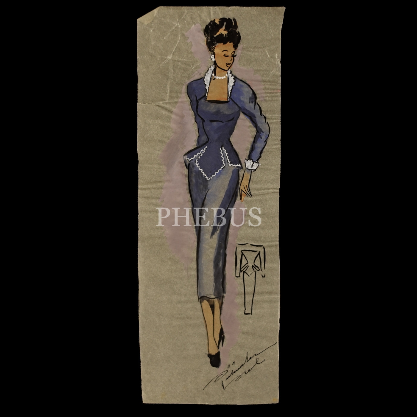 Gülümser Aral´ın EV-İŞ dergisi için çizdiği, ıslak imzalı dört adet kıyafet tasarımı, ortalama 14x28 cm...