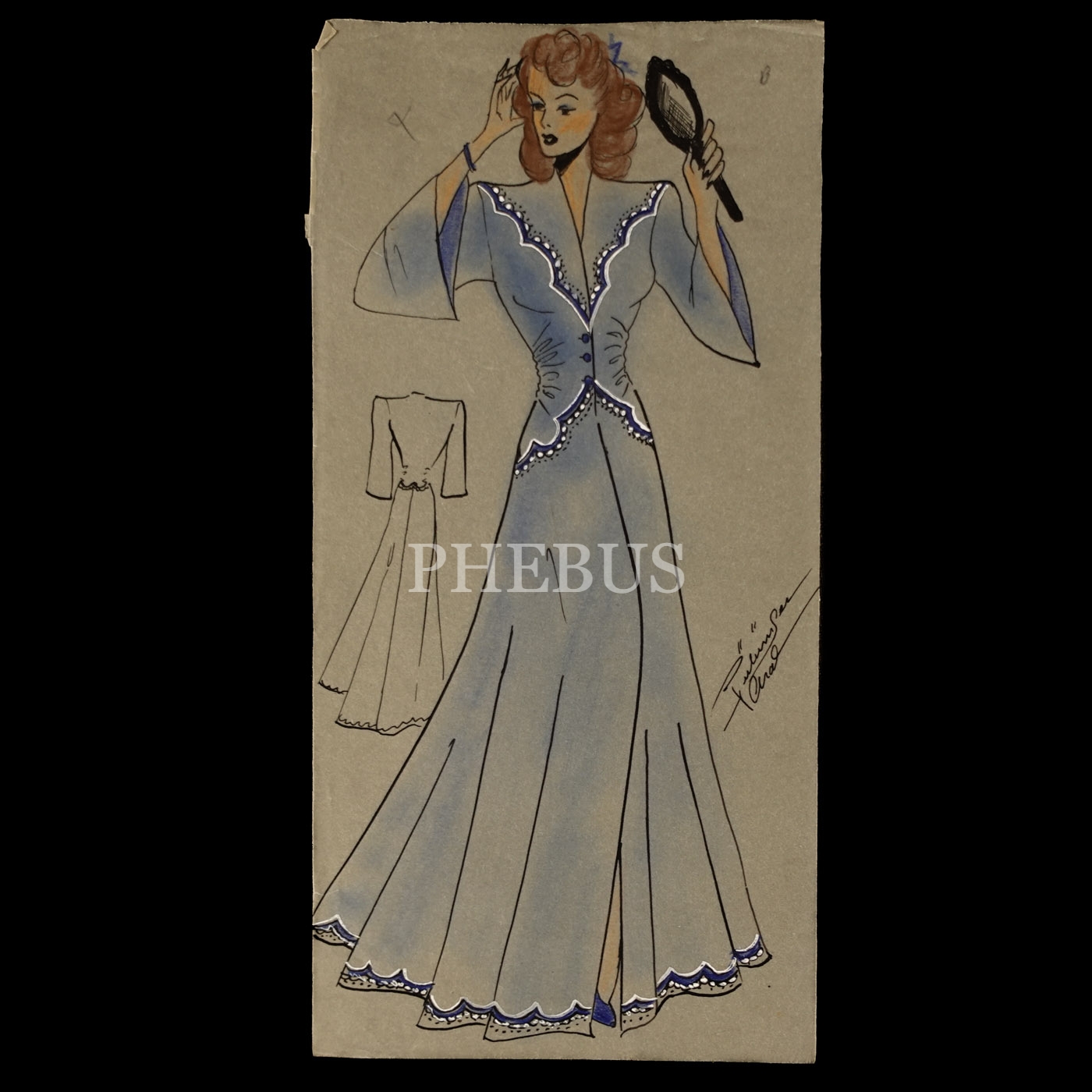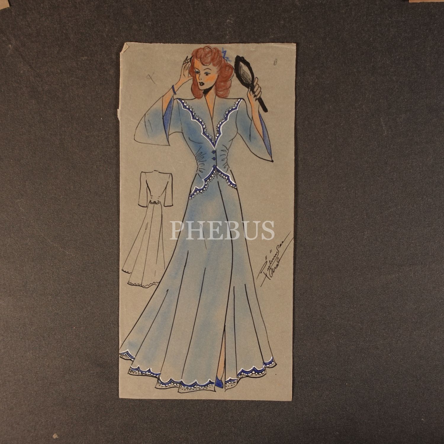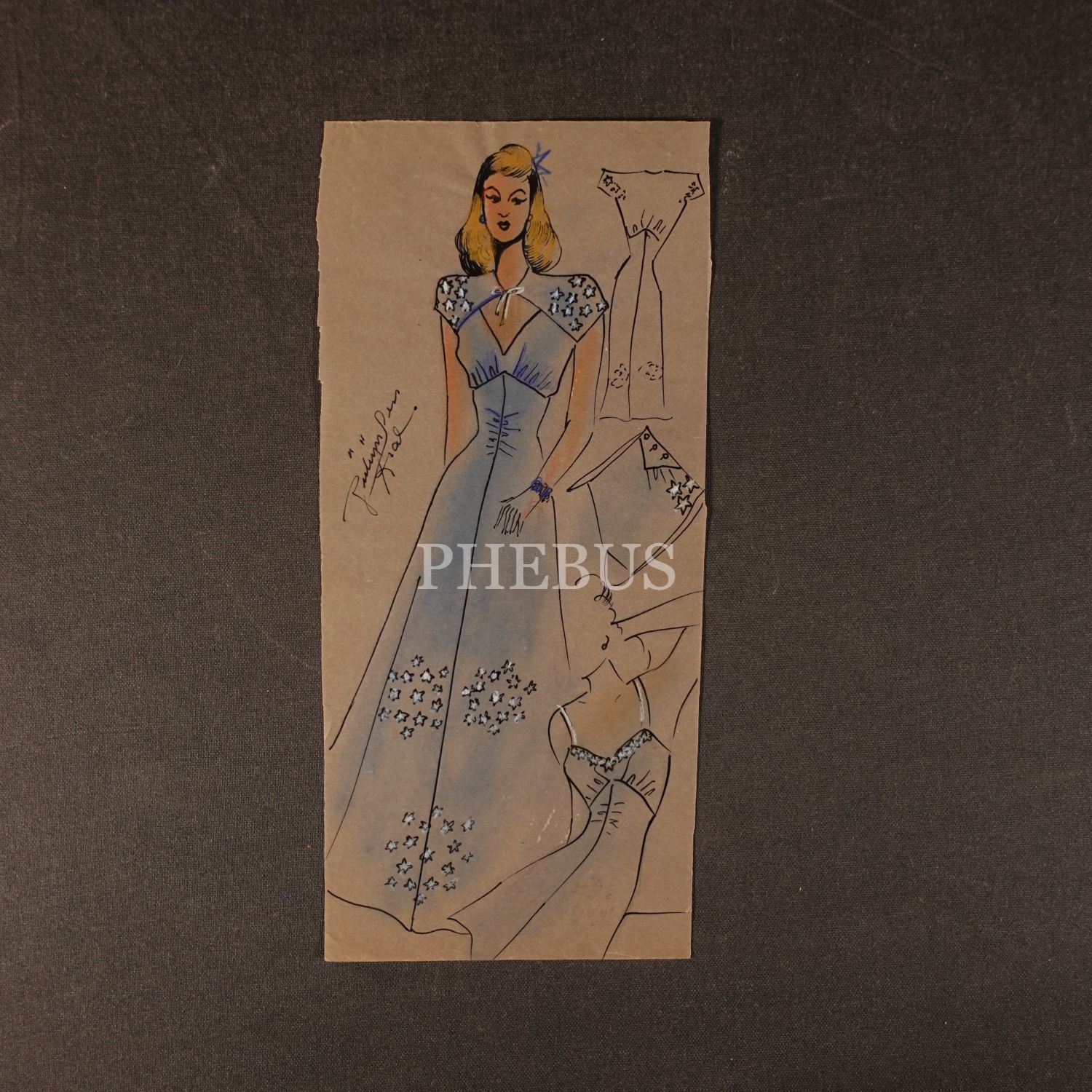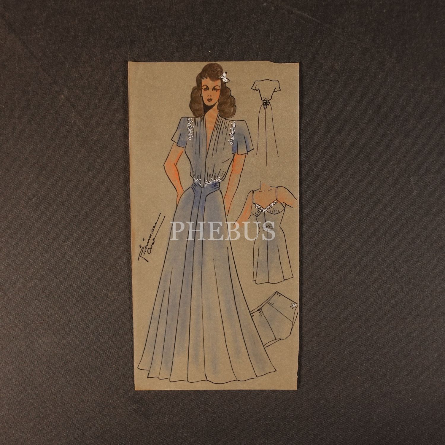 Gülümser Aral´ın EV-İŞ dergisi için çizdiği, ıslak imzalı dört adet kıyafet tasarımı, ortalama 14x28 cm...