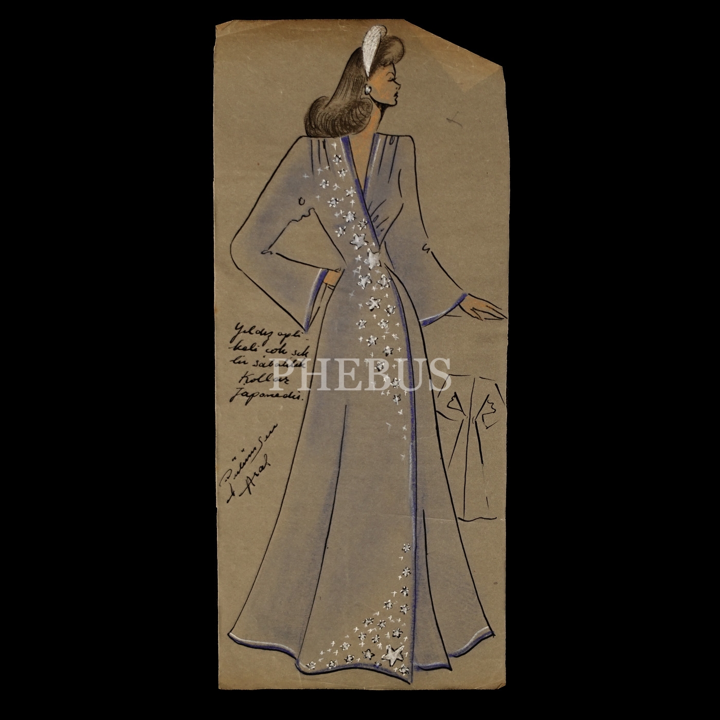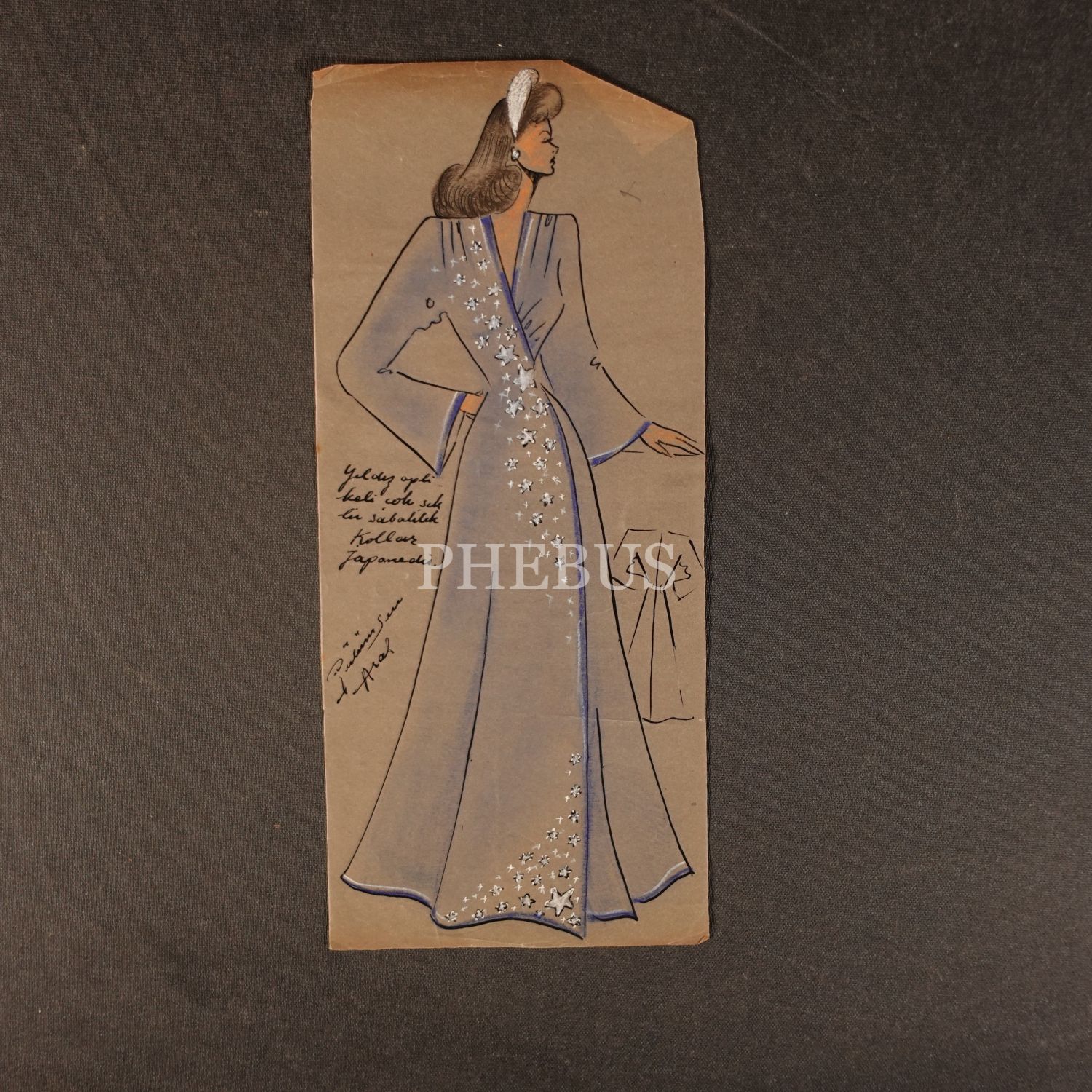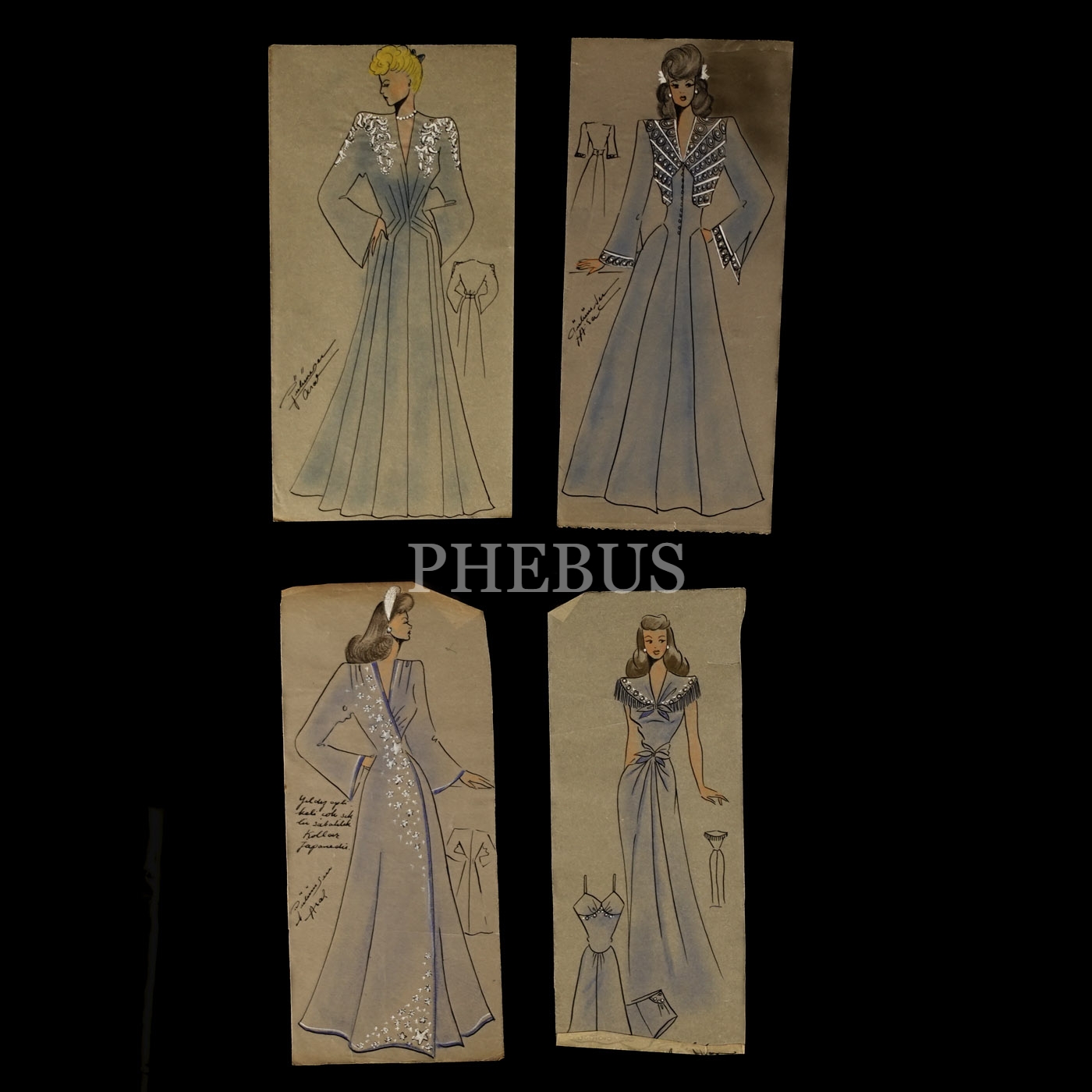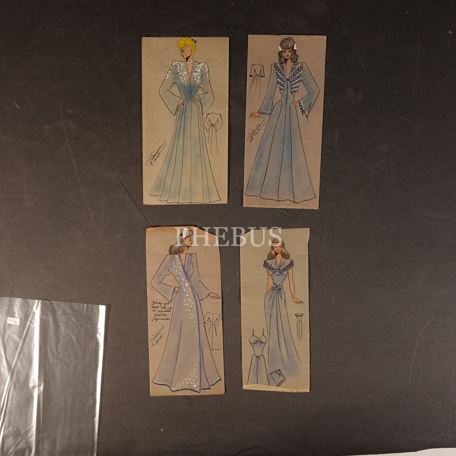 Gülümser Aral´ın EV-İŞ dergisi için çizdiği, ıslak imzalı dört adet kıyafet tasarımı, ortalama 14x28 cm...