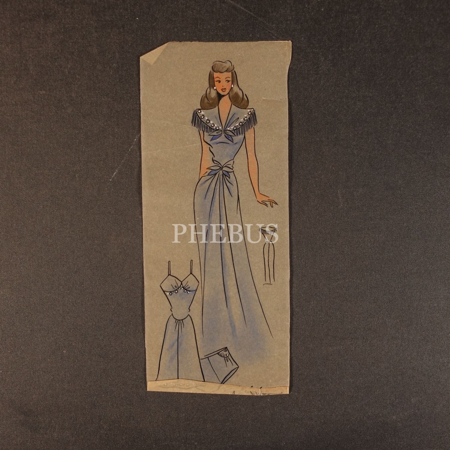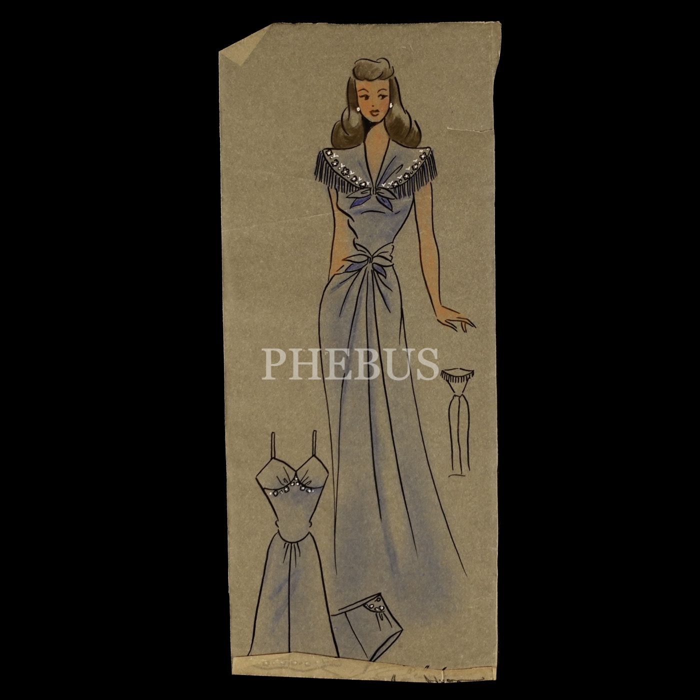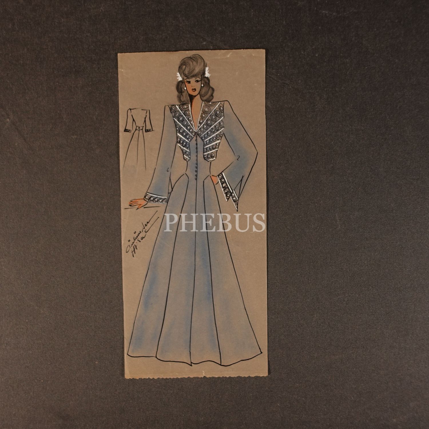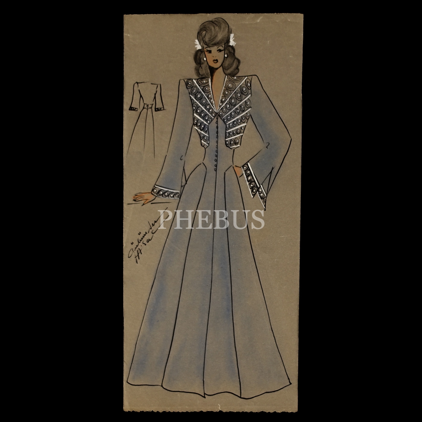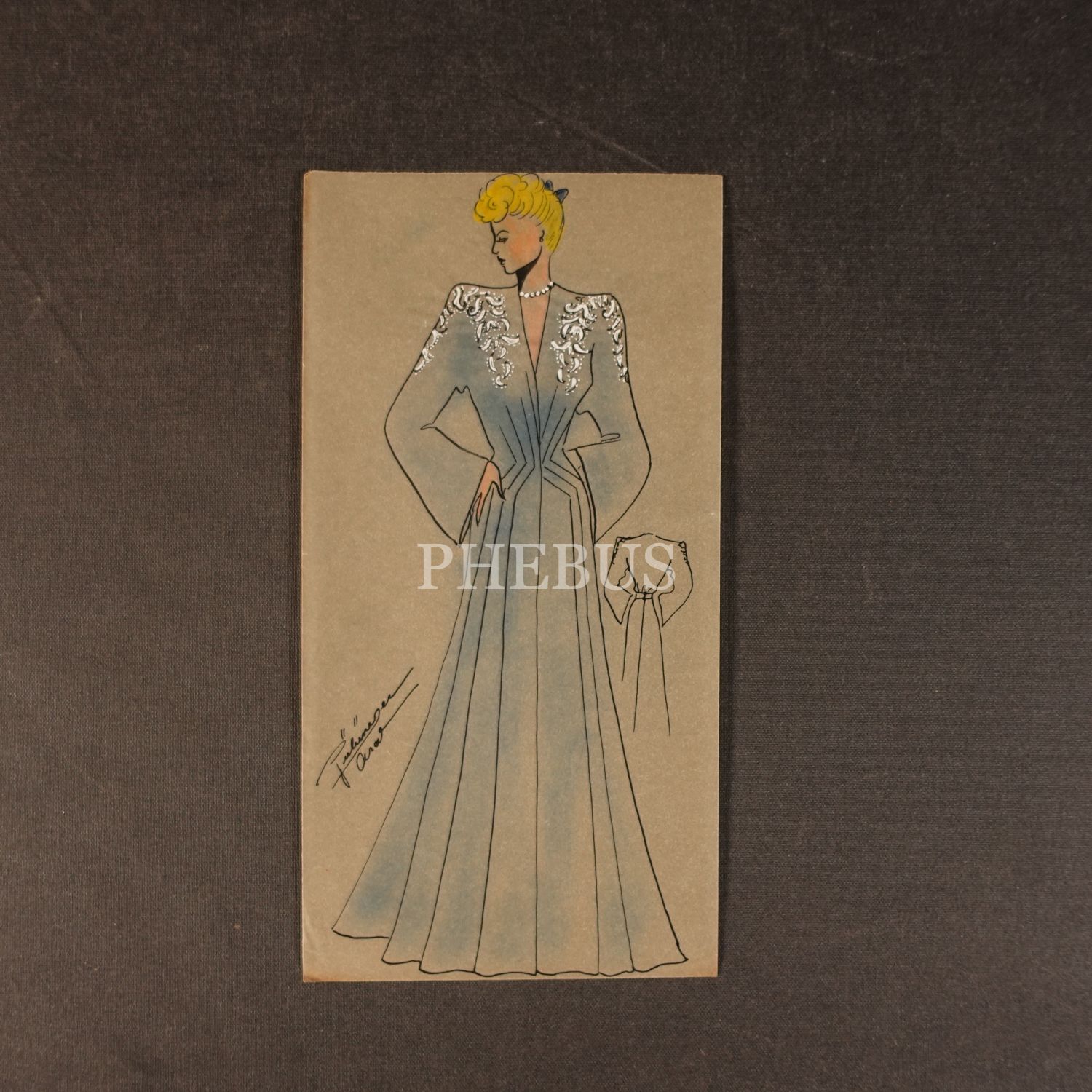 Gülümser Aral´ın EV-İŞ dergisi için çizdiği, ıslak imzalı dört adet kıyafet tasarımı, ortalama 14x28 cm...