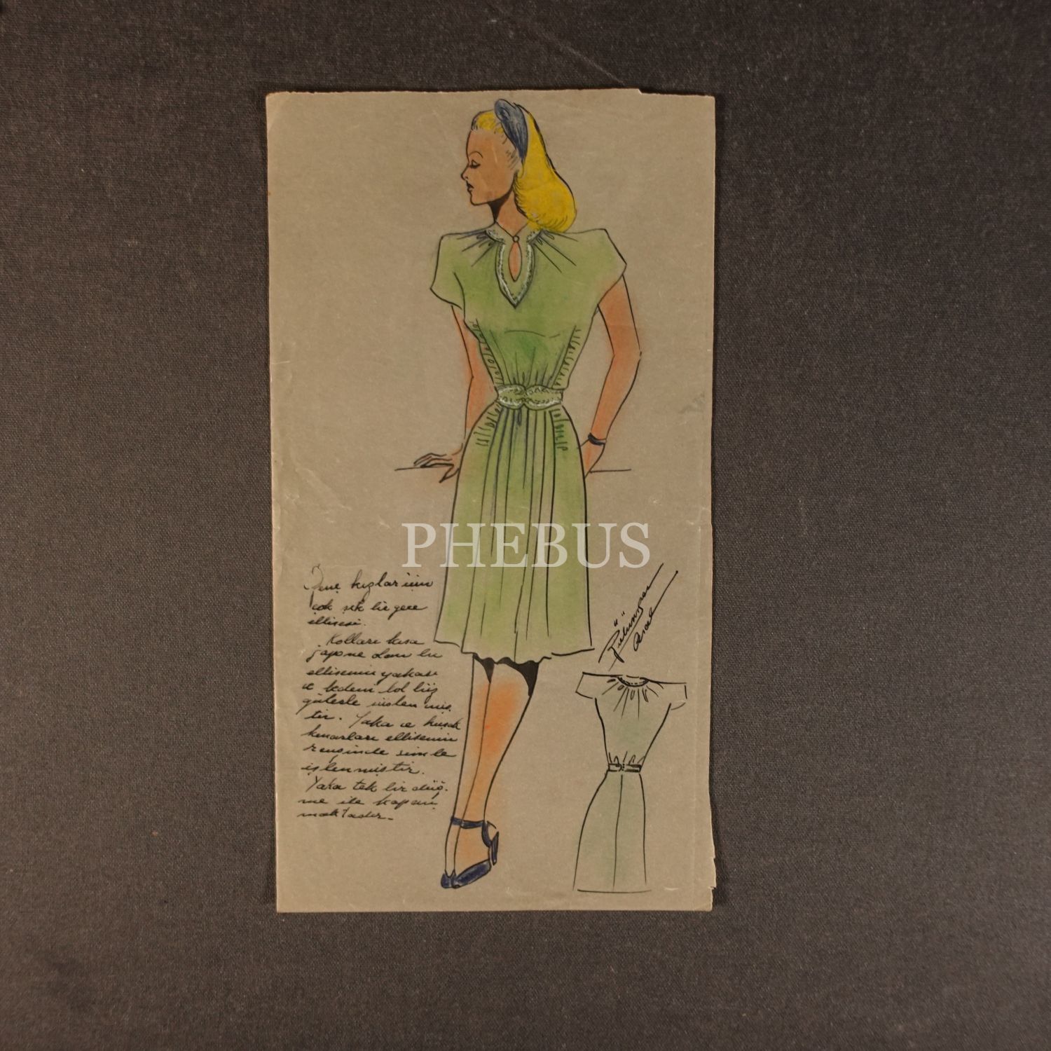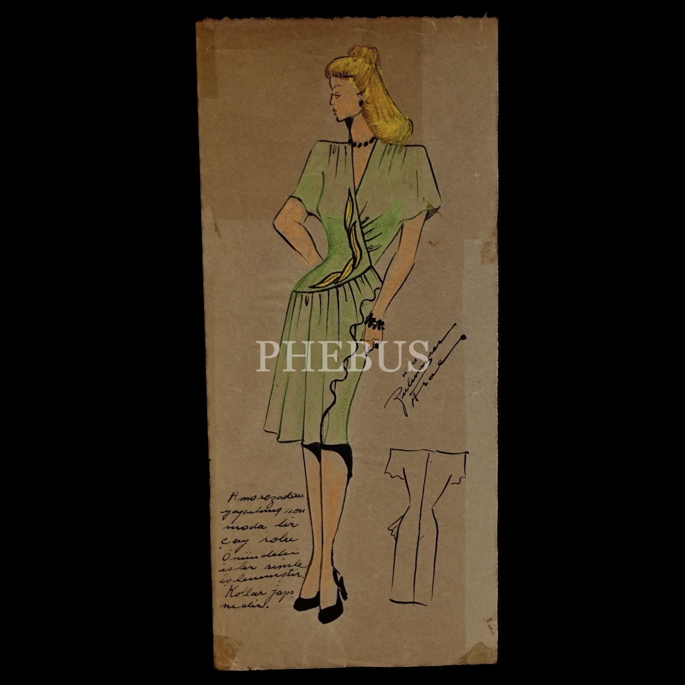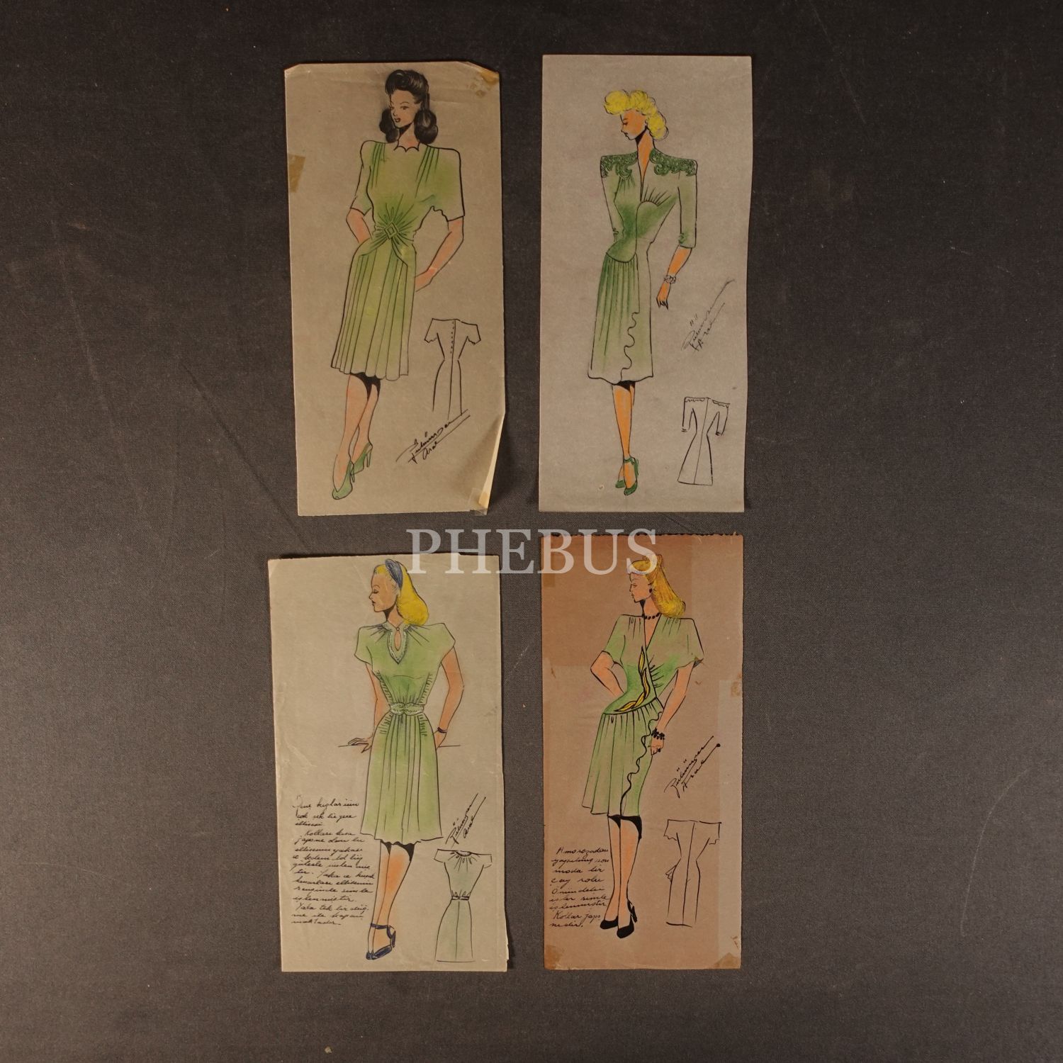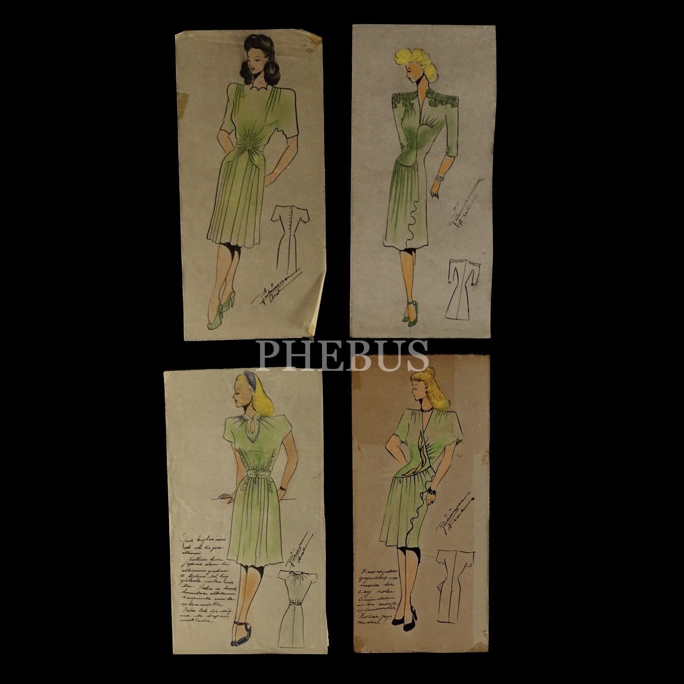 Gülümser Aral´ın EV-İŞ dergisi için çizdiği, ıslak imzalı dört adet kıyafet tasarımı, ortalama 14x28 cm...