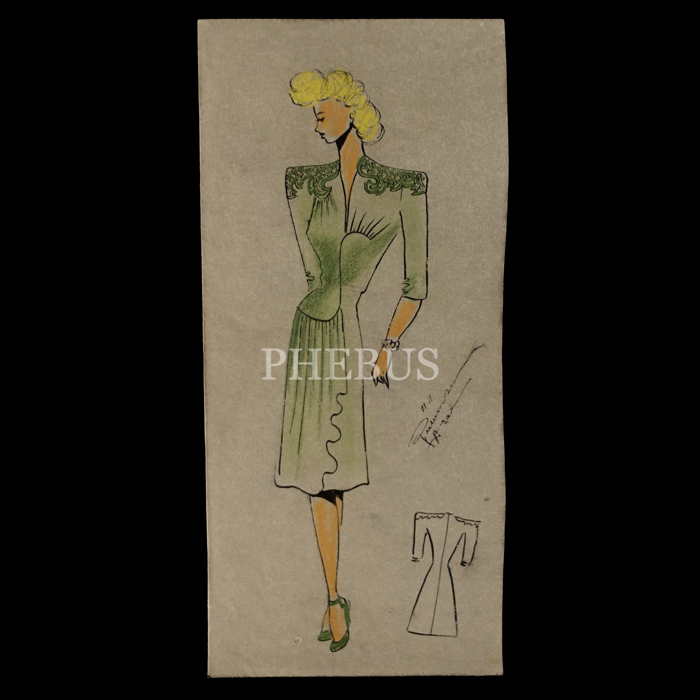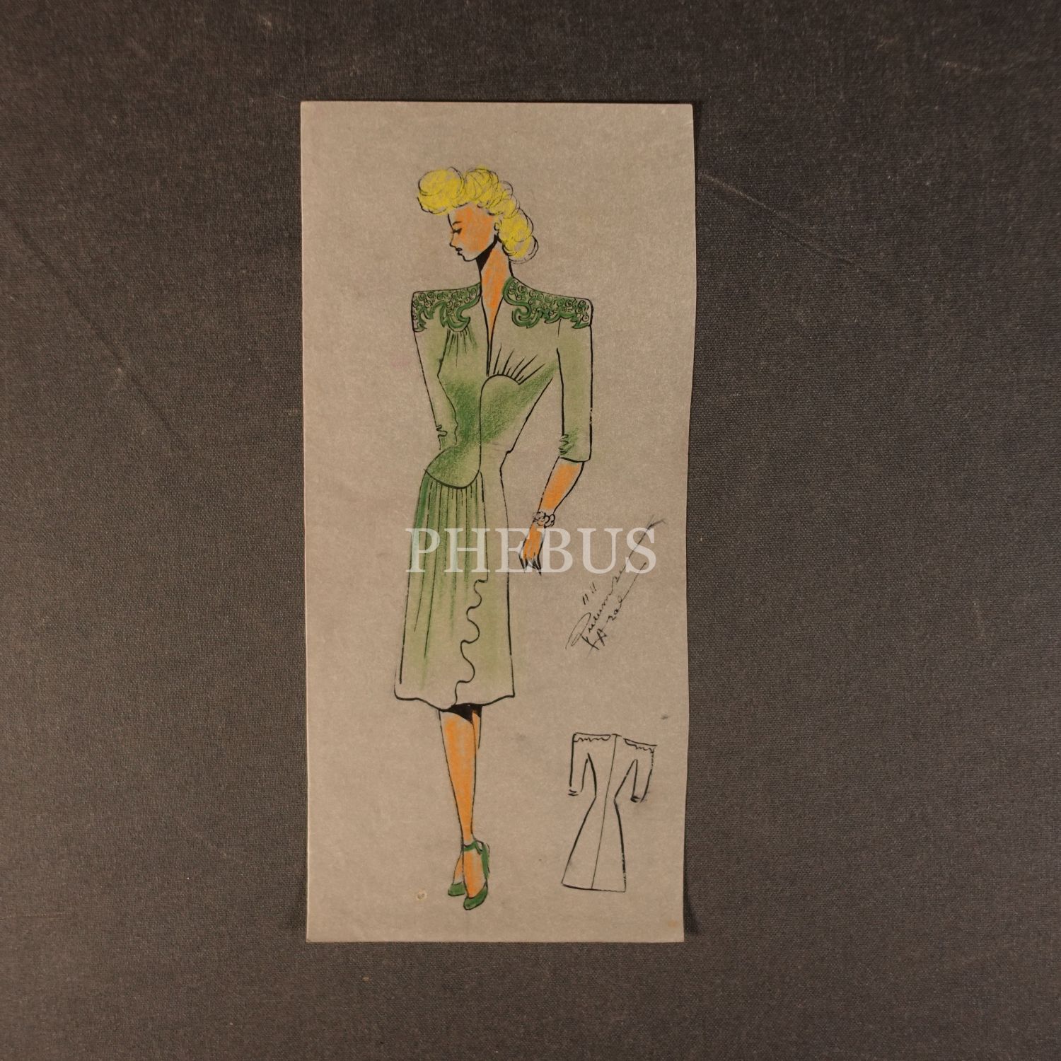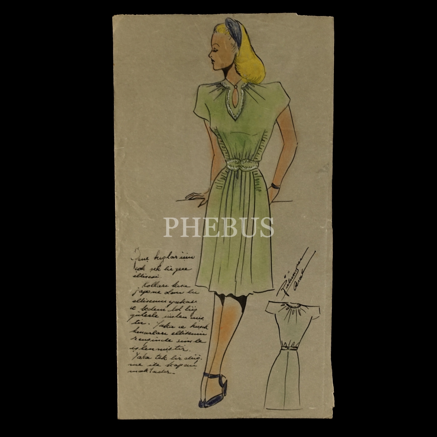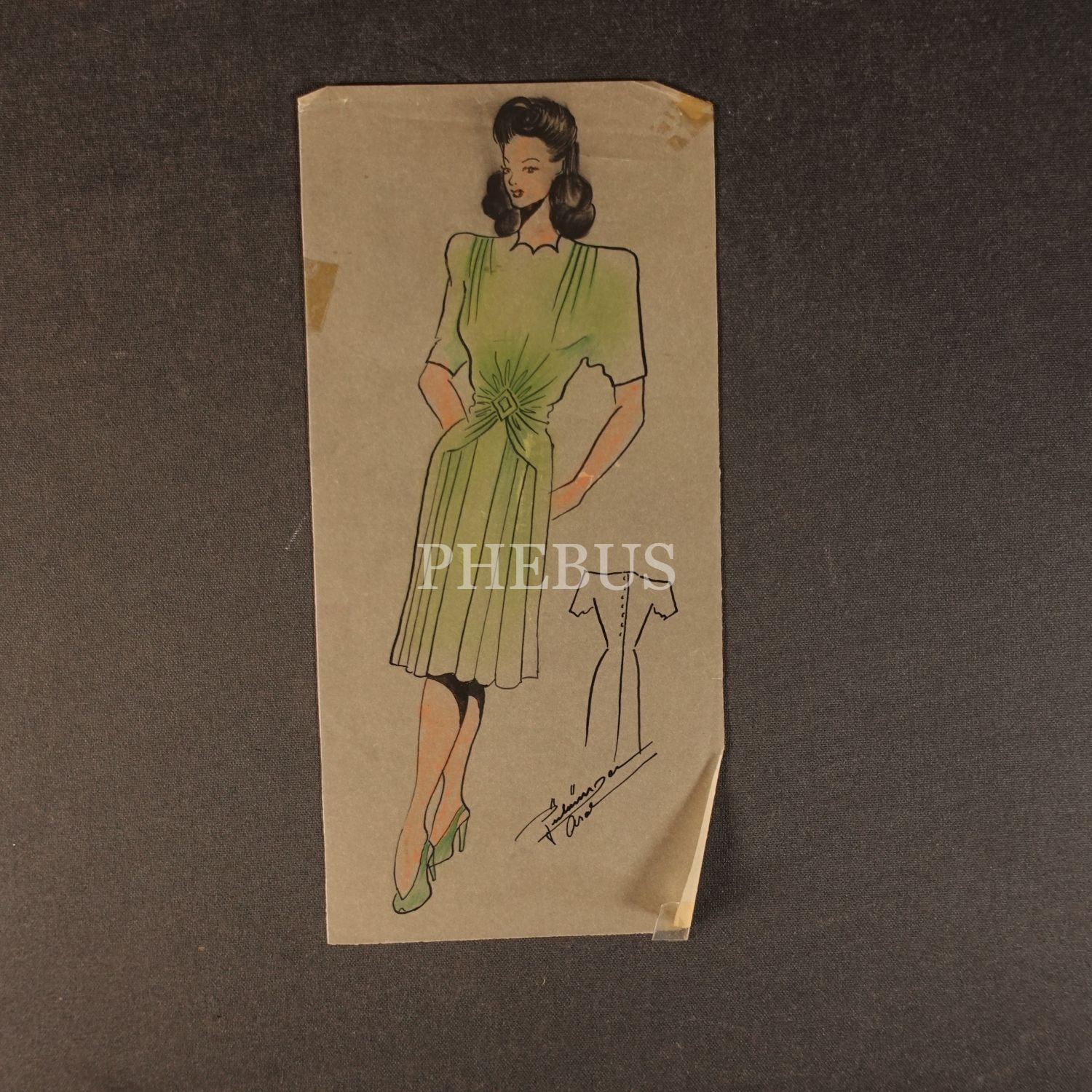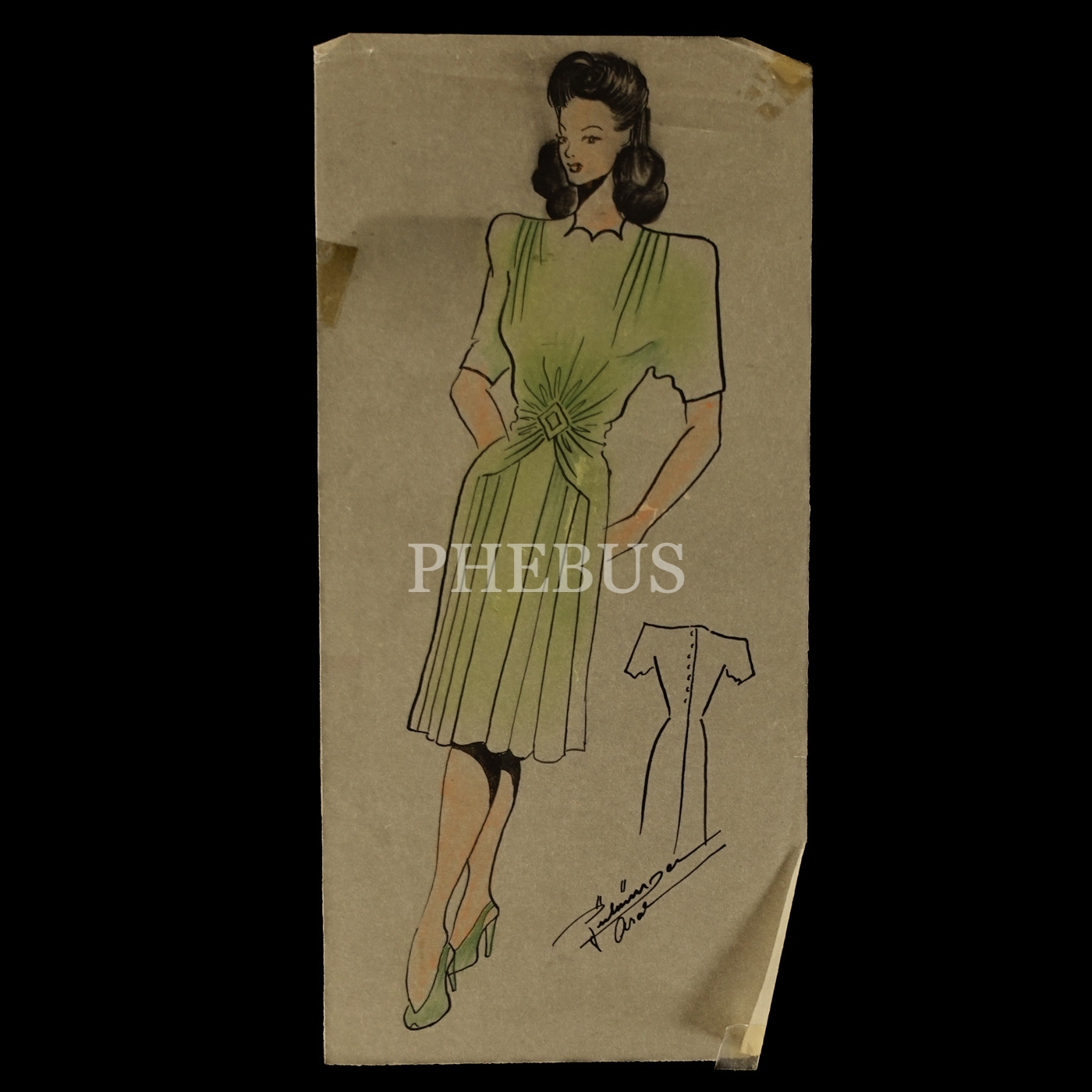 Gülümser Aral´ın EV-İŞ dergisi için çizdiği, ıslak imzalı dört adet kıyafet tasarımı, ortalama 14x28 cm...