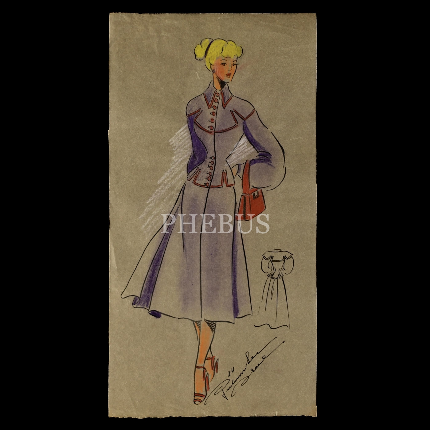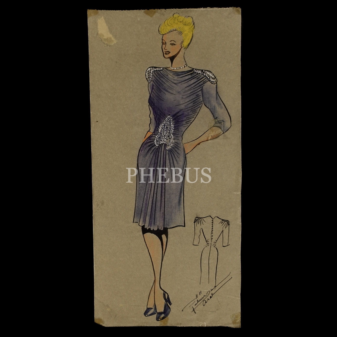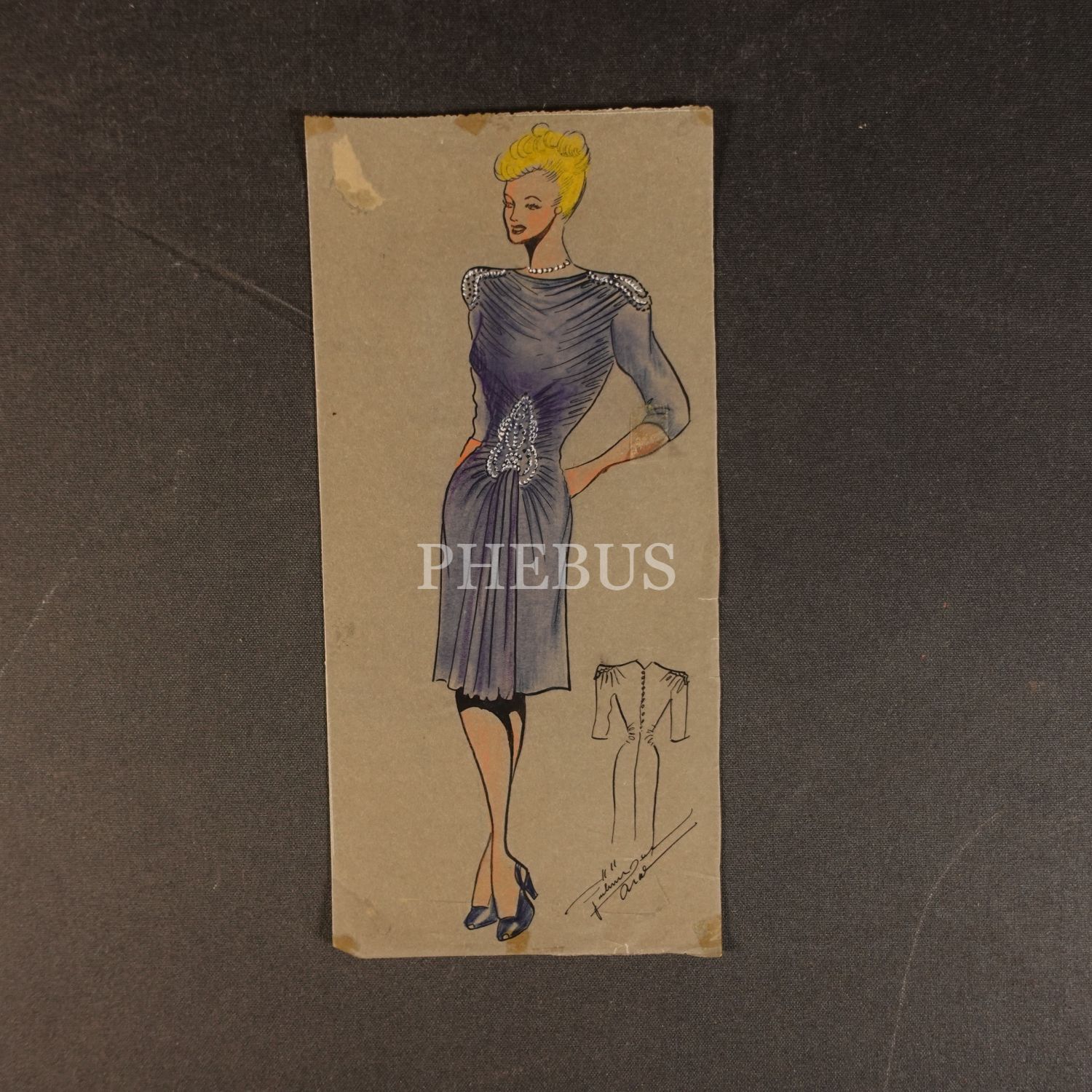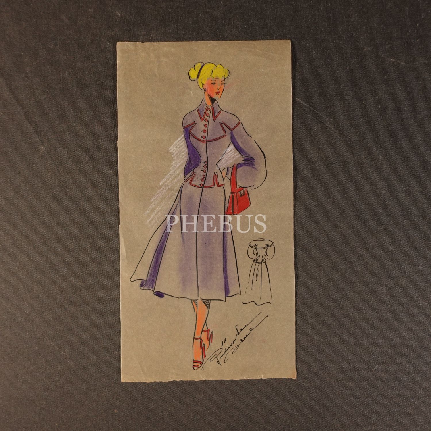 Gülümser Aral´ın EV-İŞ dergisi için çizdiği, ıslak imzalı dört adet kıyafet tasarımı, ortalama 14x28 cm...