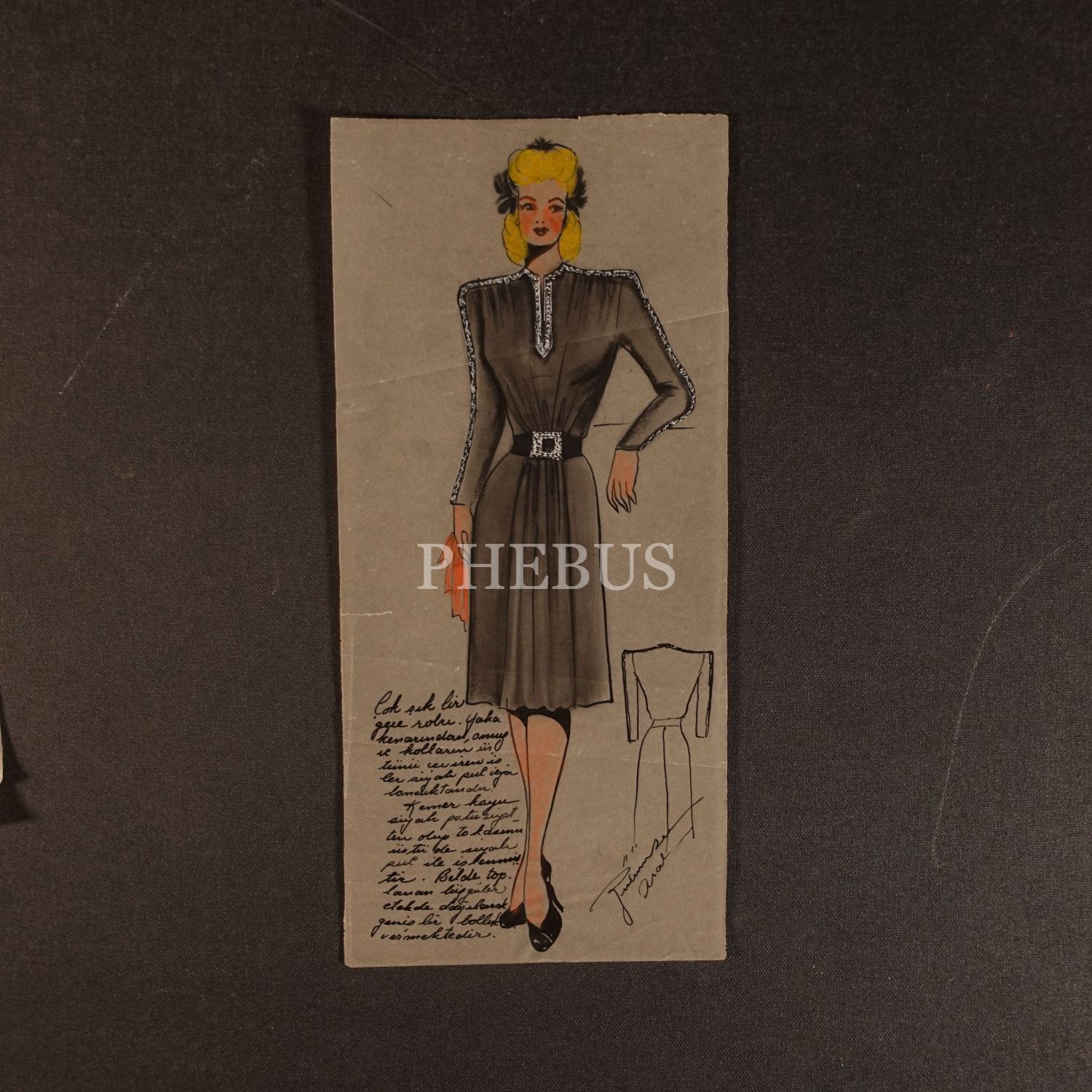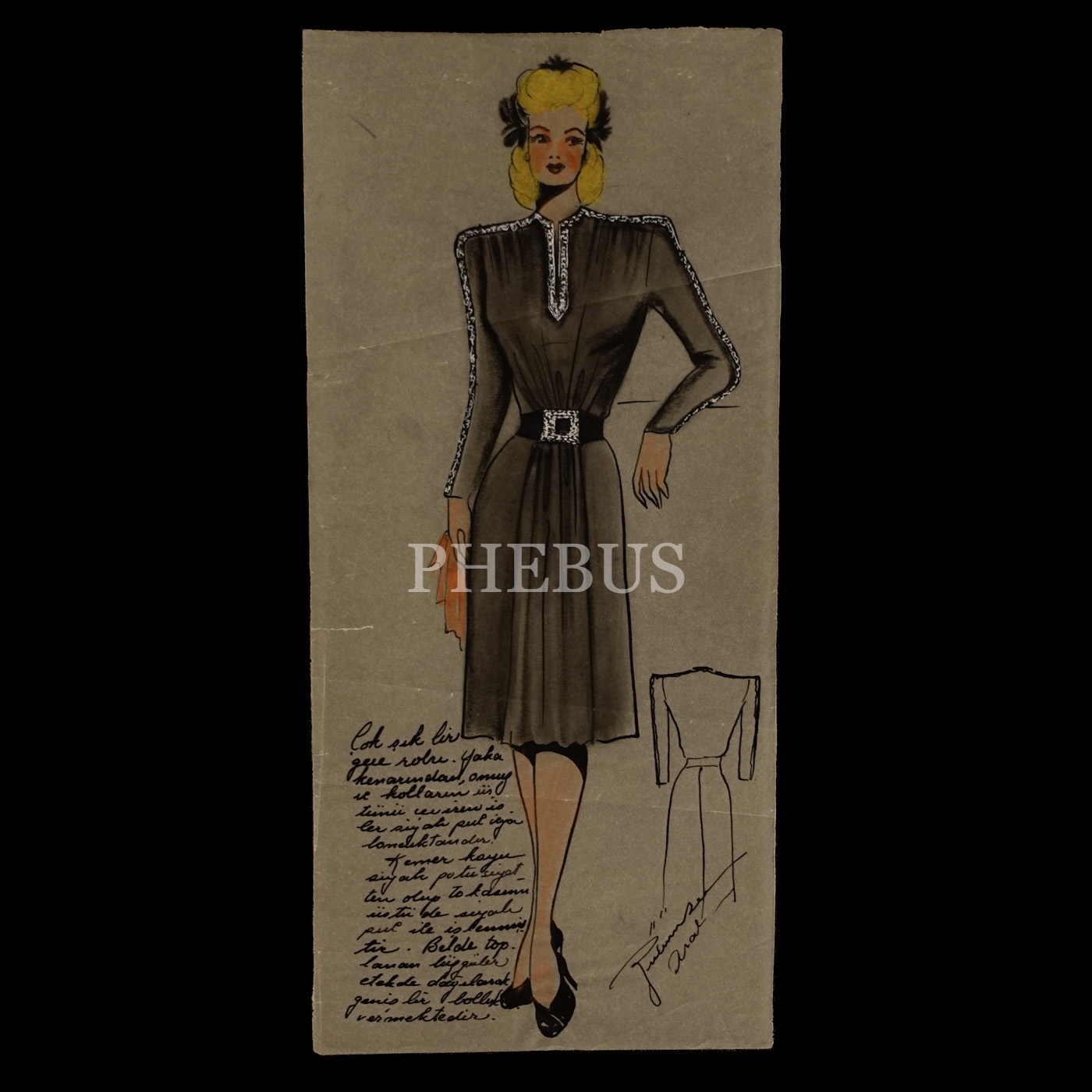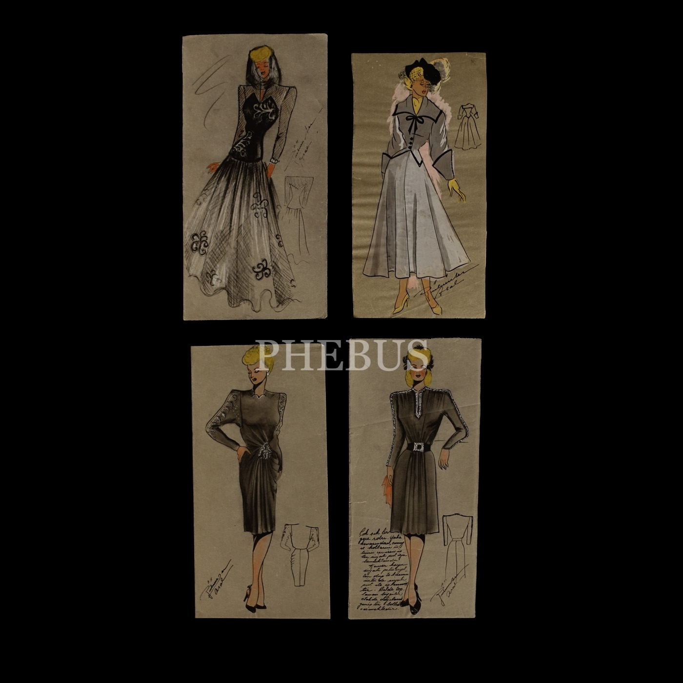 Gülümser Aral´ın EV-İŞ dergisi için çizdiği, ıslak imzalı dört adet kıyafet tasarımı, ortalama 14x28 cm...
