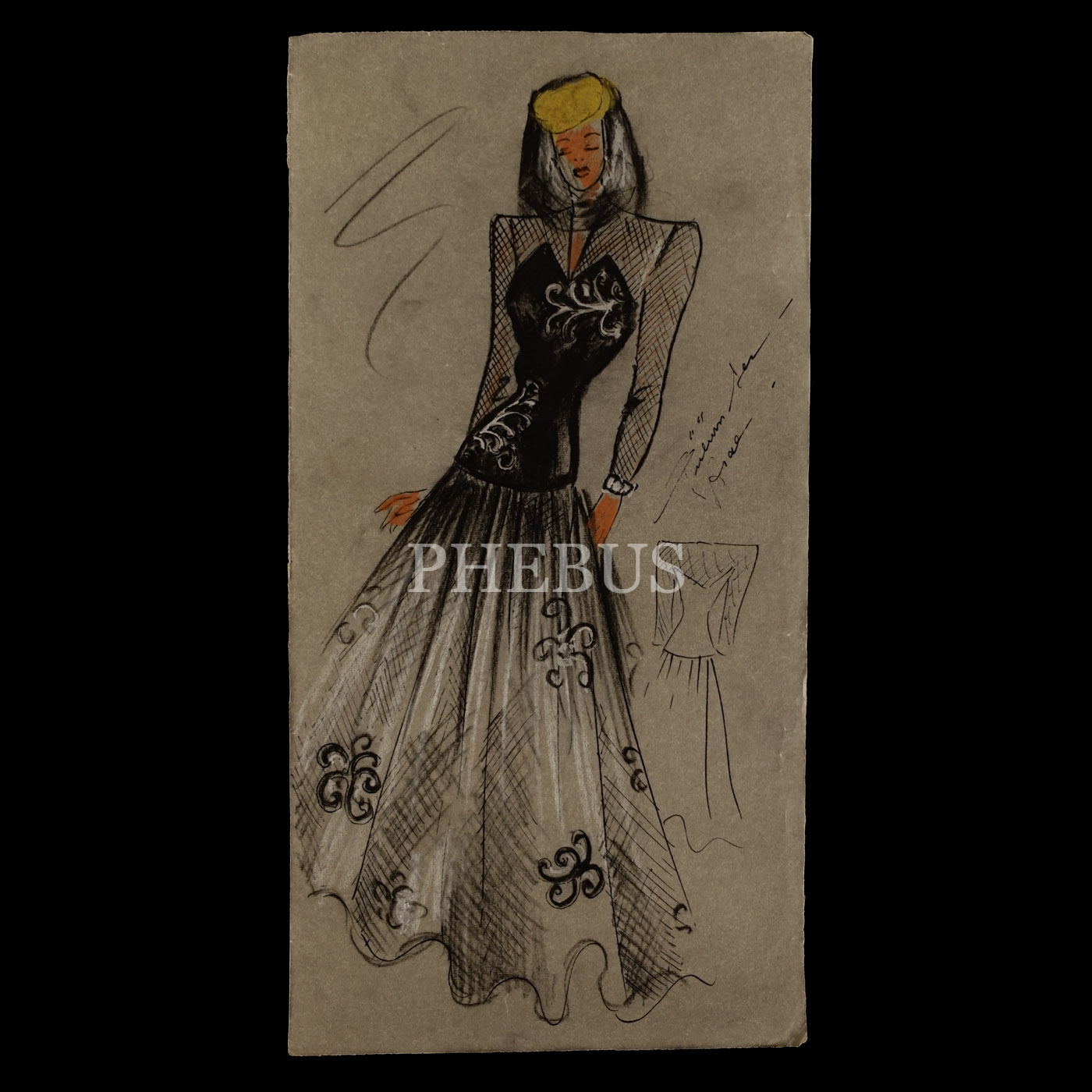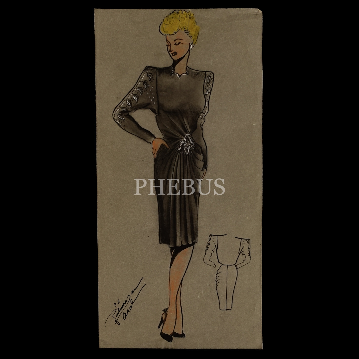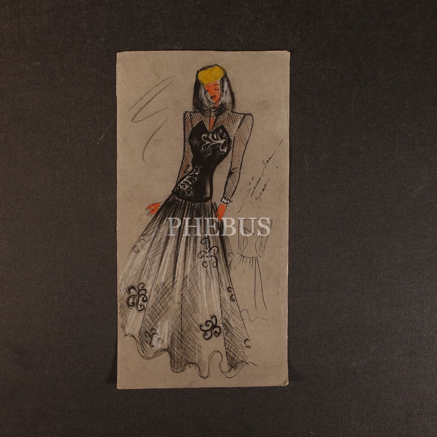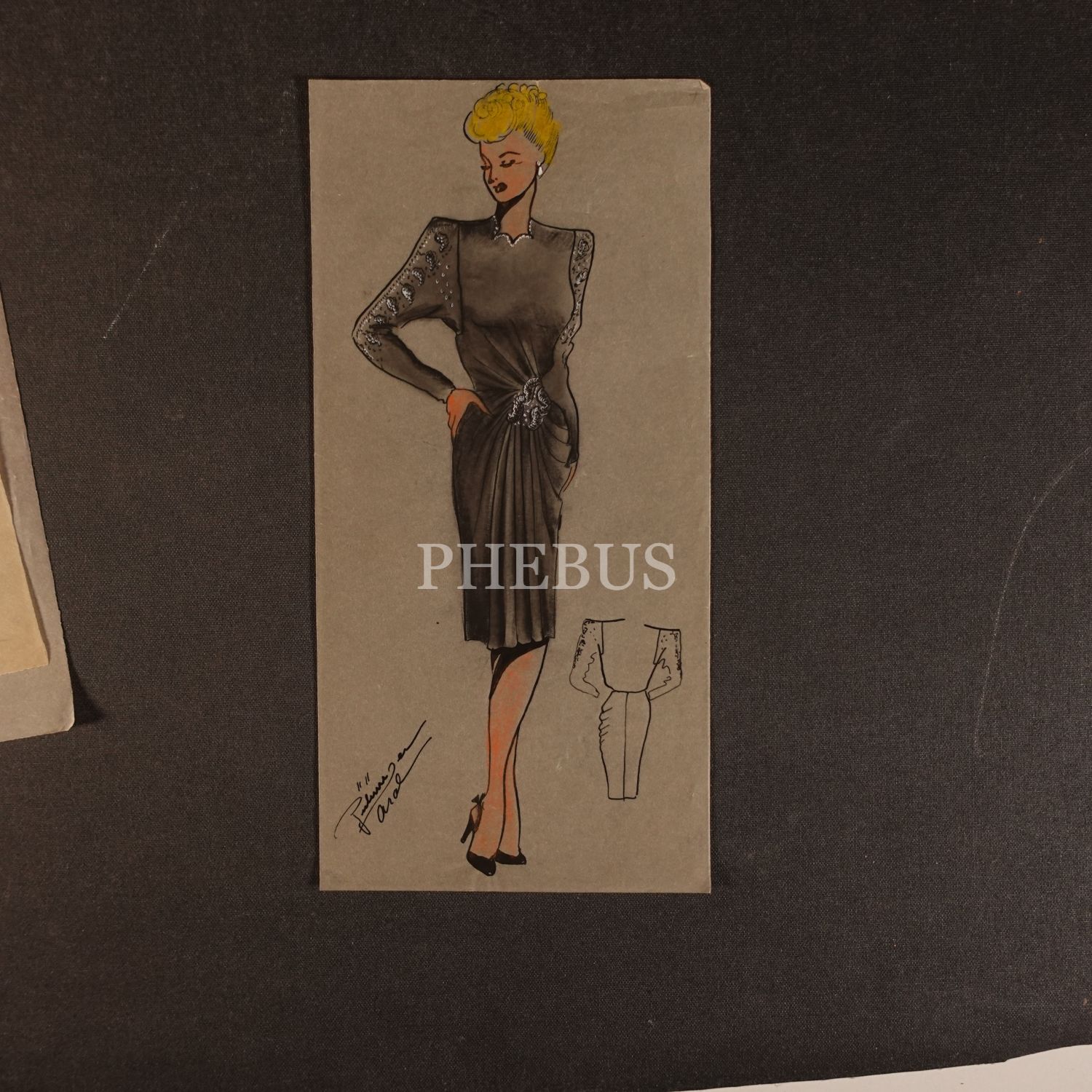 Gülümser Aral´ın EV-İŞ dergisi için çizdiği, ıslak imzalı dört adet kıyafet tasarımı, ortalama 14x28 cm...