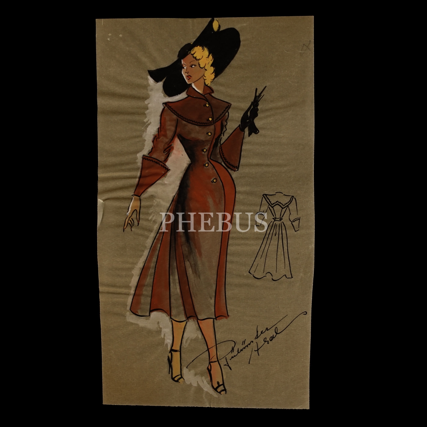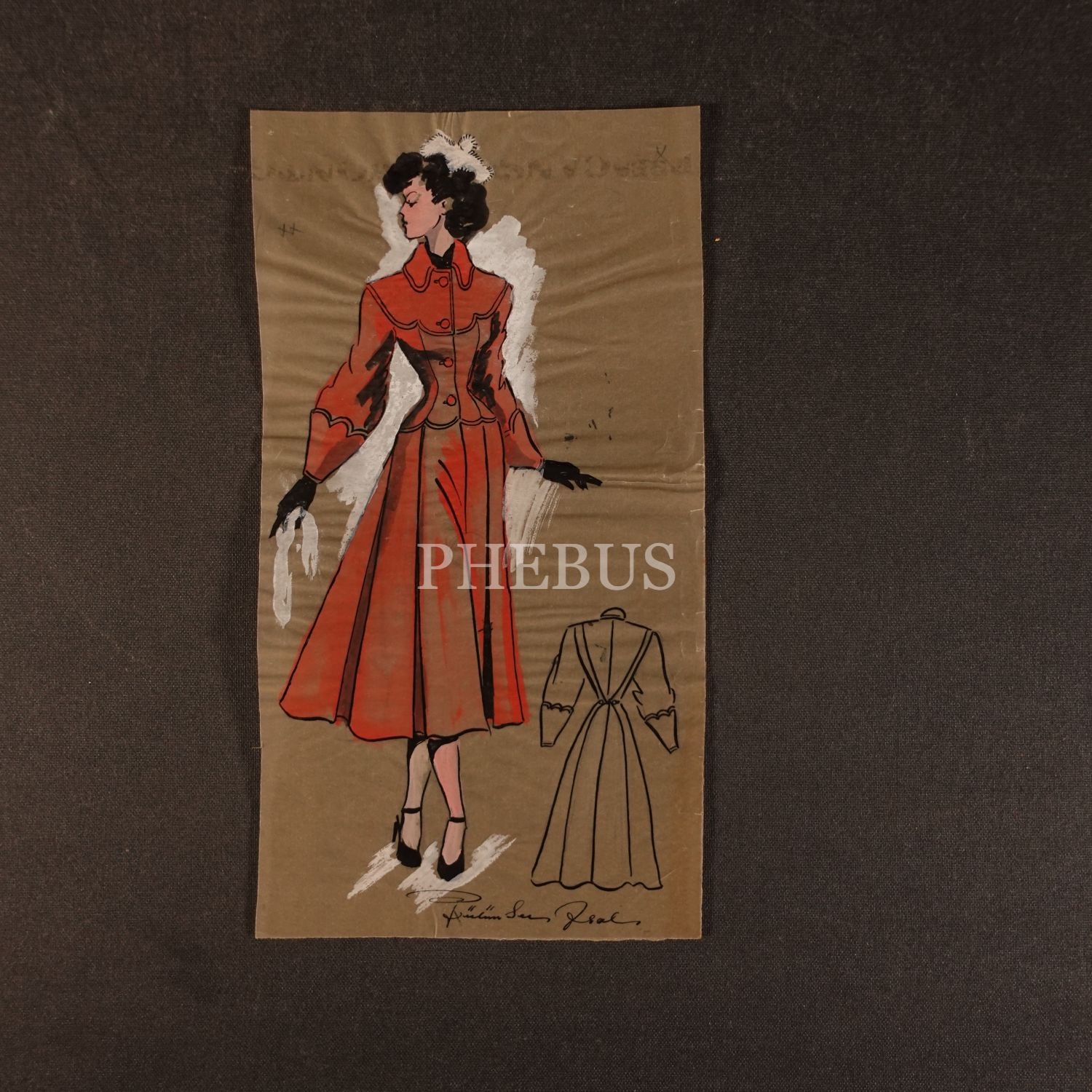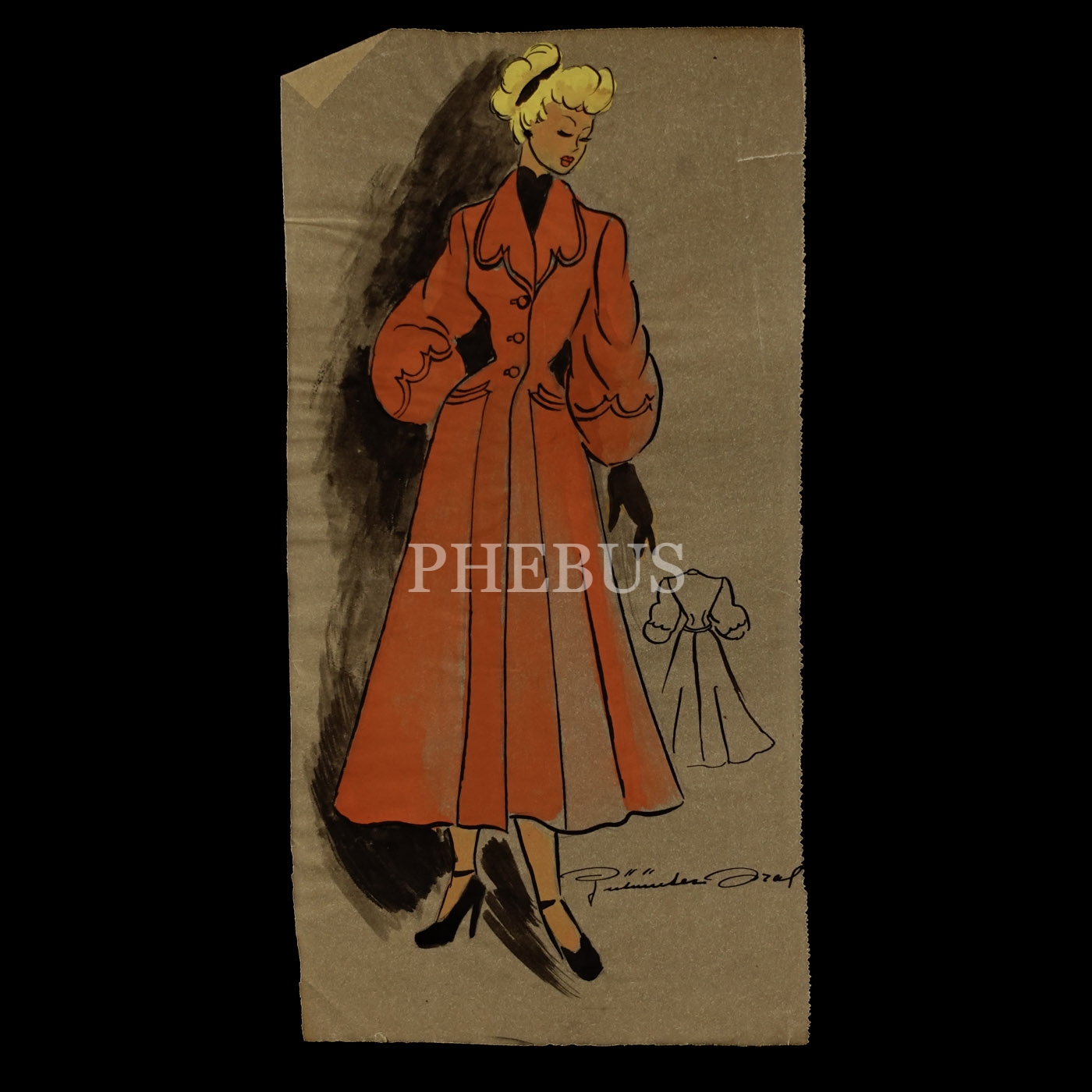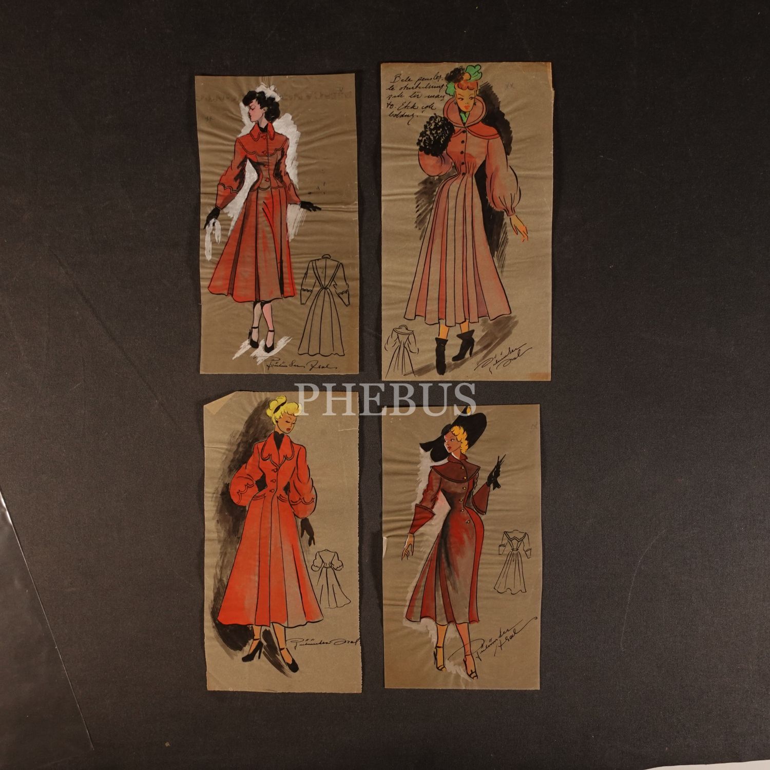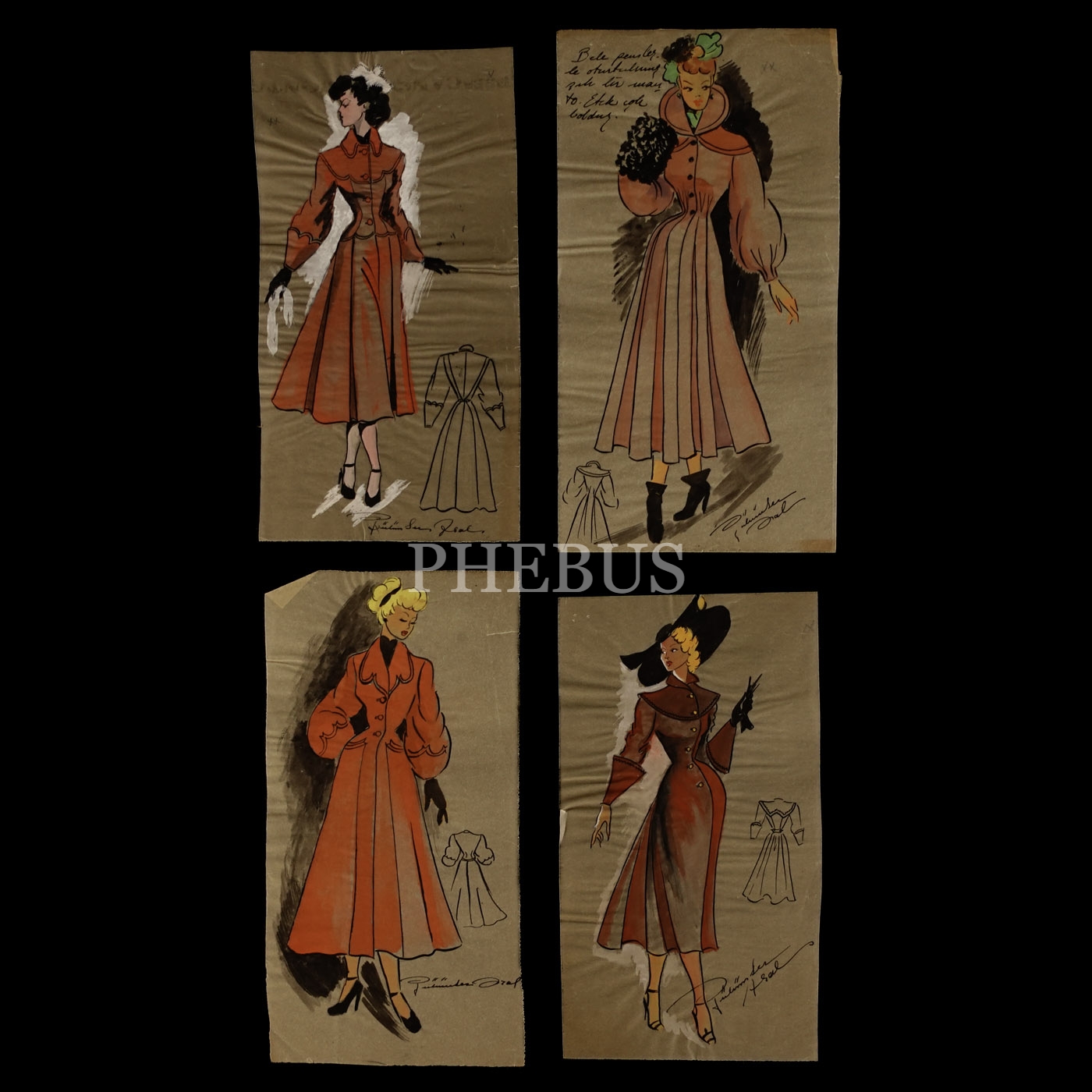 Gülümser Aral´ın EV-İŞ dergisi için çizdiği, ıslak imzalı dört adet kıyafet tasarımı, ortalama 14x28 cm...