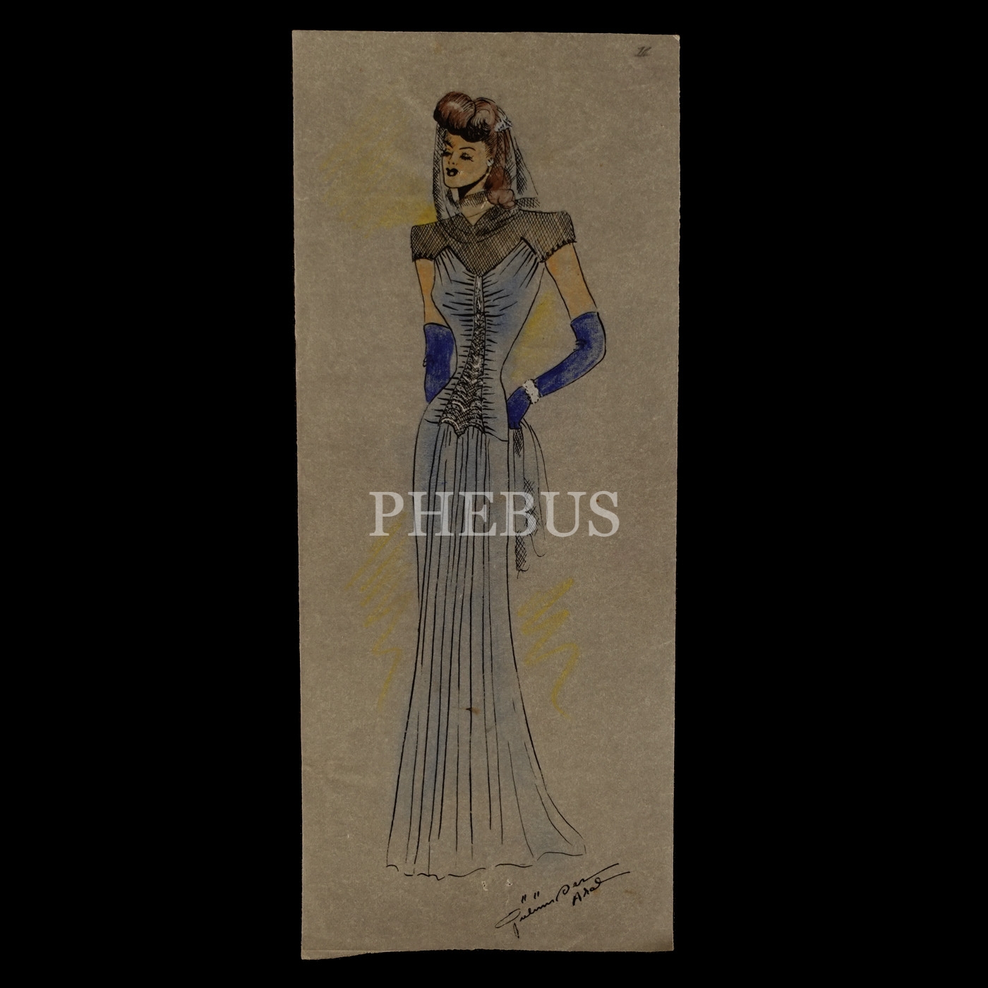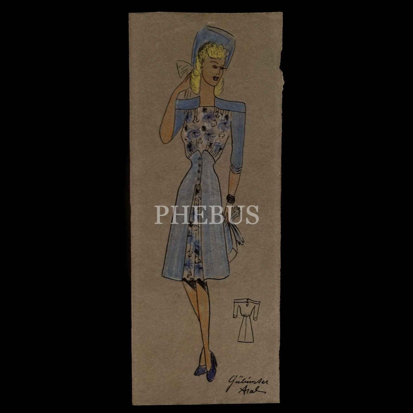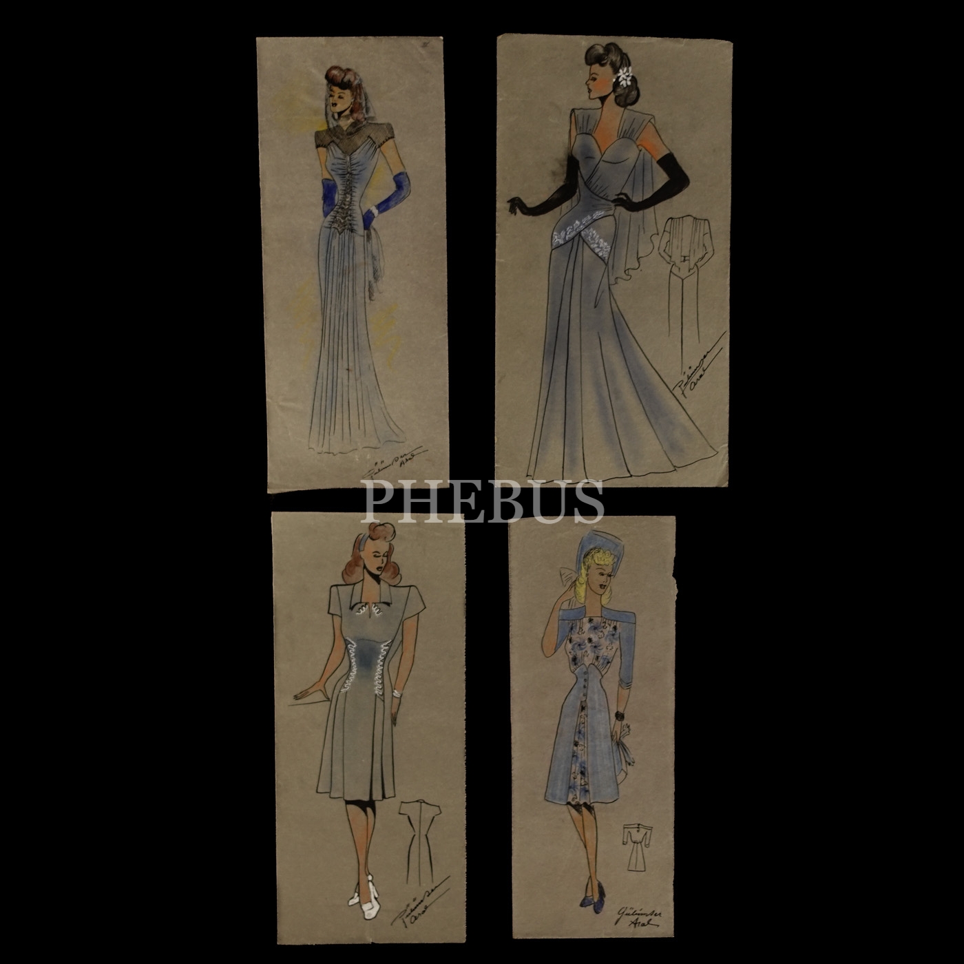 Gülümser Aral´ın EV-İŞ dergisi için çizdiği, ıslak imzalı dört adet kıyafet tasarımı, ortalama 14x28 cm...