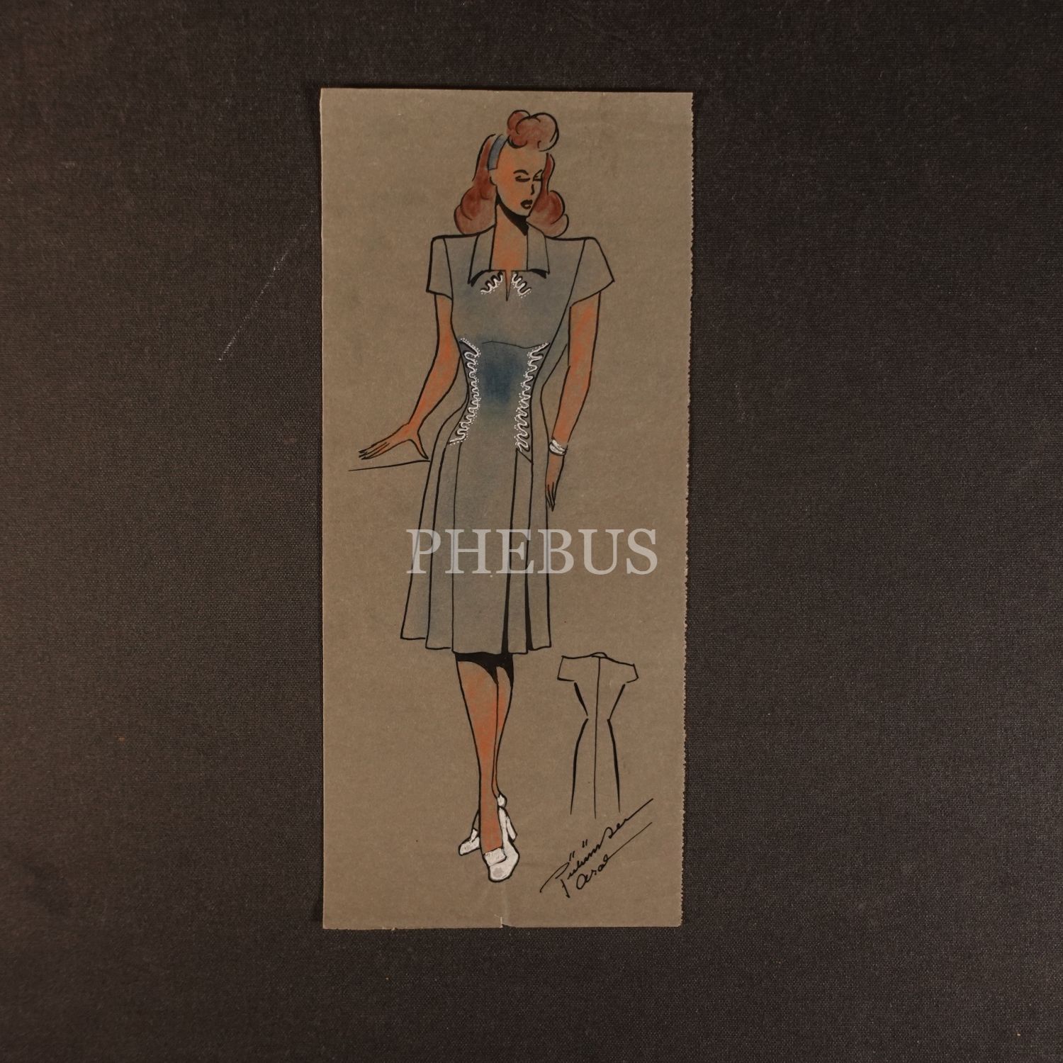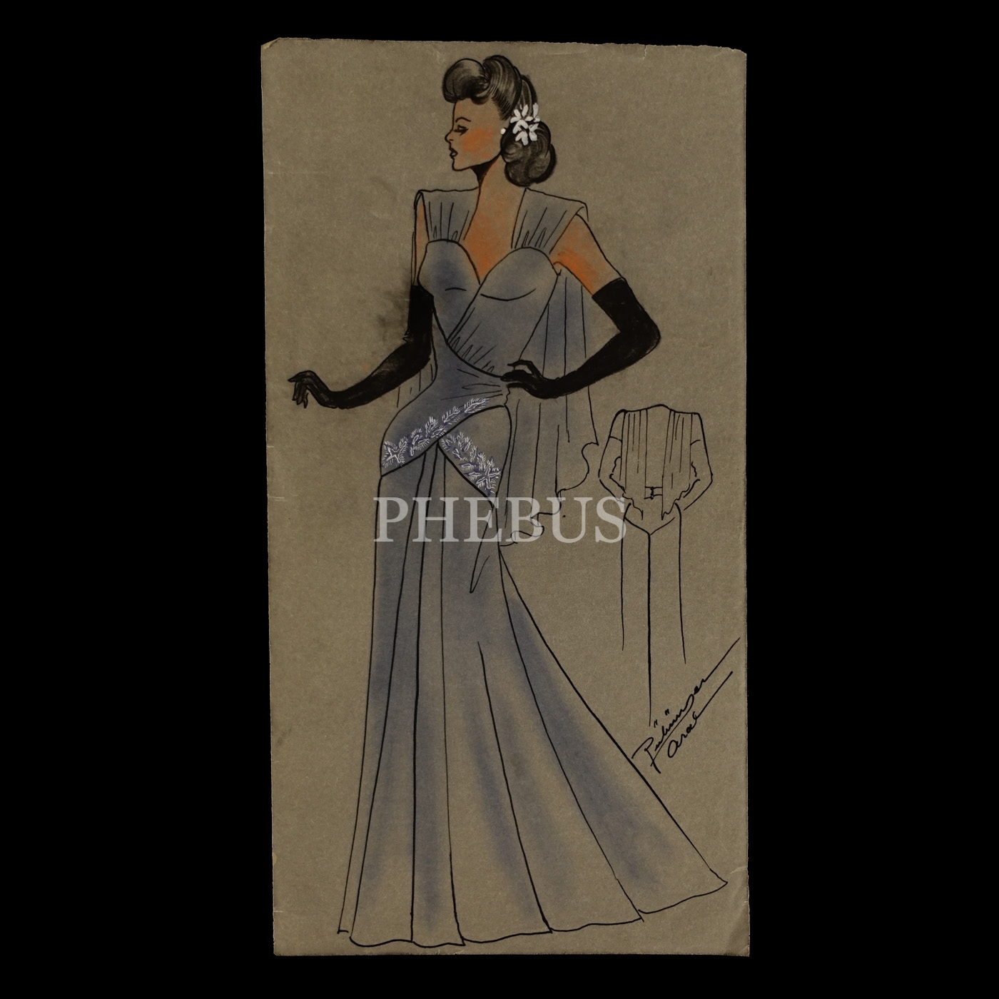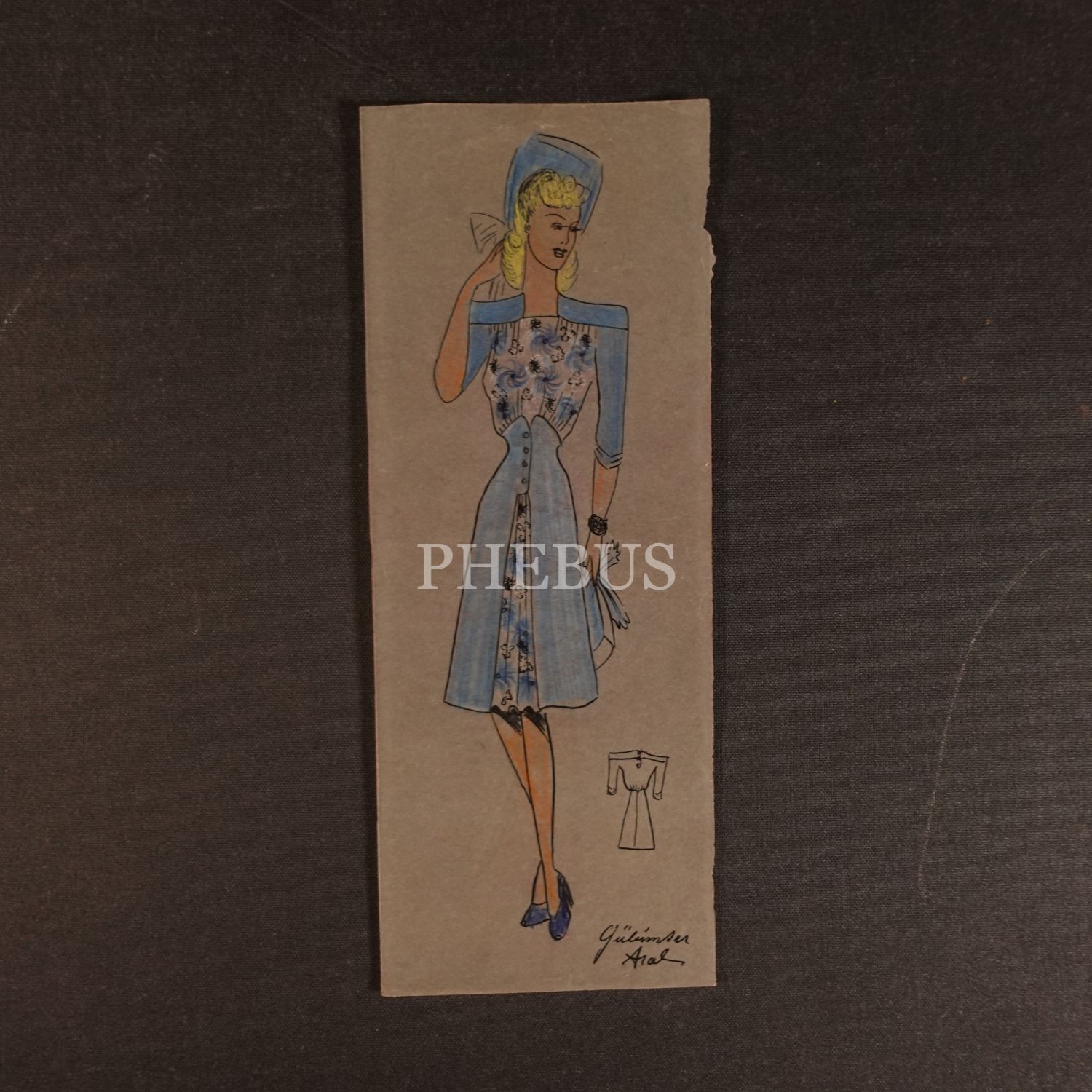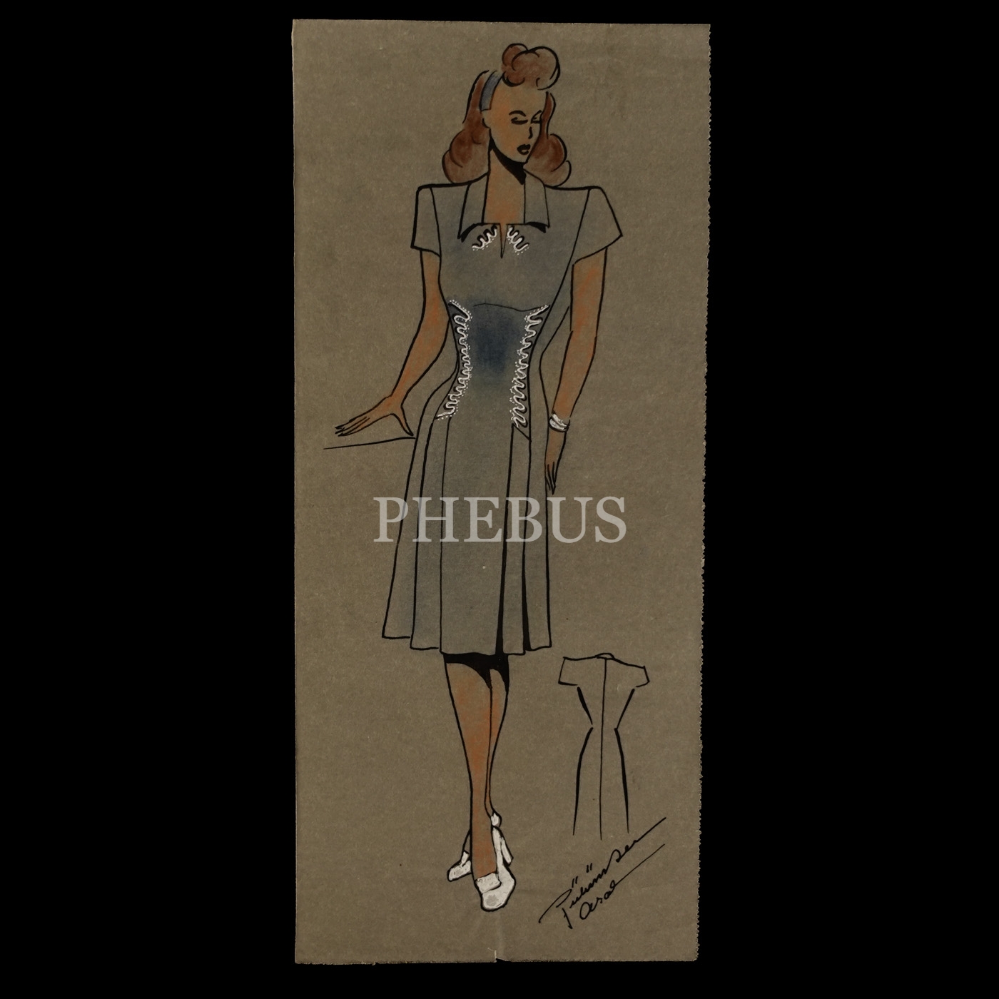 Gülümser Aral´ın EV-İŞ dergisi için çizdiği, ıslak imzalı dört adet kıyafet tasarımı, ortalama 14x28 cm...