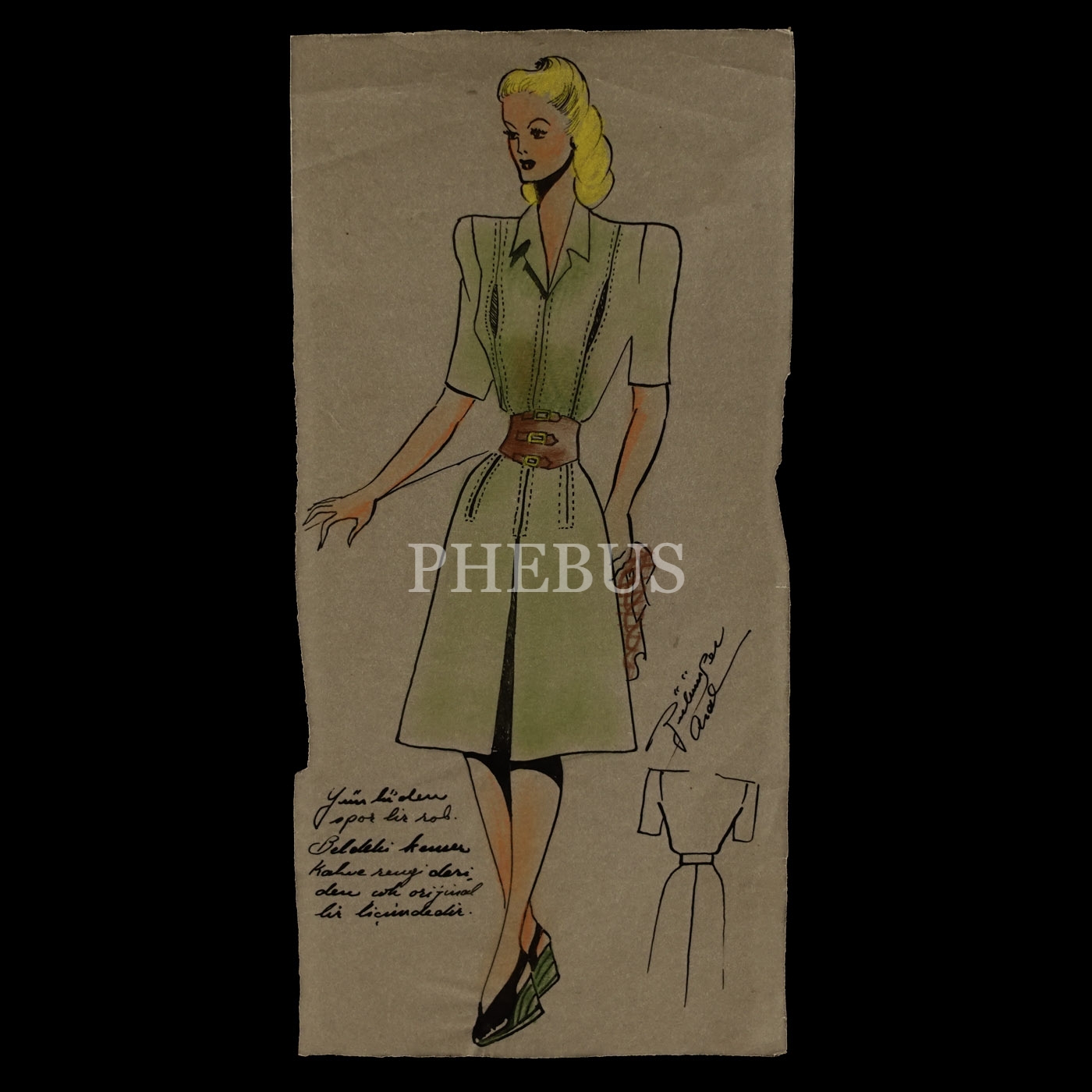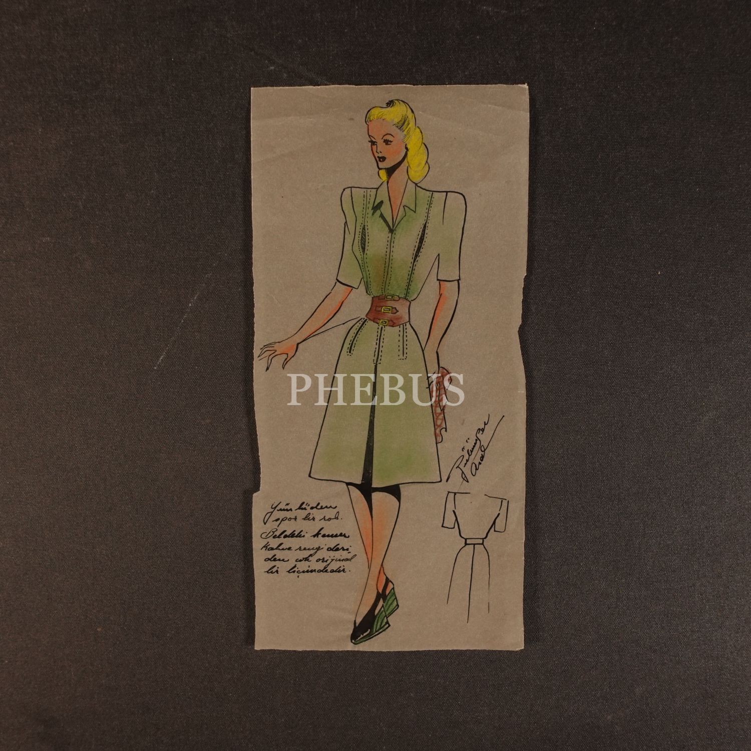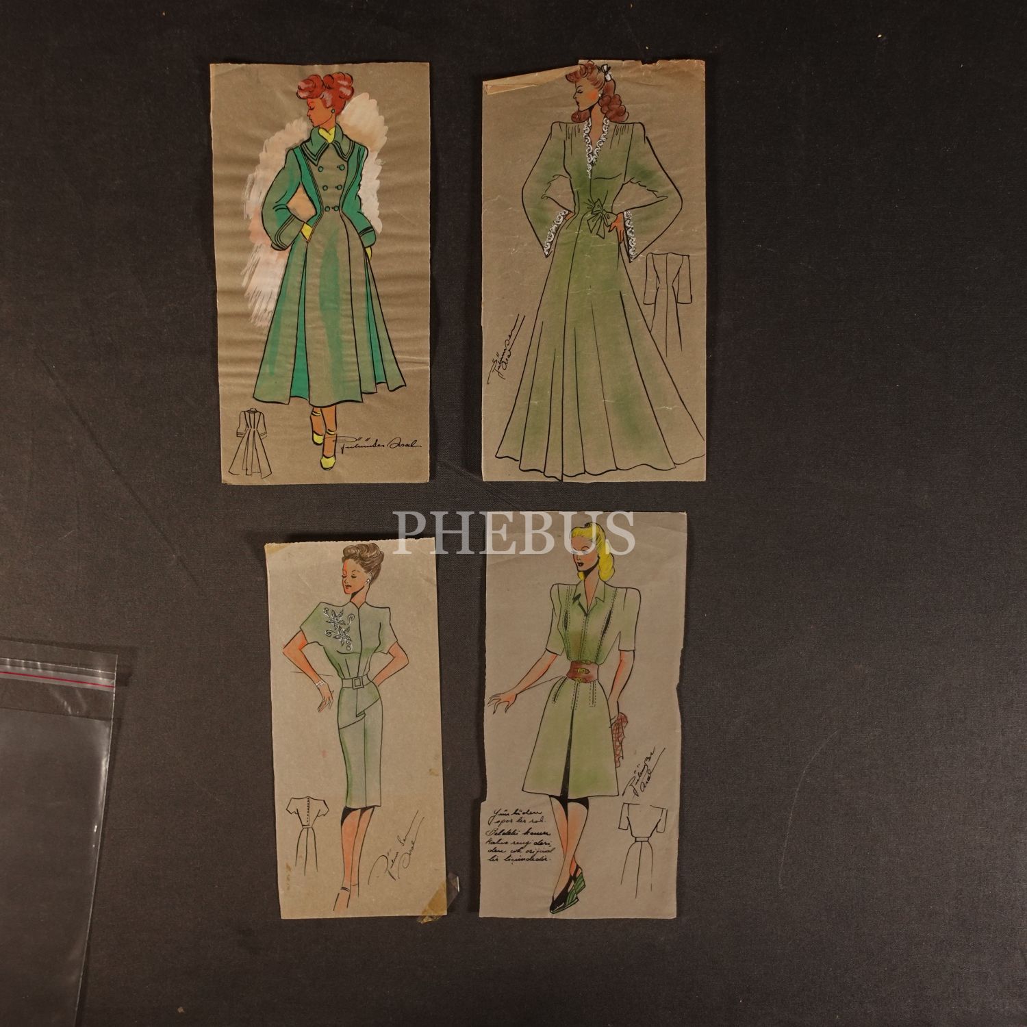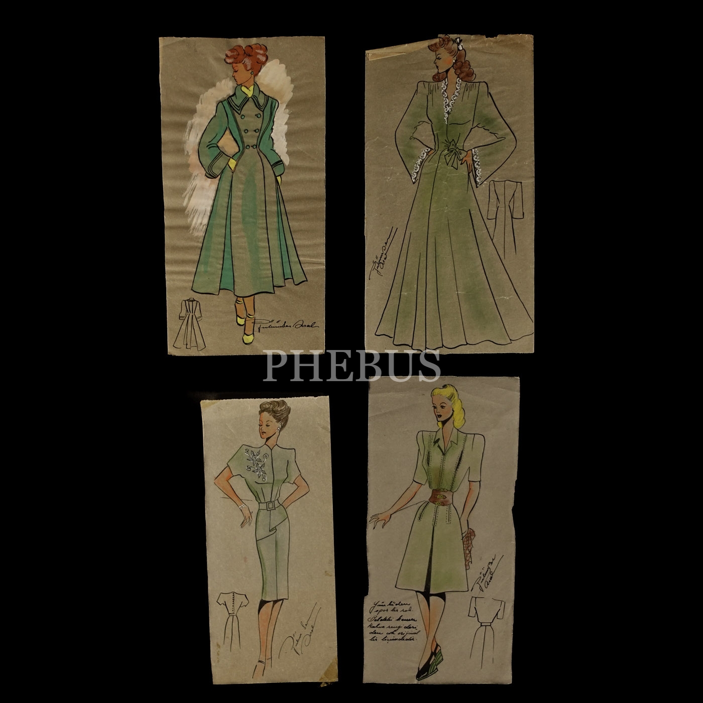 Gülümser Aral´ın EV-İŞ dergisi için çizdiği, ıslak imzalı dört adet kıyafet tasarımı, ortalama 14x28 cm...