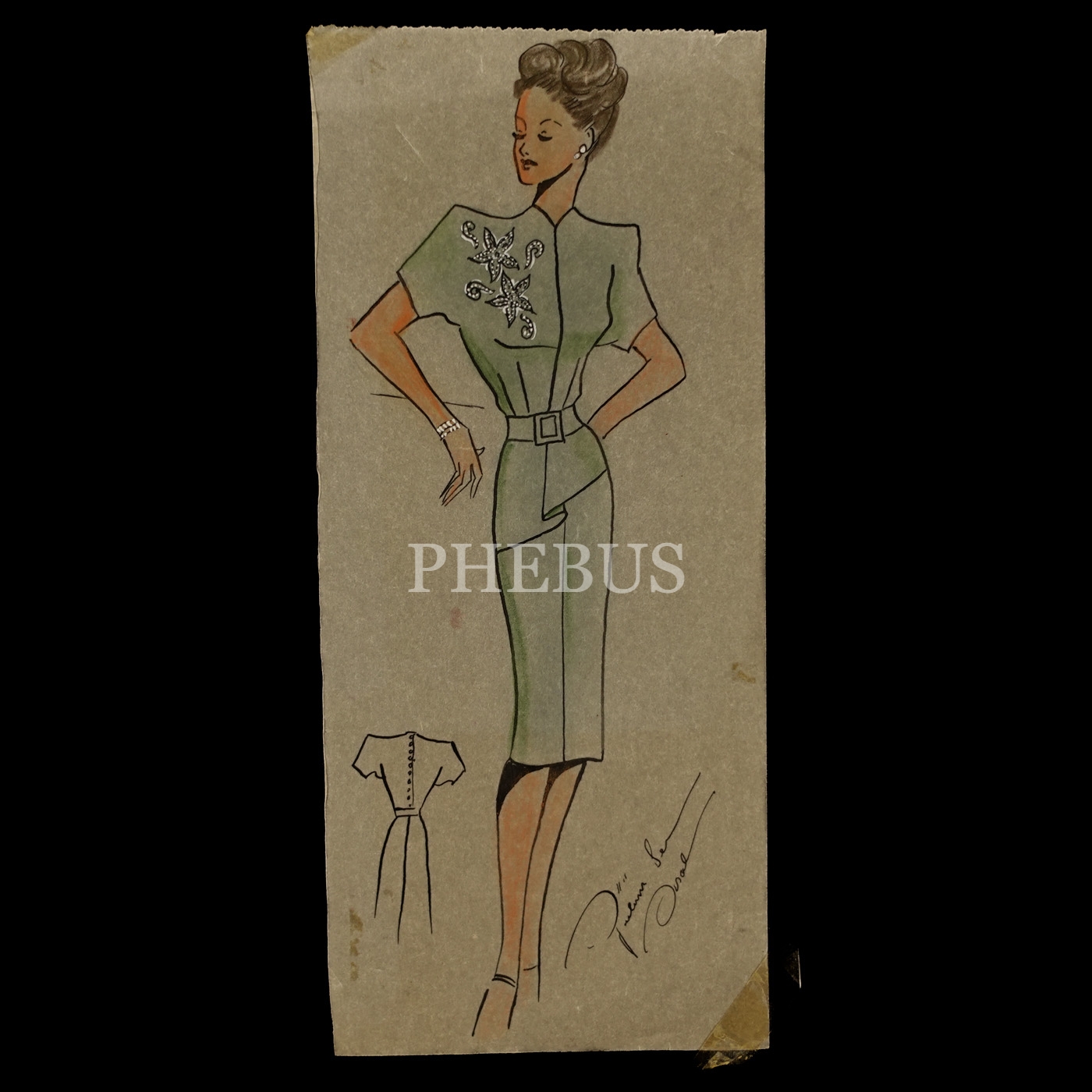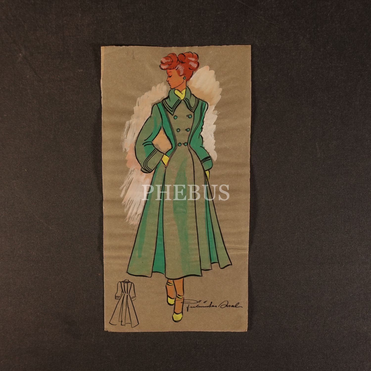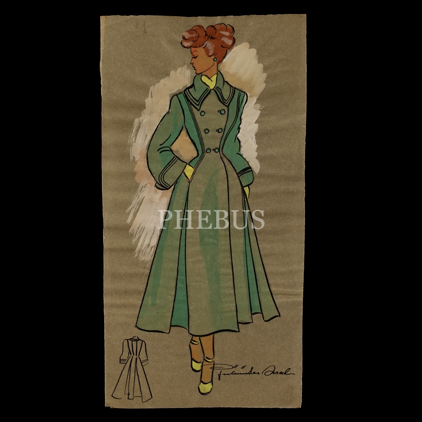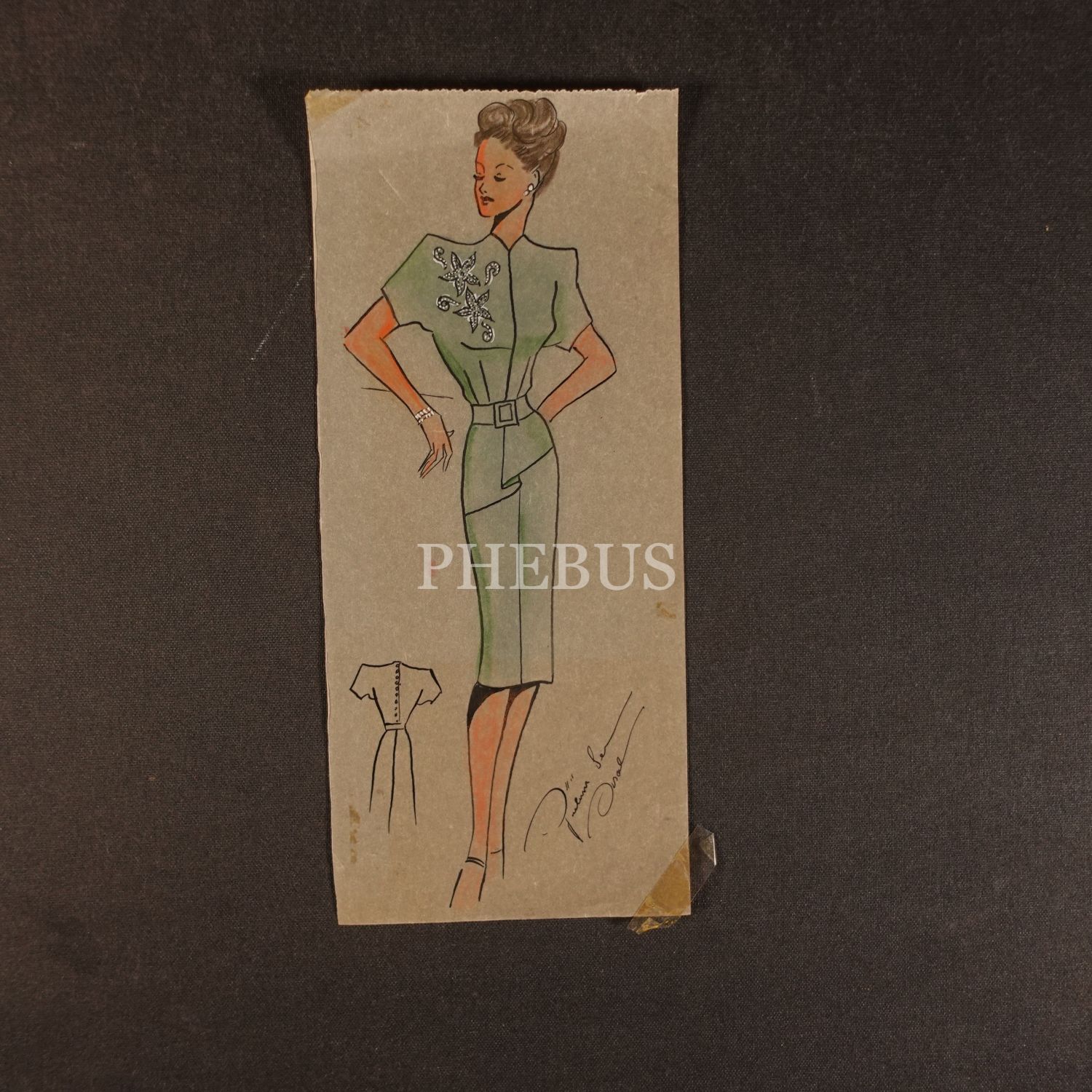Gülümser Aral´ın EV-İŞ dergisi için çizdiği, ıslak imzalı dört adet kıyafet tasarımı, ortalama 14x28 cm...