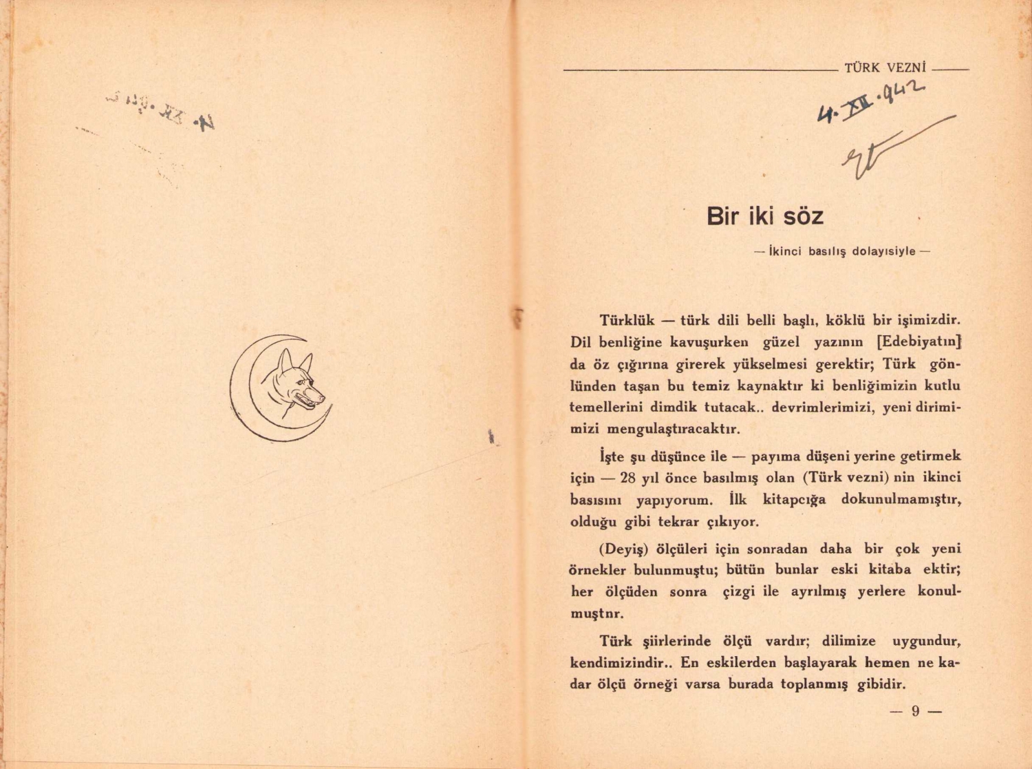 Türk Vezni, İzzet Ulvi Aykurt, ikinci baskı, İstanbul, 1942, 102 sayfa, 12x19 cm