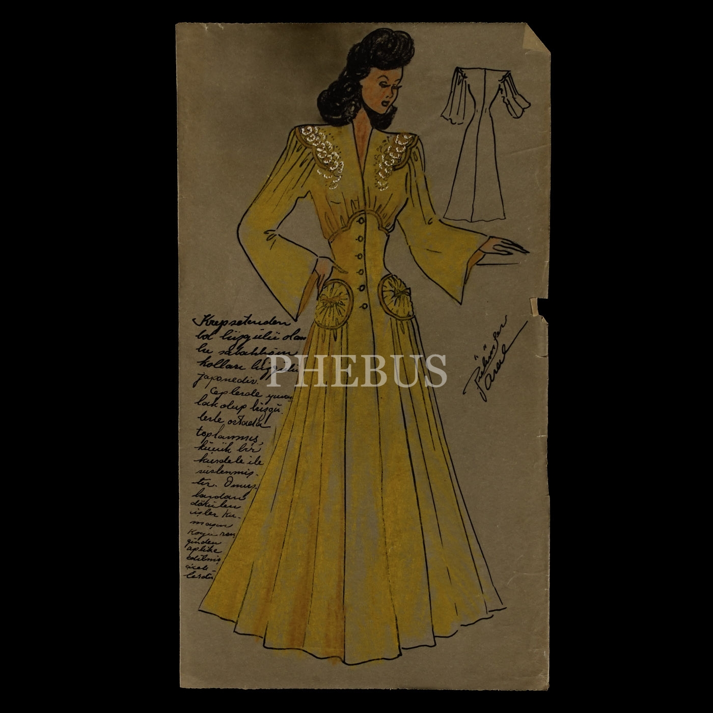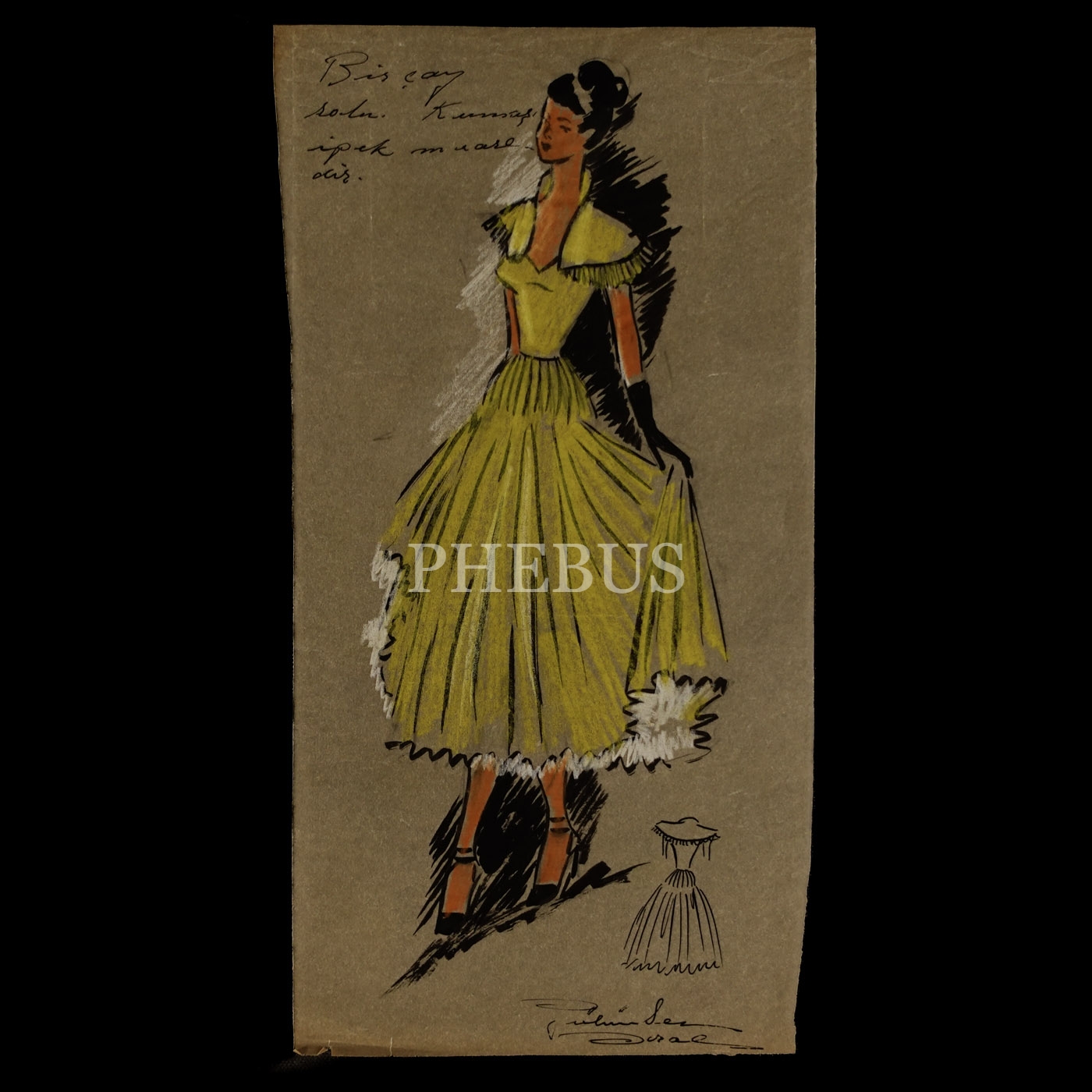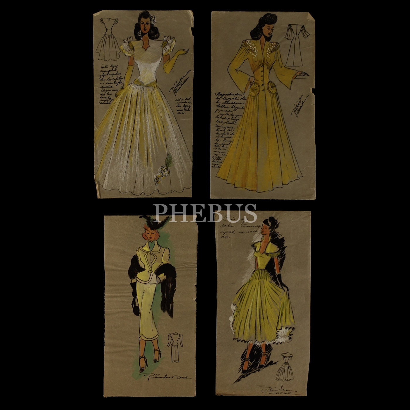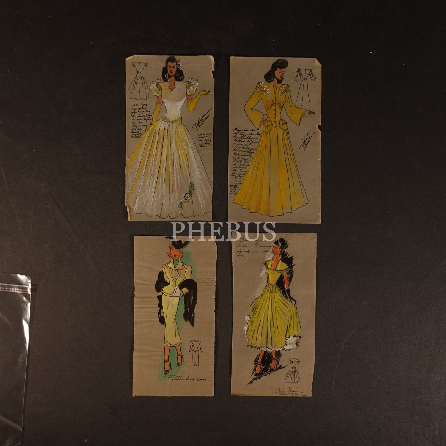 Gülümser Aral´ın EV-İŞ dergisi için çizdiği, ıslak imzalı dört adet kıyafet tasarımı, ortalama 14x28 cm...