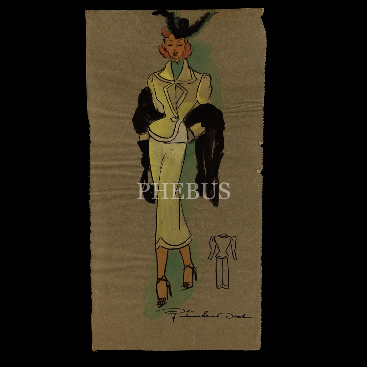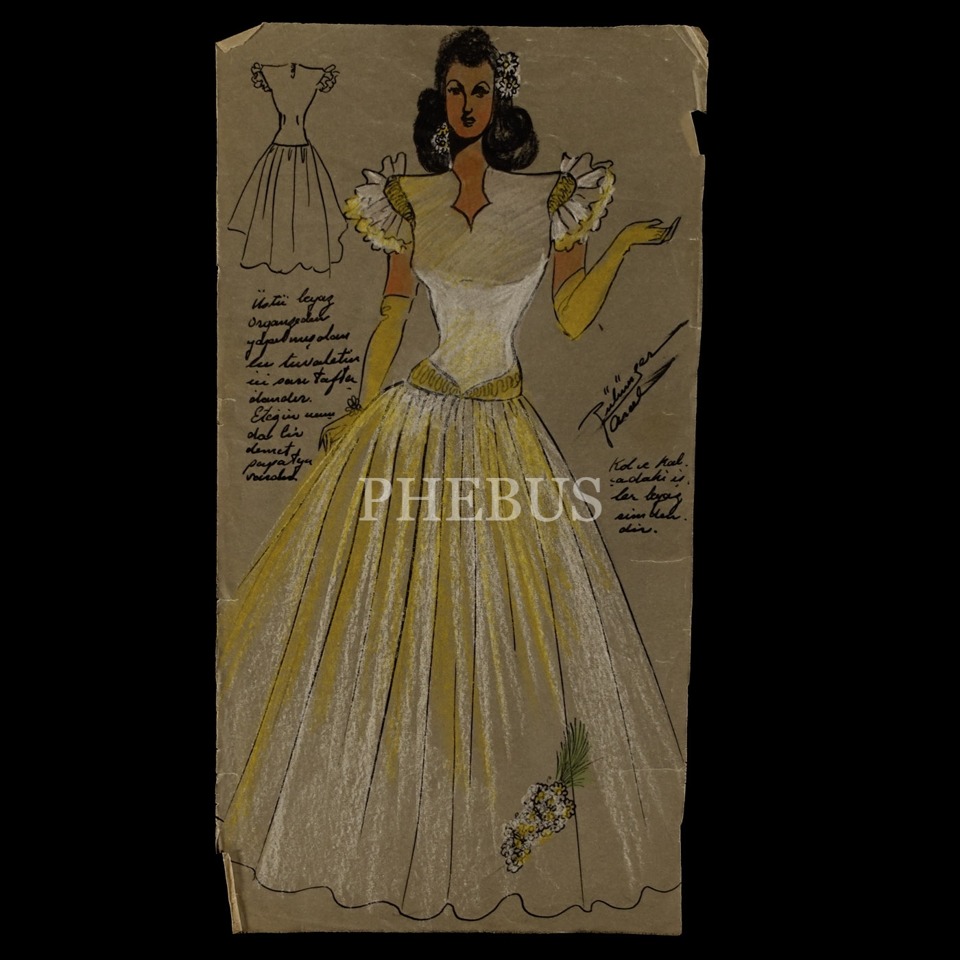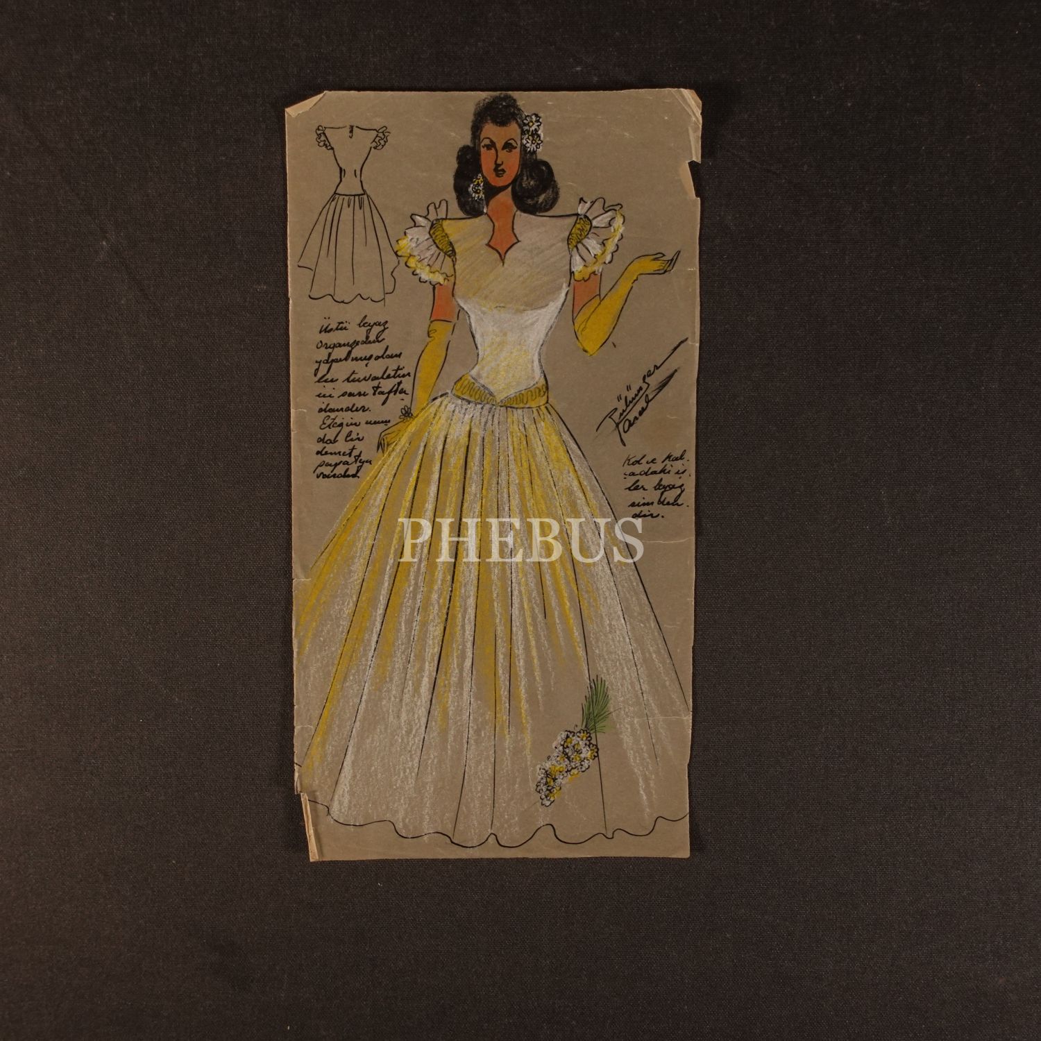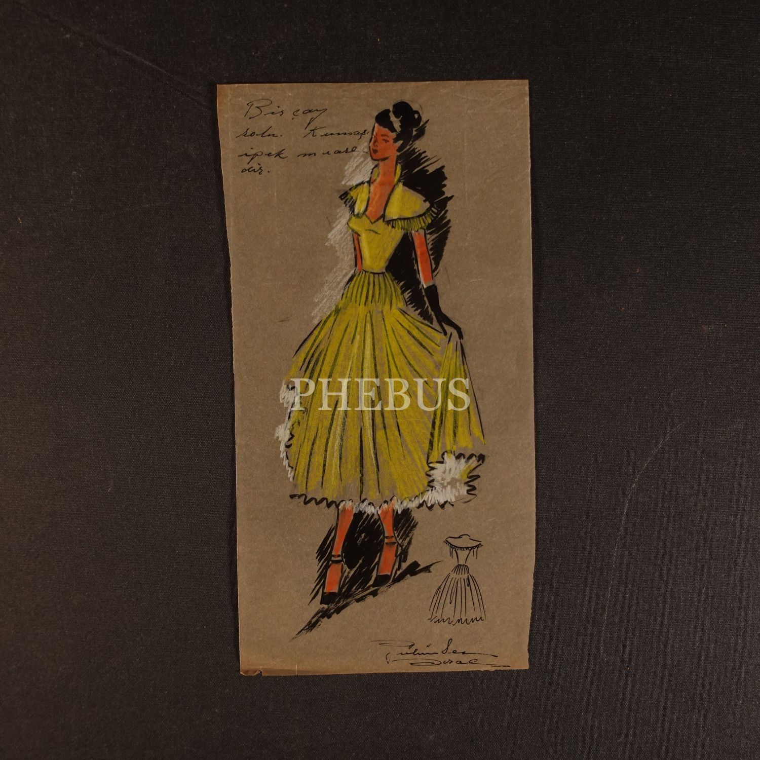 Gülümser Aral´ın EV-İŞ dergisi için çizdiği, ıslak imzalı dört adet kıyafet tasarımı, ortalama 14x28 cm...