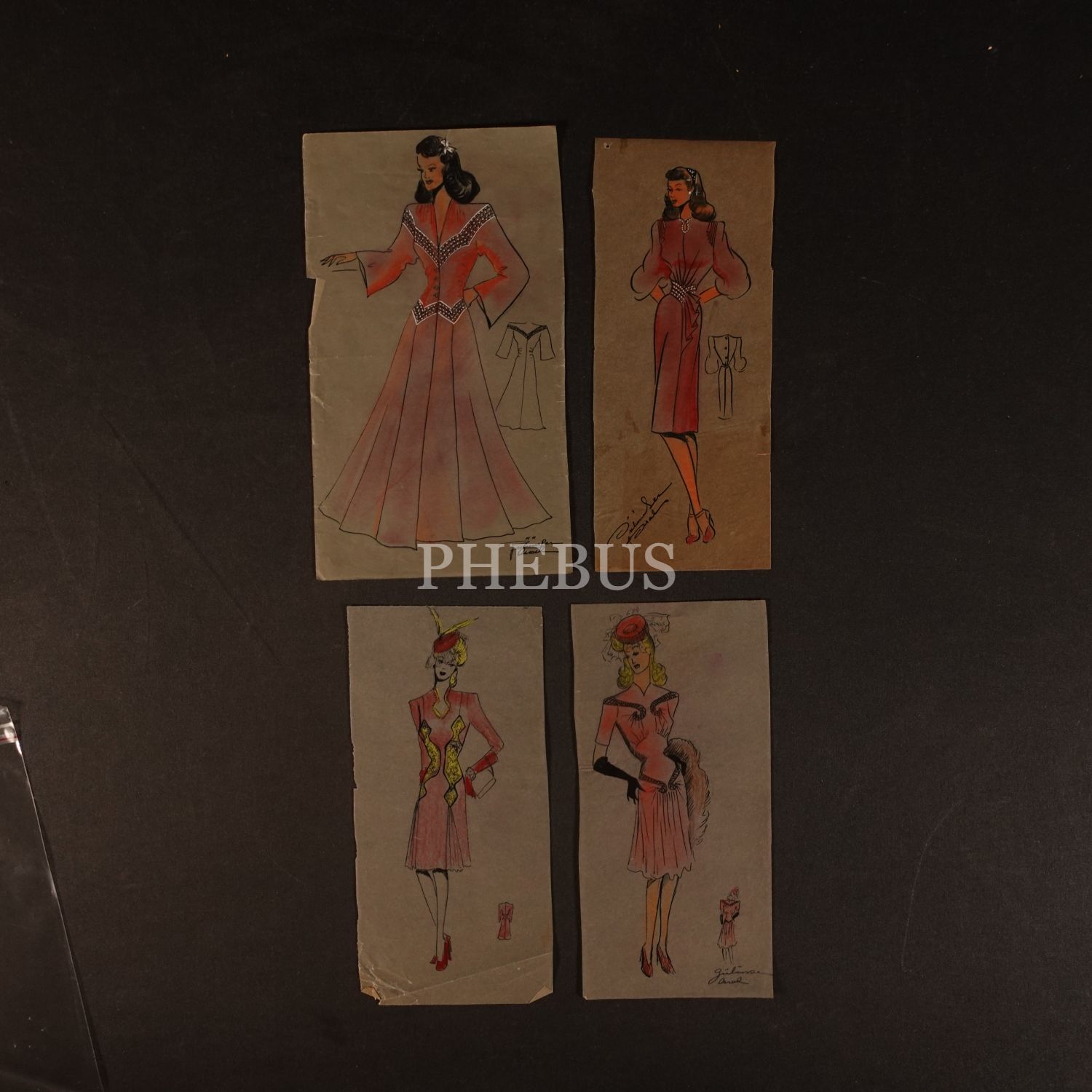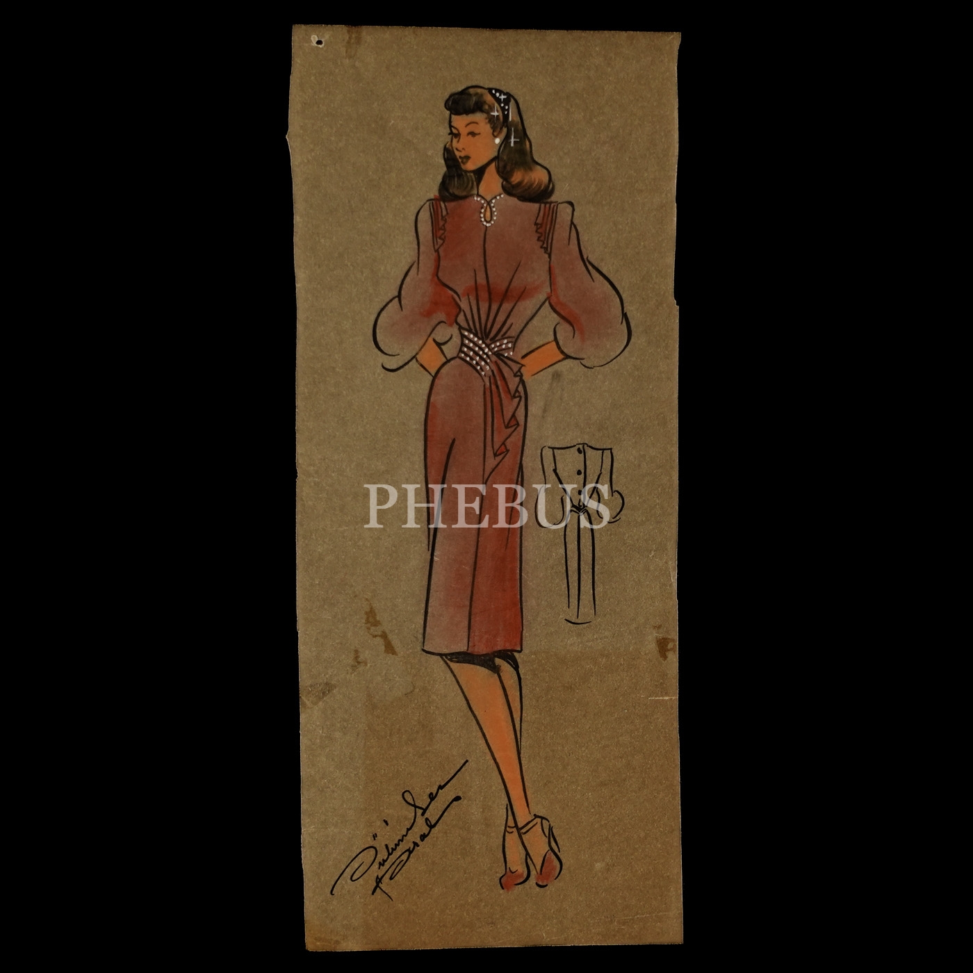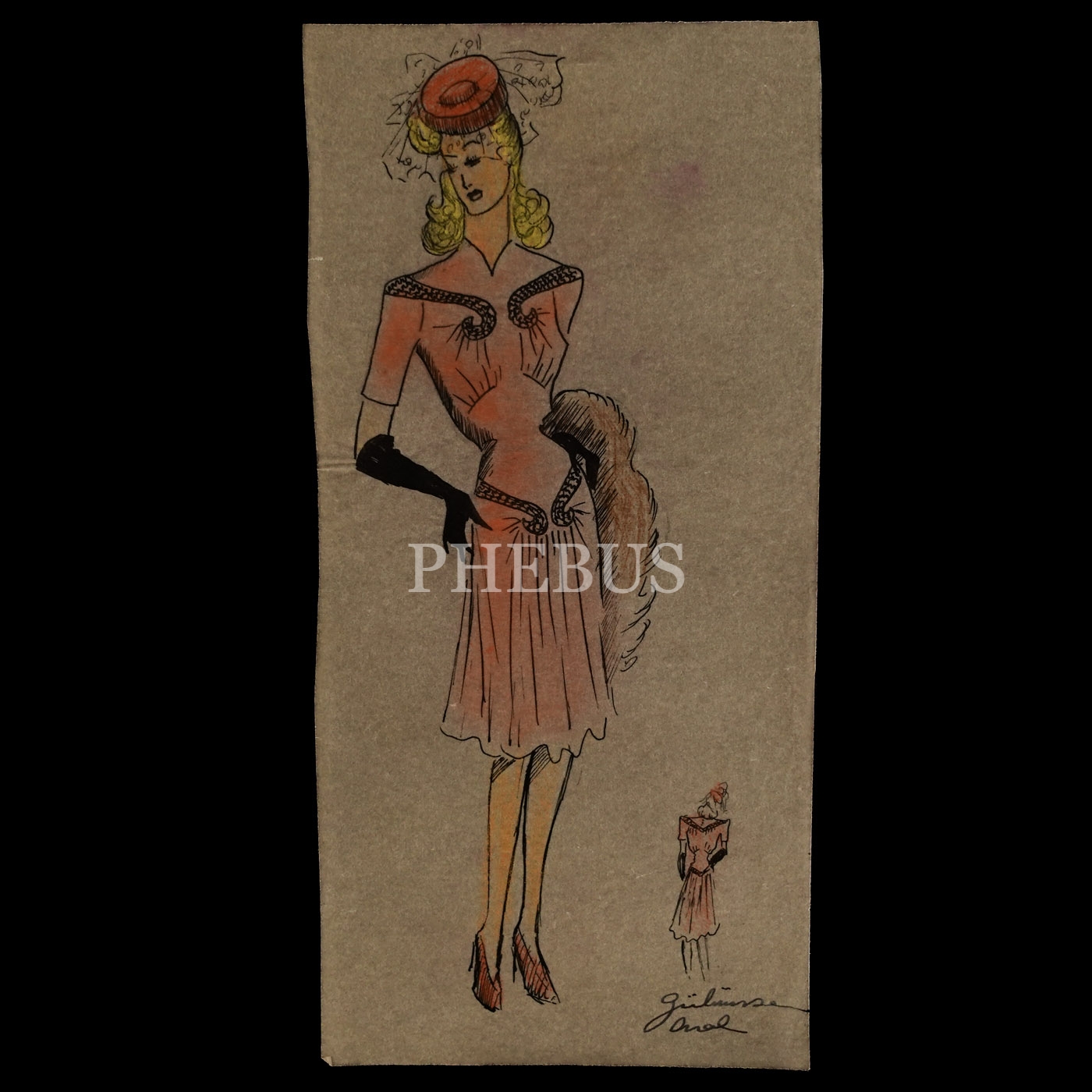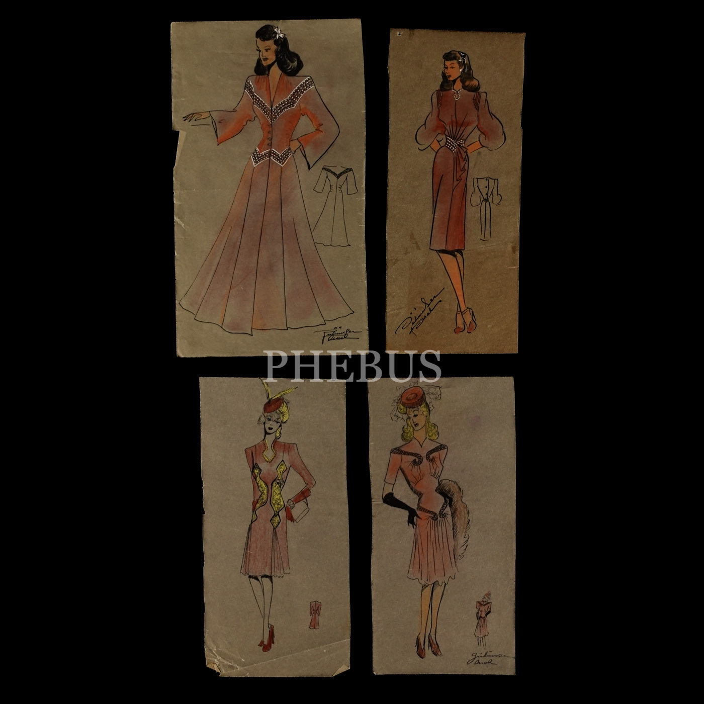 Gülümser Aral´ın EV-İŞ dergisi için çizdiği, ıslak imzalı dört adet kıyafet tasarımı, ortalama 14x28 cm...