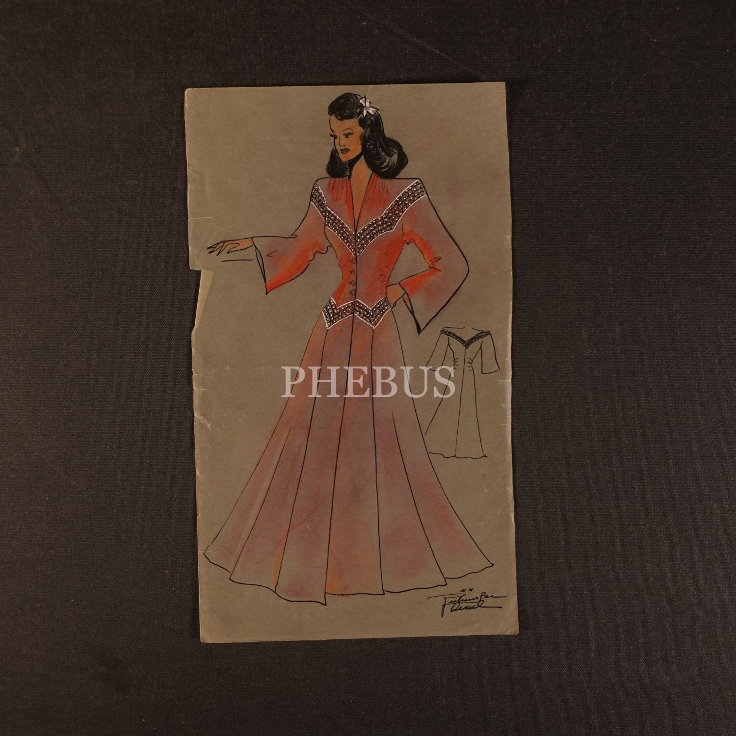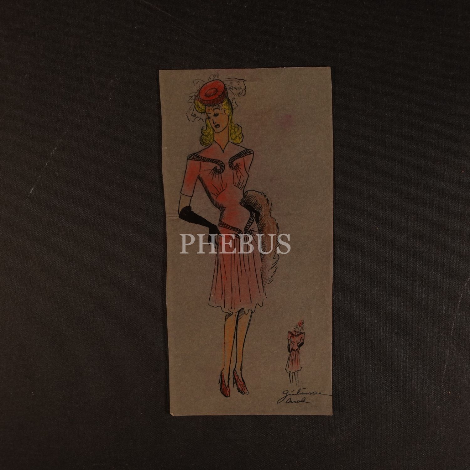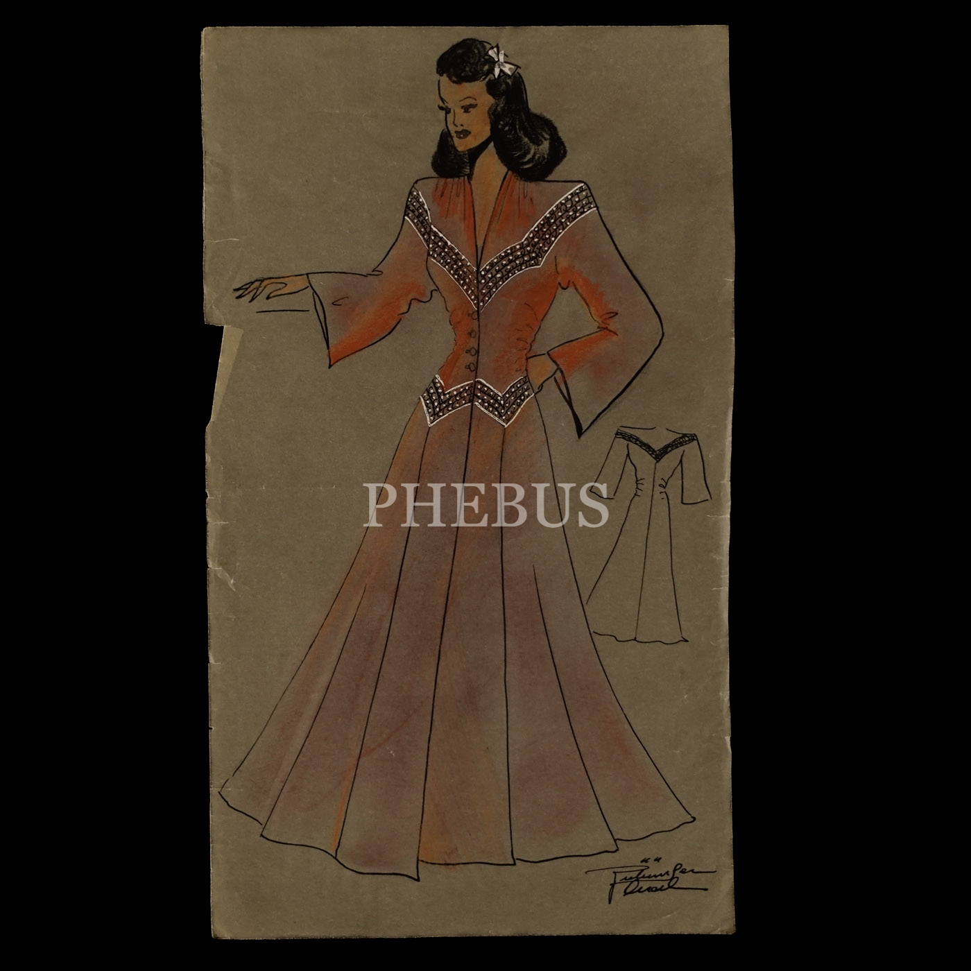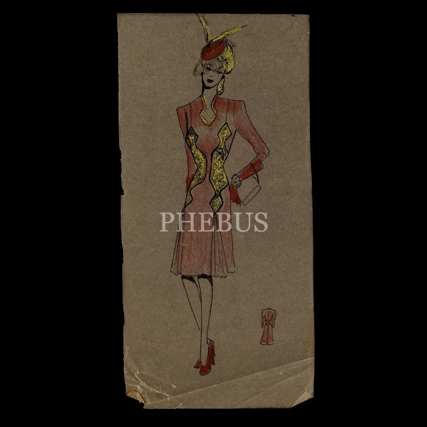 Gülümser Aral´ın EV-İŞ dergisi için çizdiği, ıslak imzalı dört adet kıyafet tasarımı, ortalama 14x28 cm...