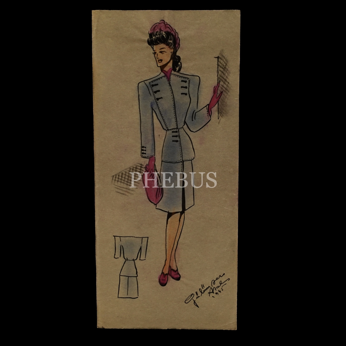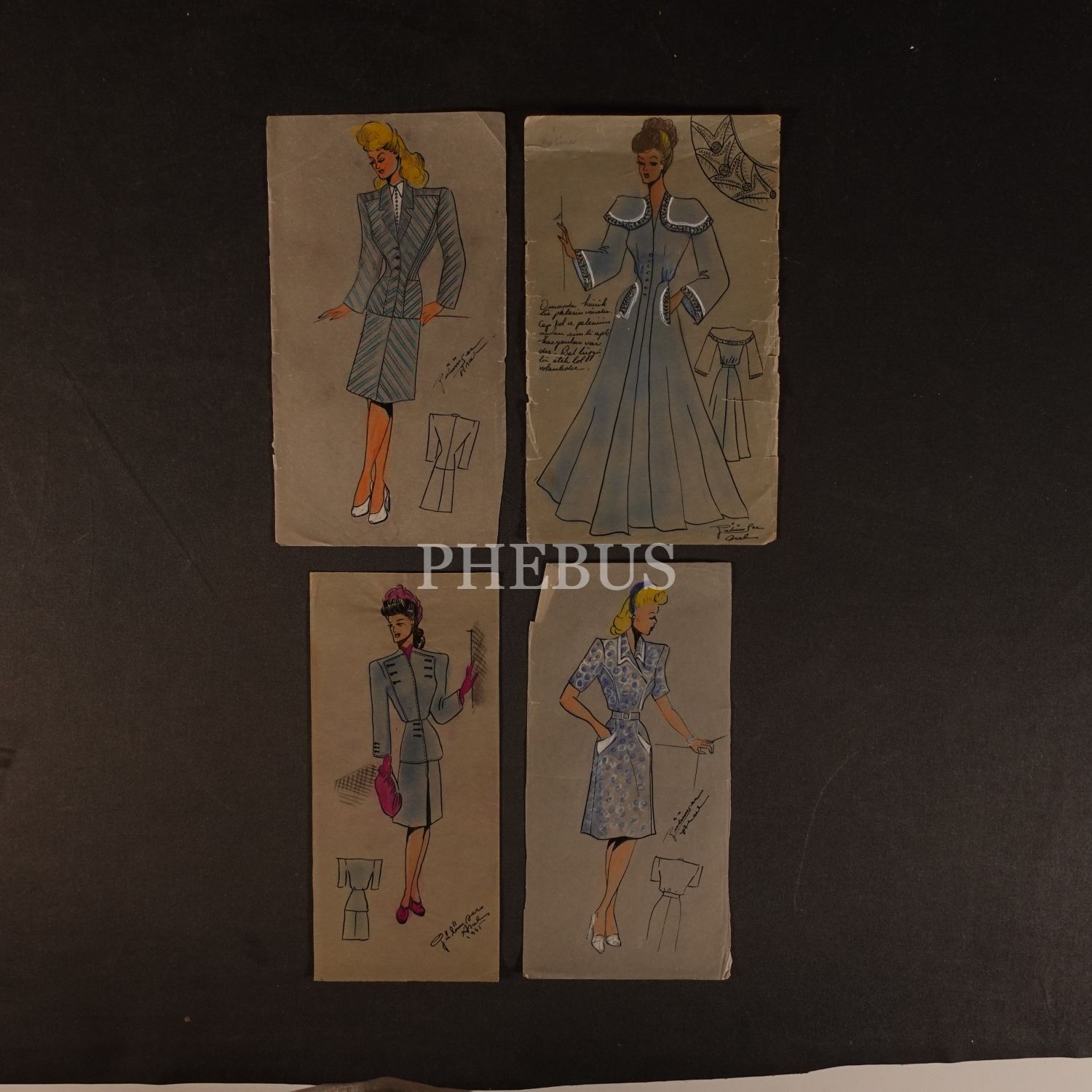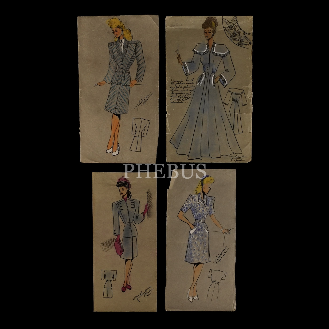Gülümser Aral´ın EV-İŞ dergisi için çizdiği, ıslak imzalı dört adet kıyafet tasarımı, ortalama 14x28 cm...