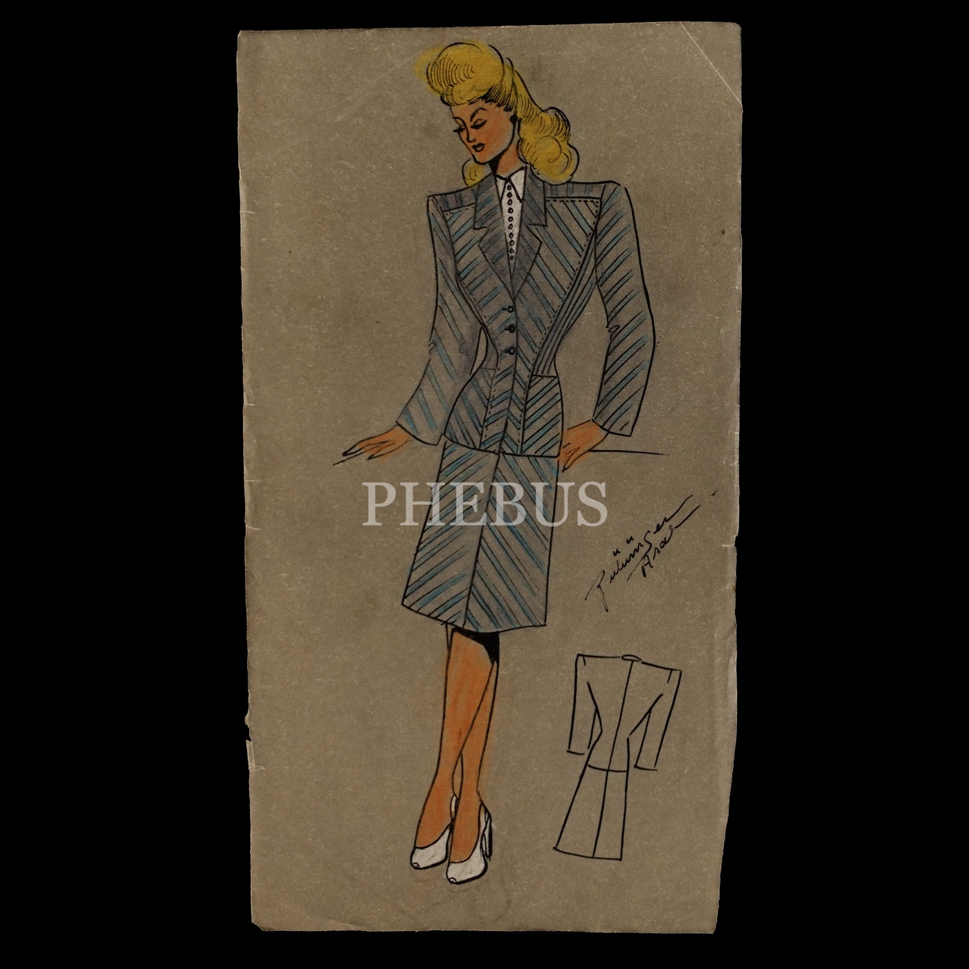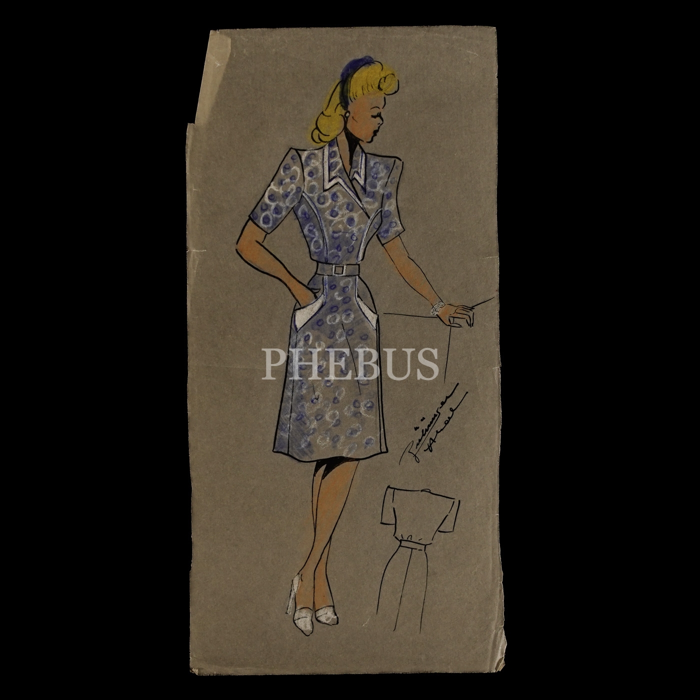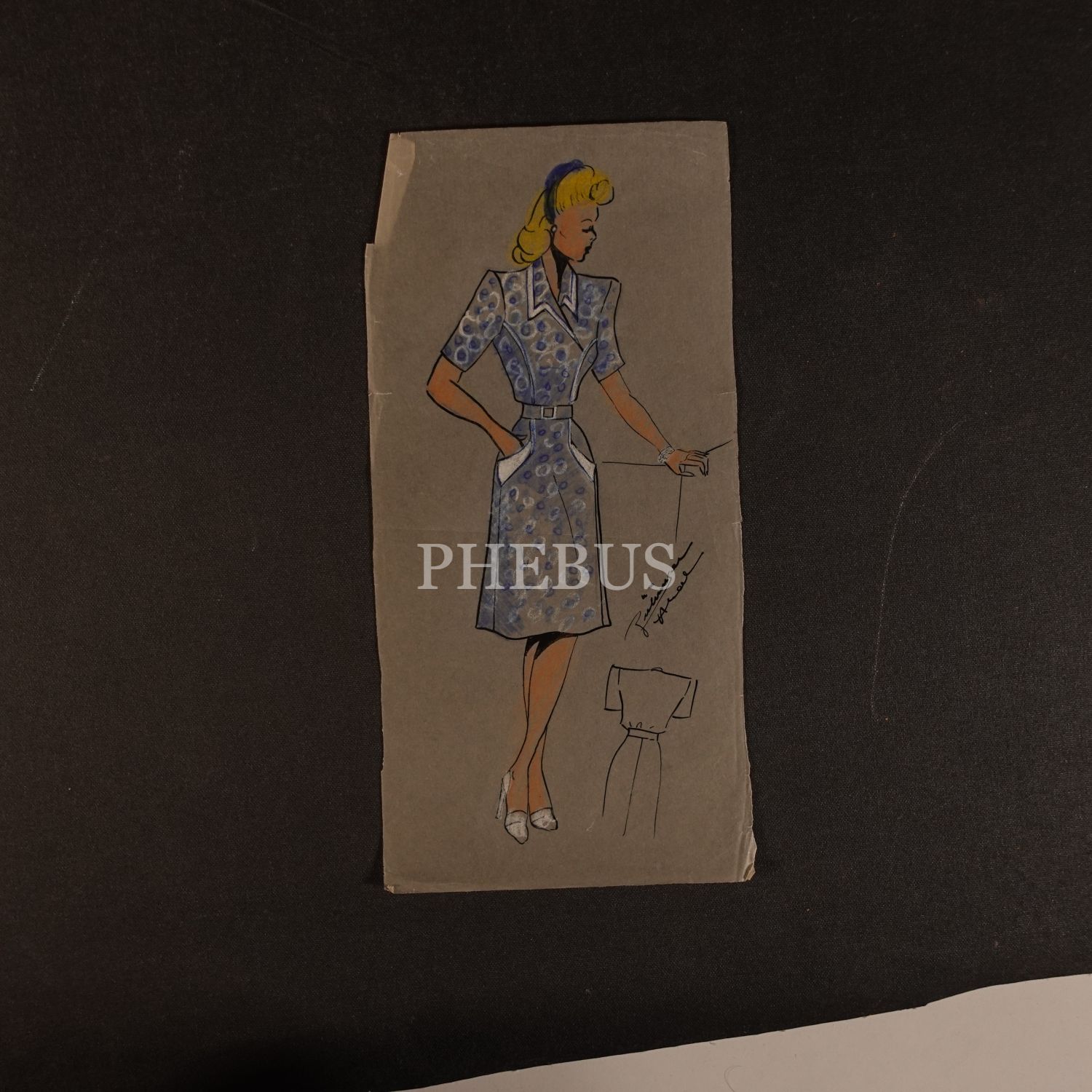 Gülümser Aral´ın EV-İŞ dergisi için çizdiği, ıslak imzalı dört adet kıyafet tasarımı, ortalama 14x28 cm...