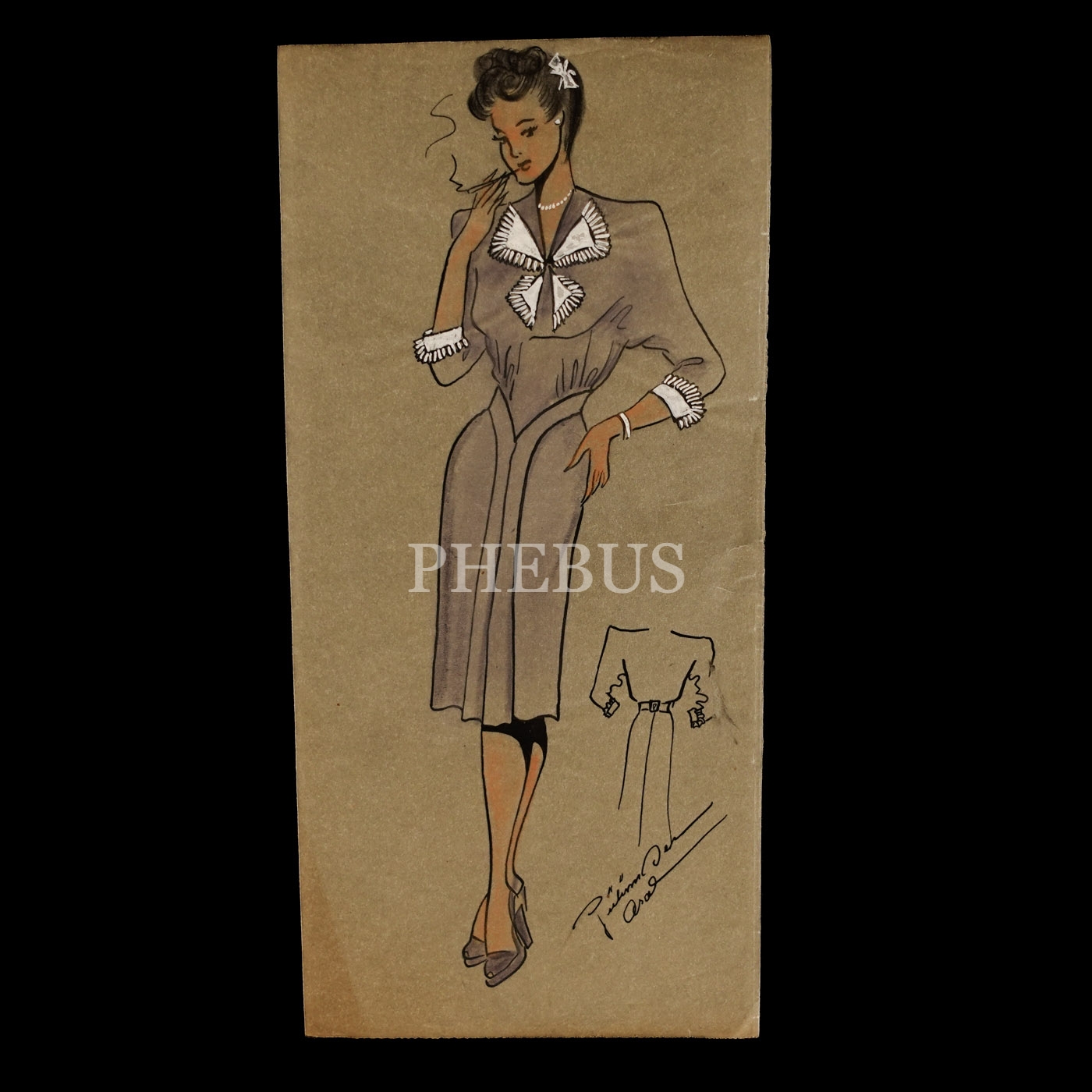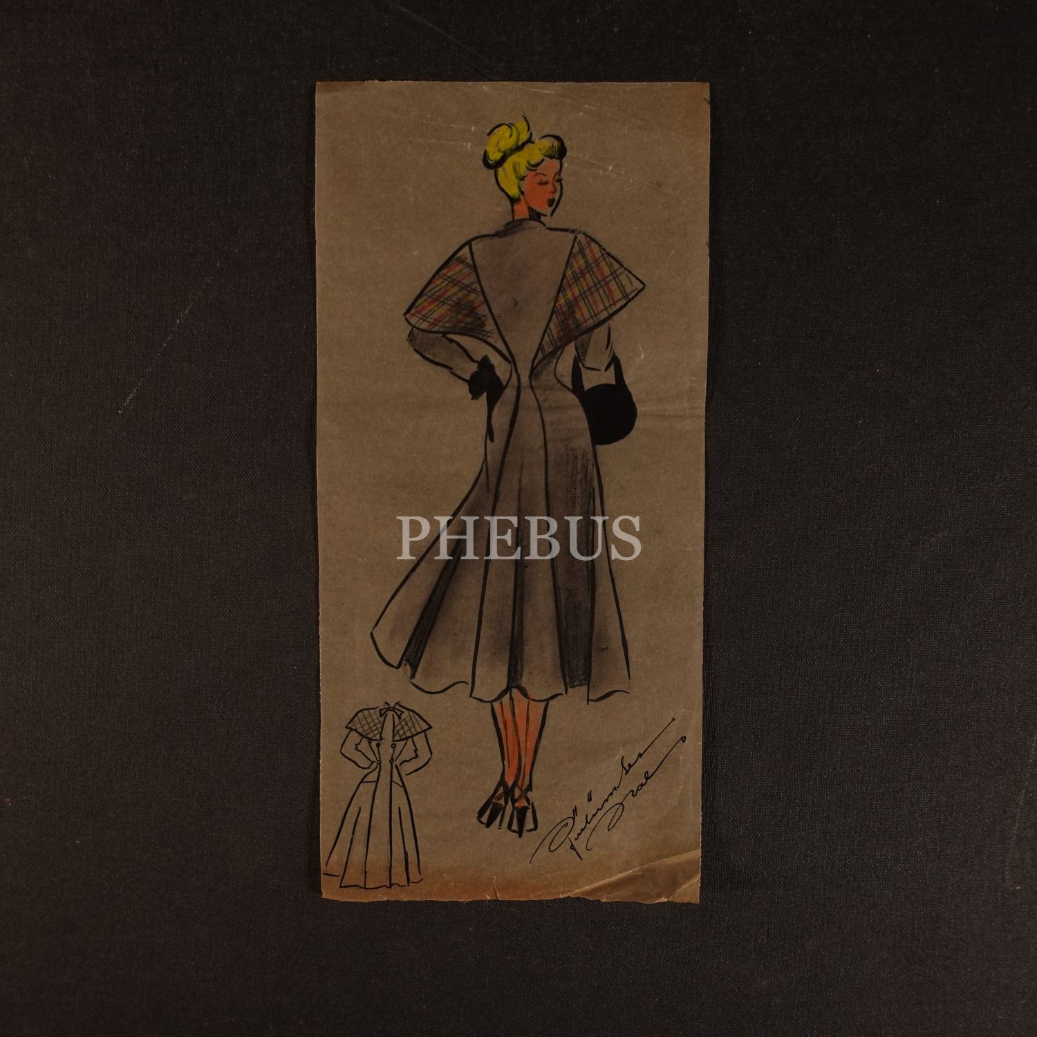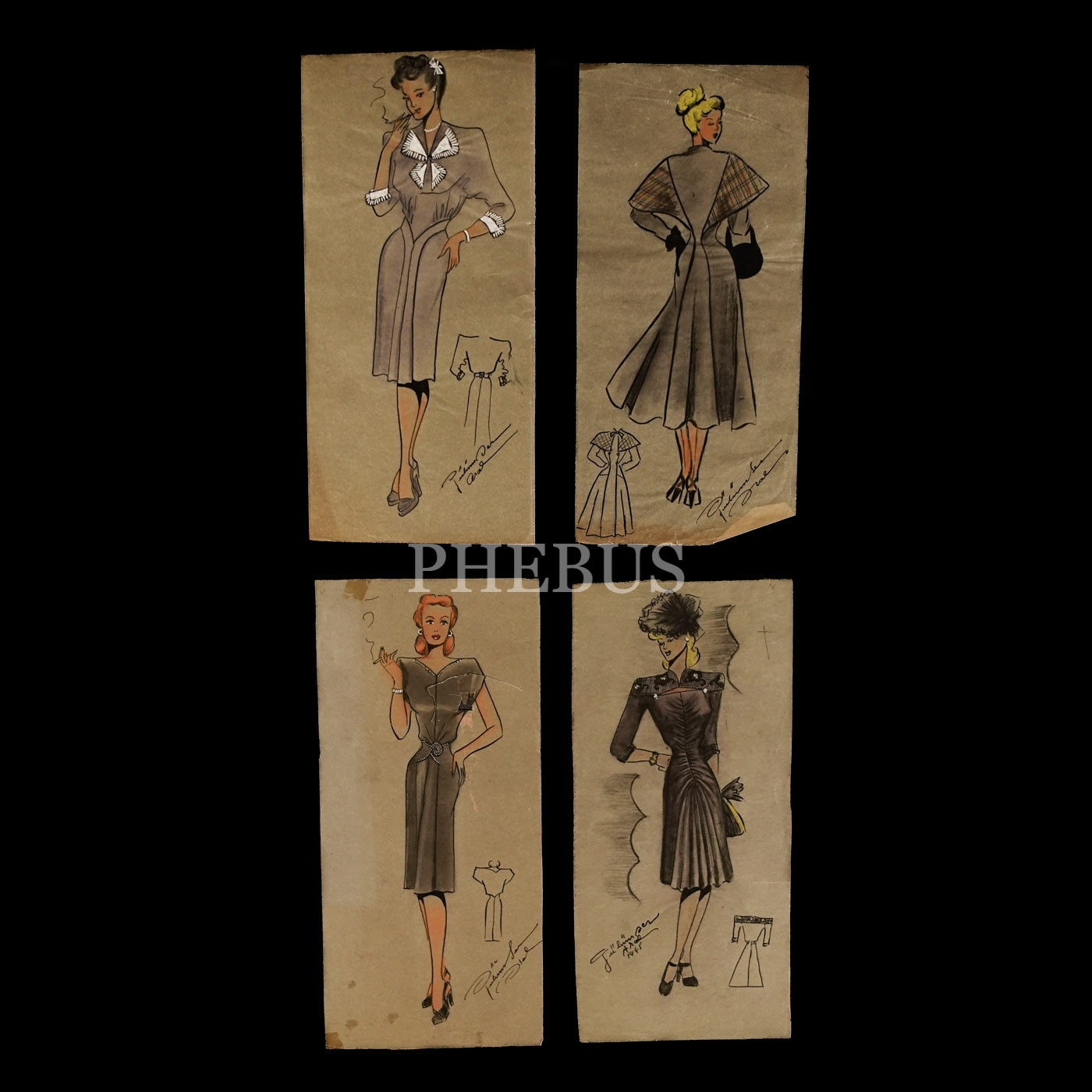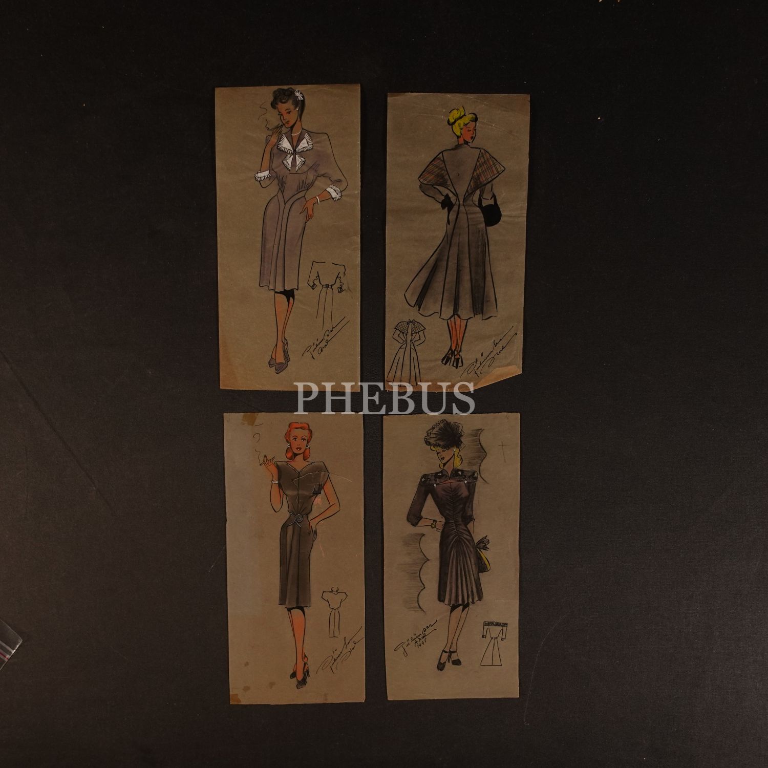 Gülümser Aral´ın EV-İŞ dergisi için çizdiği, ıslak imzalı dört adet kıyafet tasarımı, ortalama 14x28 cm...