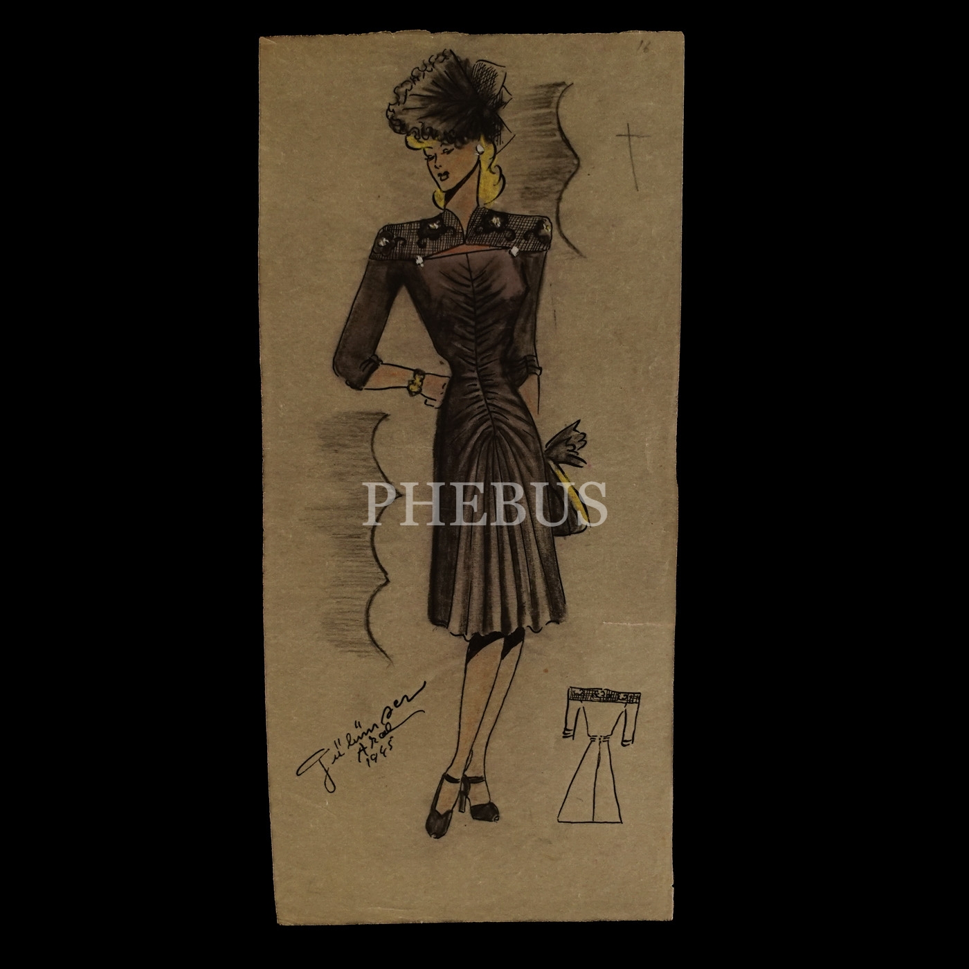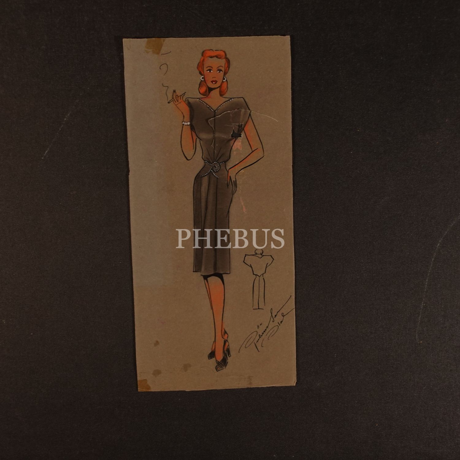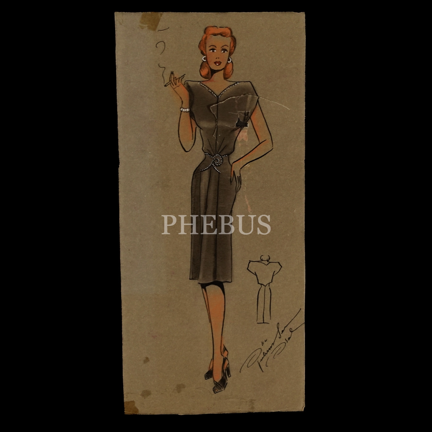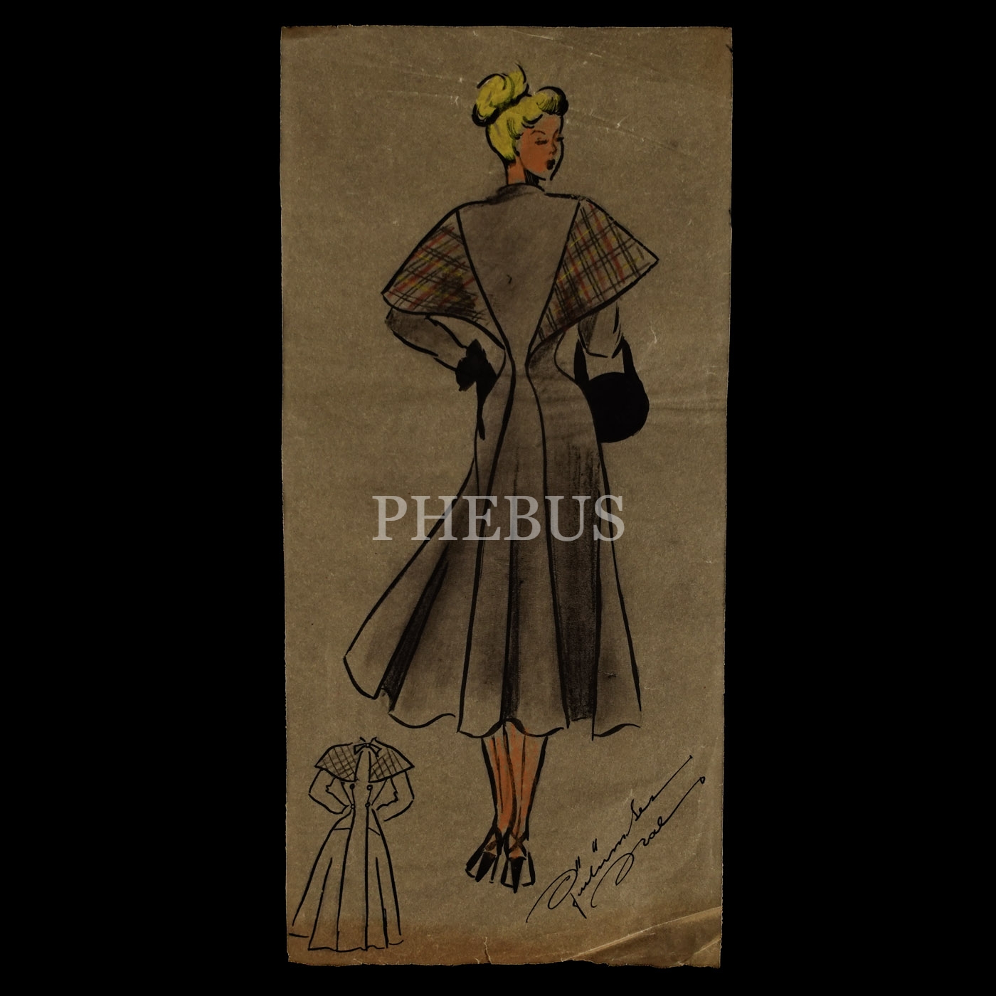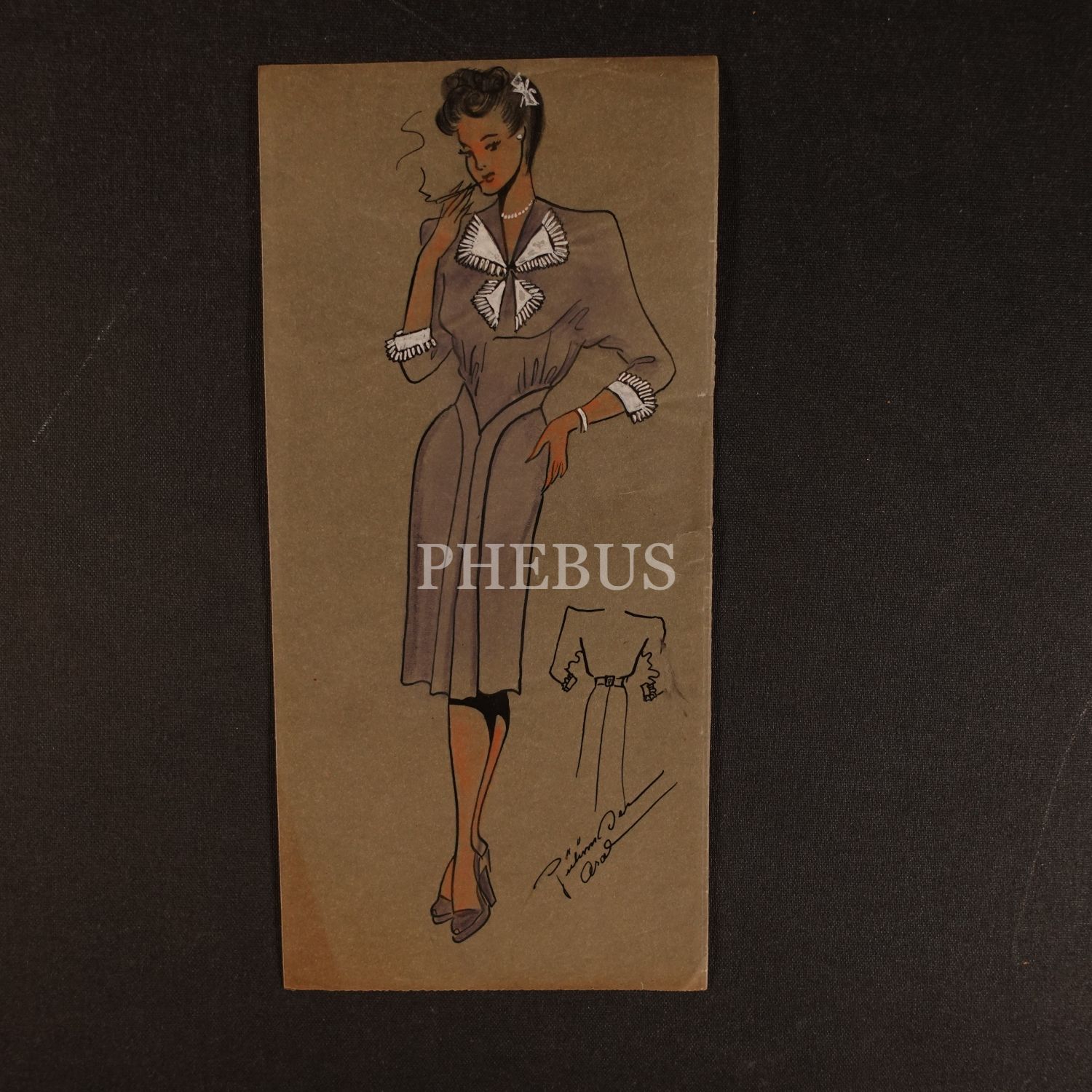 Gülümser Aral´ın EV-İŞ dergisi için çizdiği, ıslak imzalı dört adet kıyafet tasarımı, ortalama 14x28 cm...