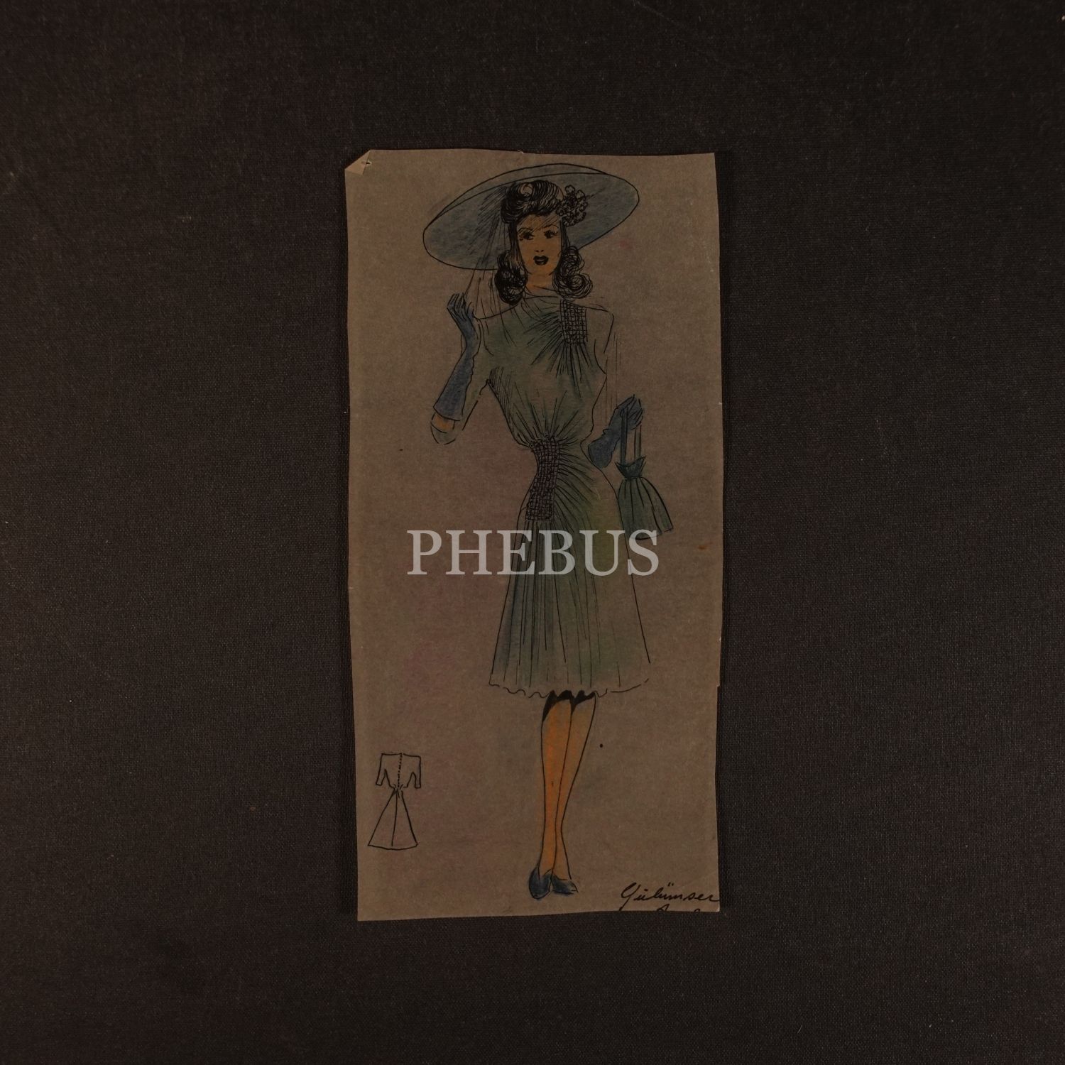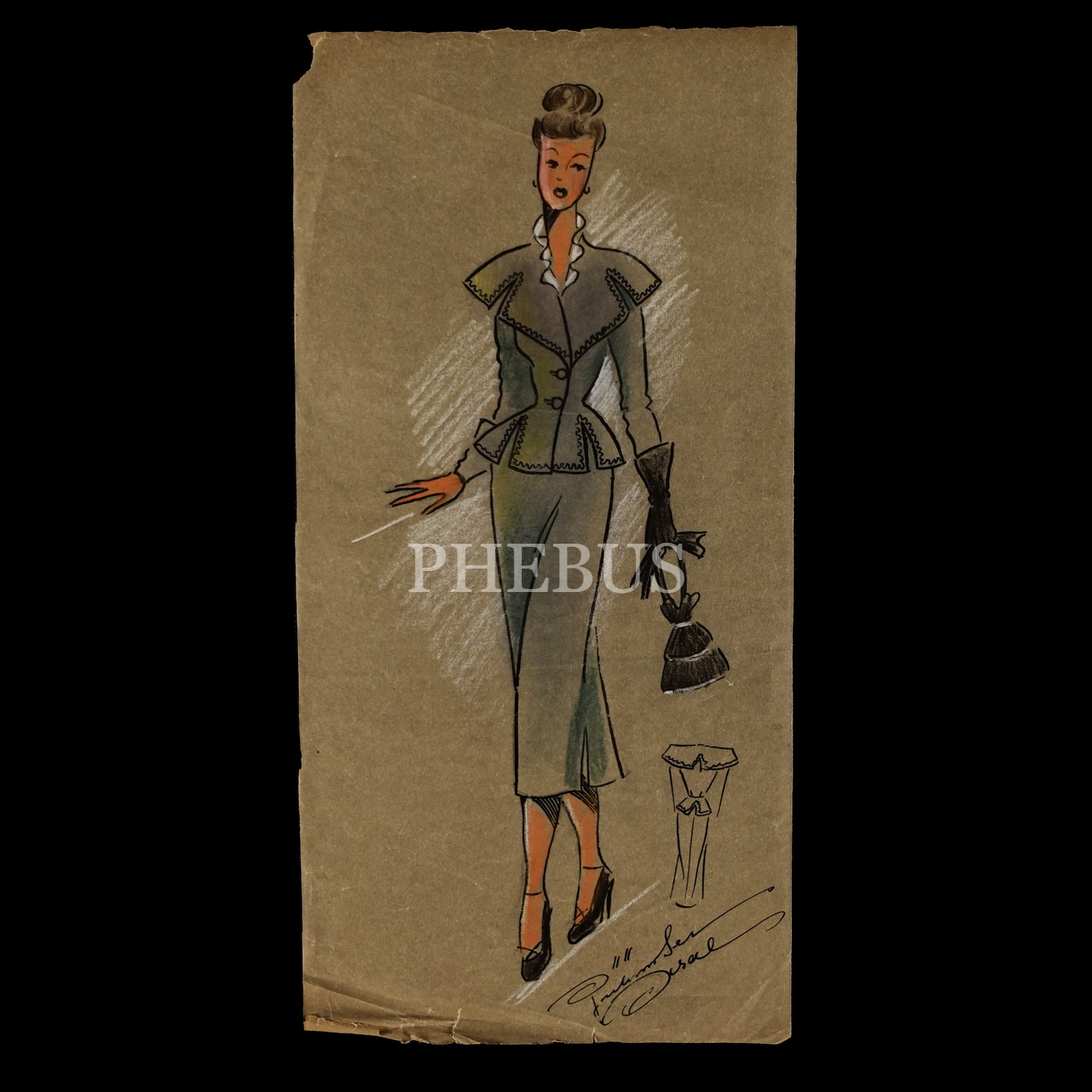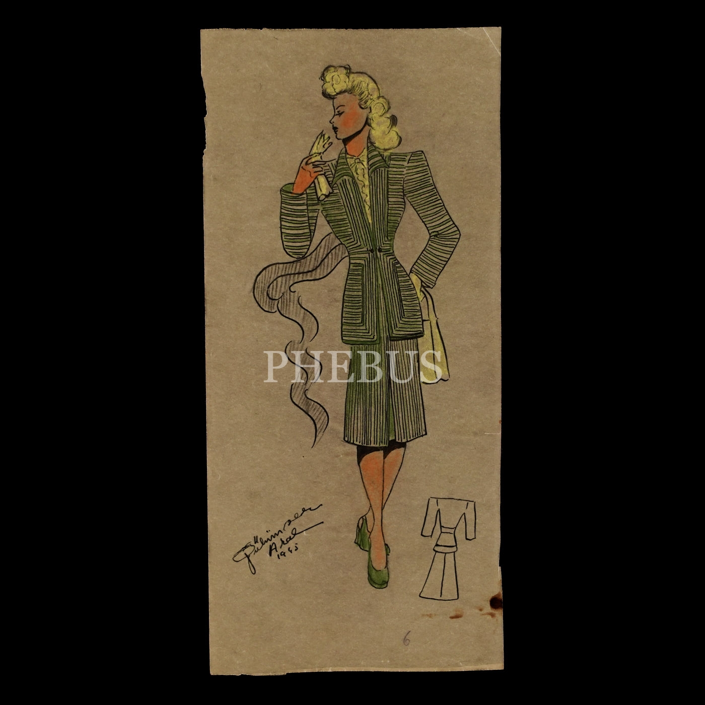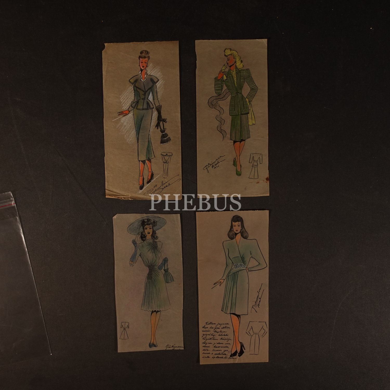 Gülümser Aral´ın EV-İŞ dergisi için çizdiği, ıslak imzalı dört adet kıyafet tasarımı, ortalama 14x28 cm...