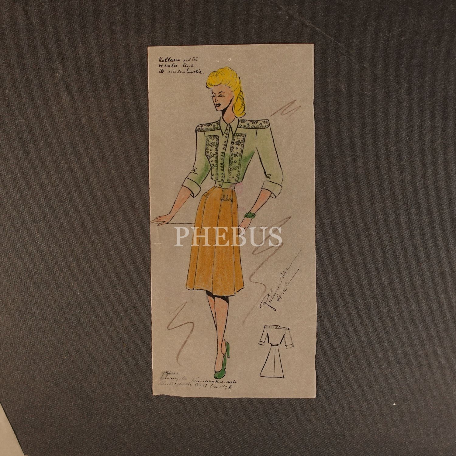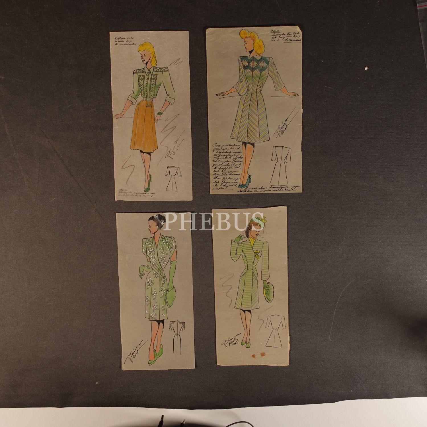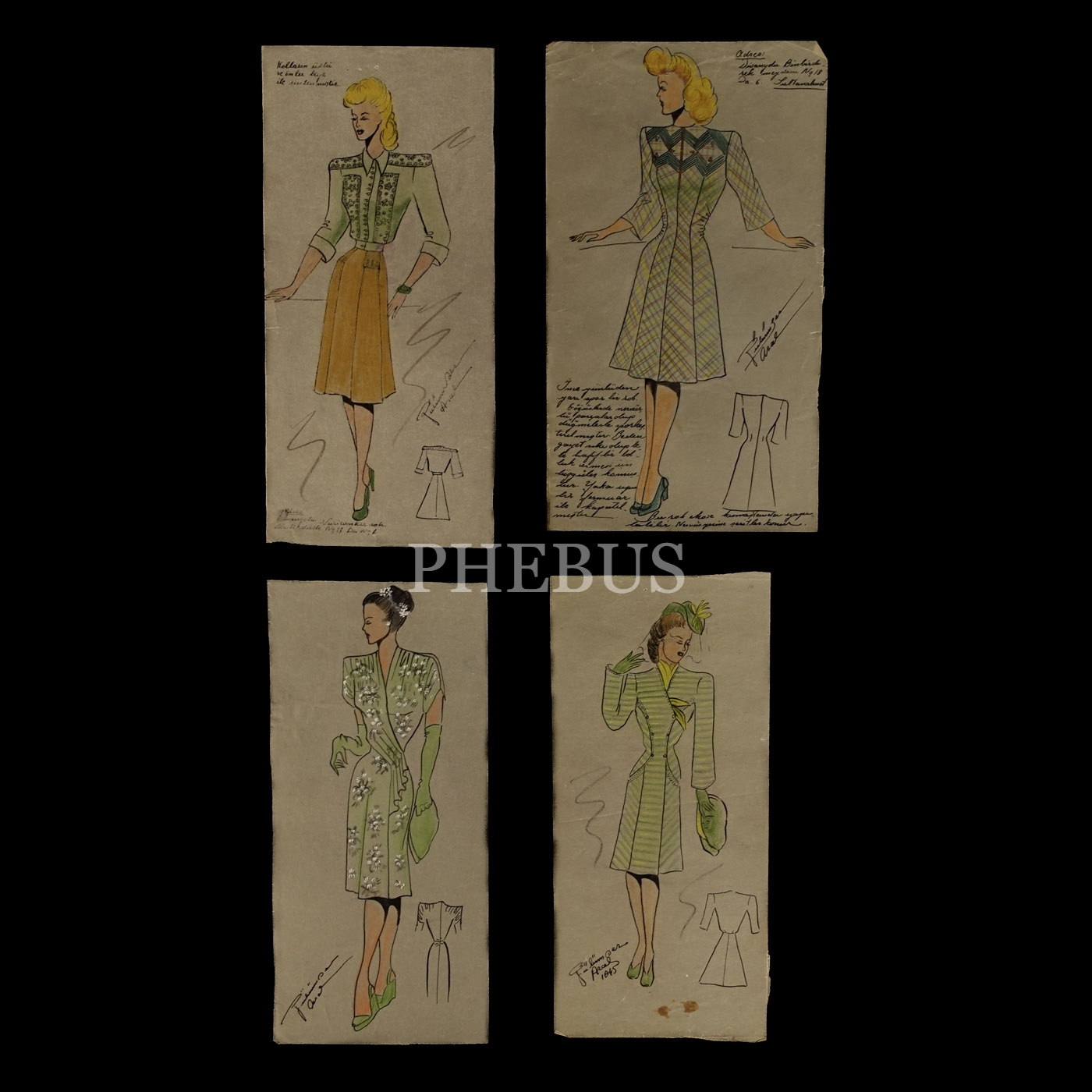 Gülümser Aral´ın EV-İŞ dergisi için çizdiği, ıslak imzalı dört adet kıyafet tasarımı, ortalama 14x28 cm...
