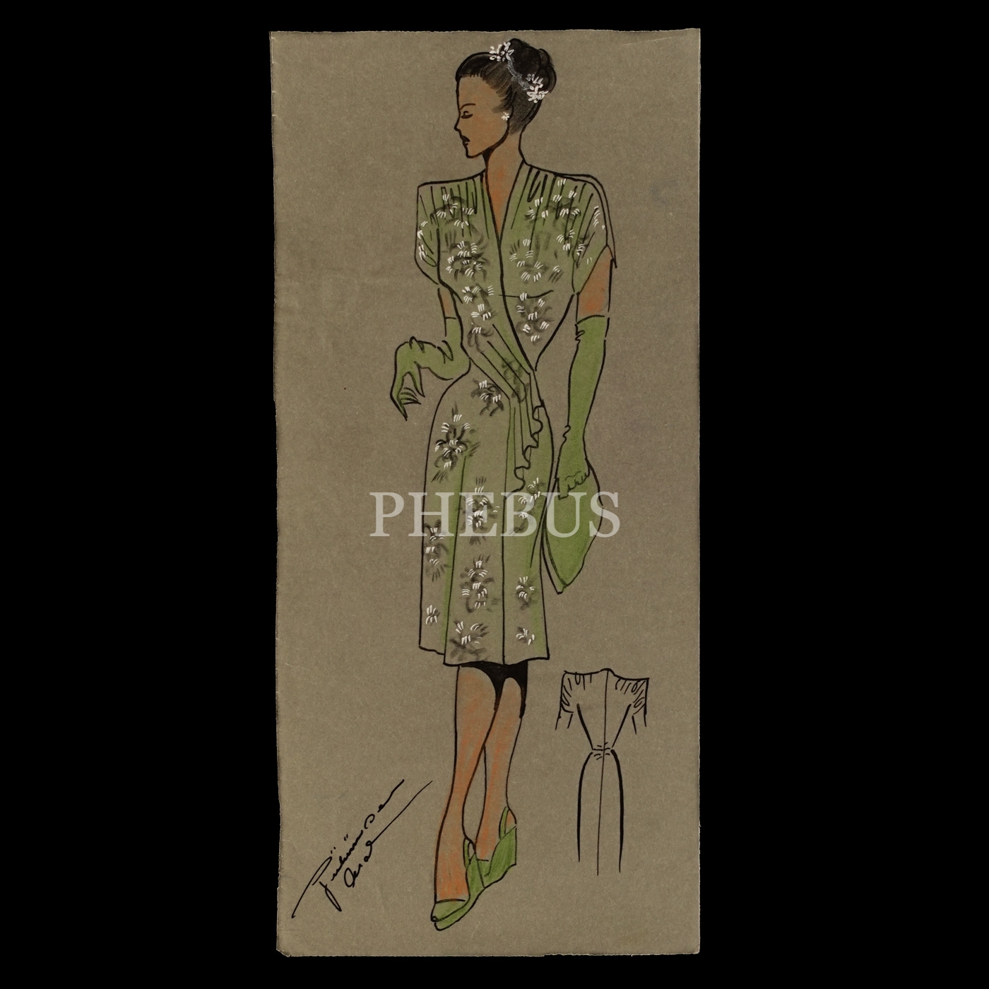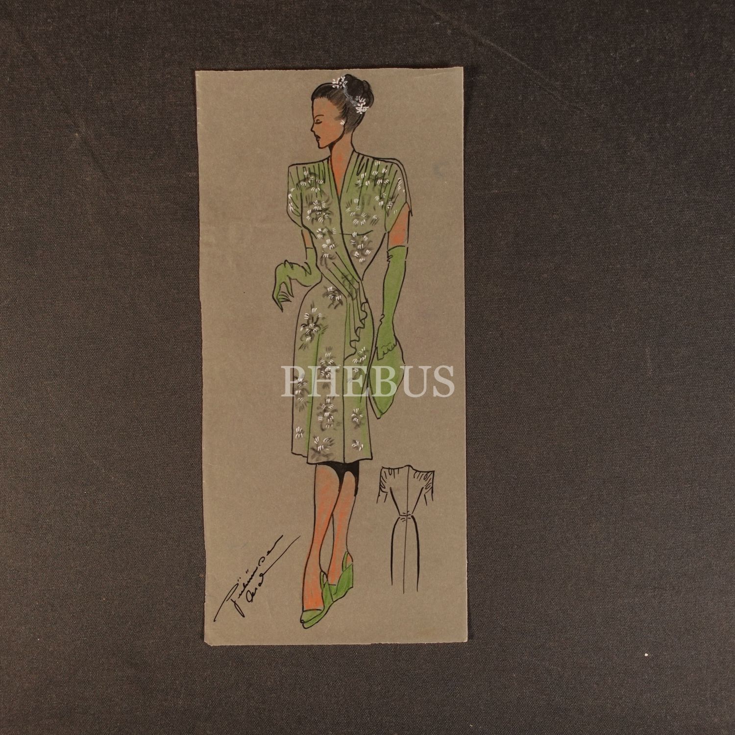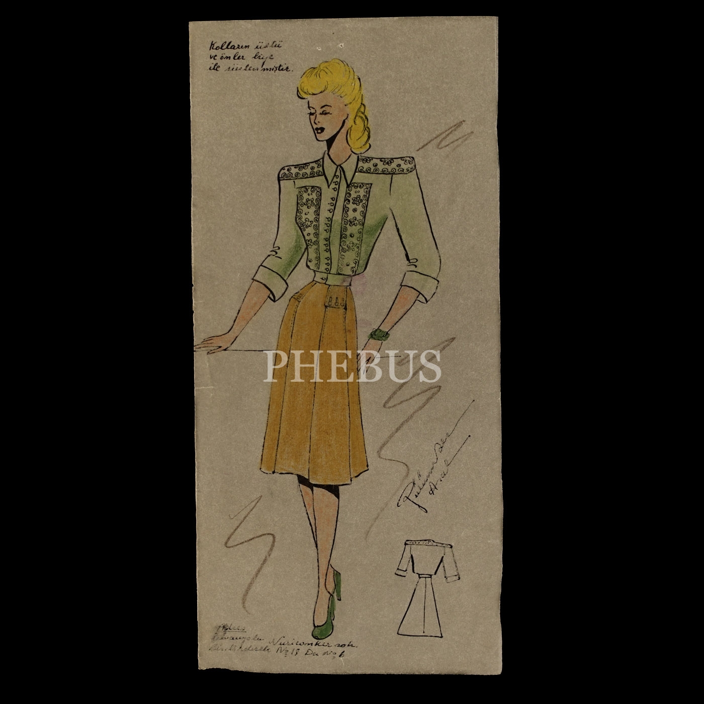 Gülümser Aral´ın EV-İŞ dergisi için çizdiği, ıslak imzalı dört adet kıyafet tasarımı, ortalama 14x28 cm...