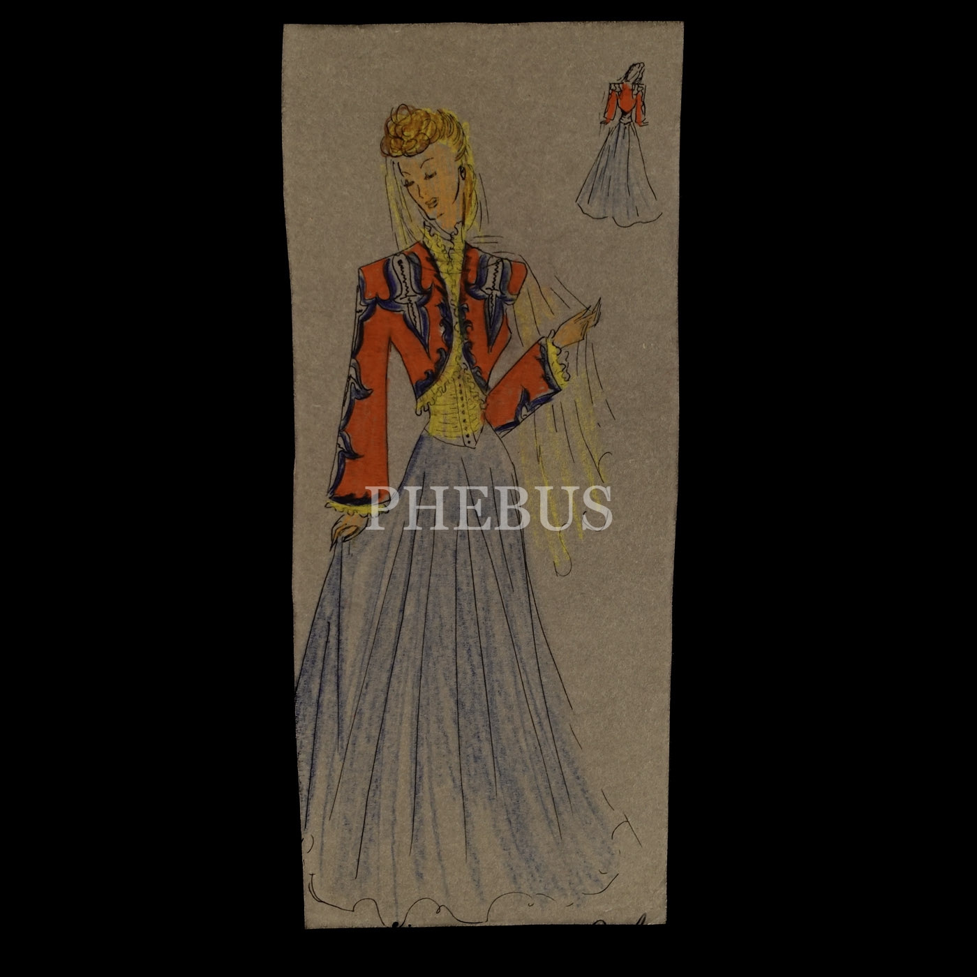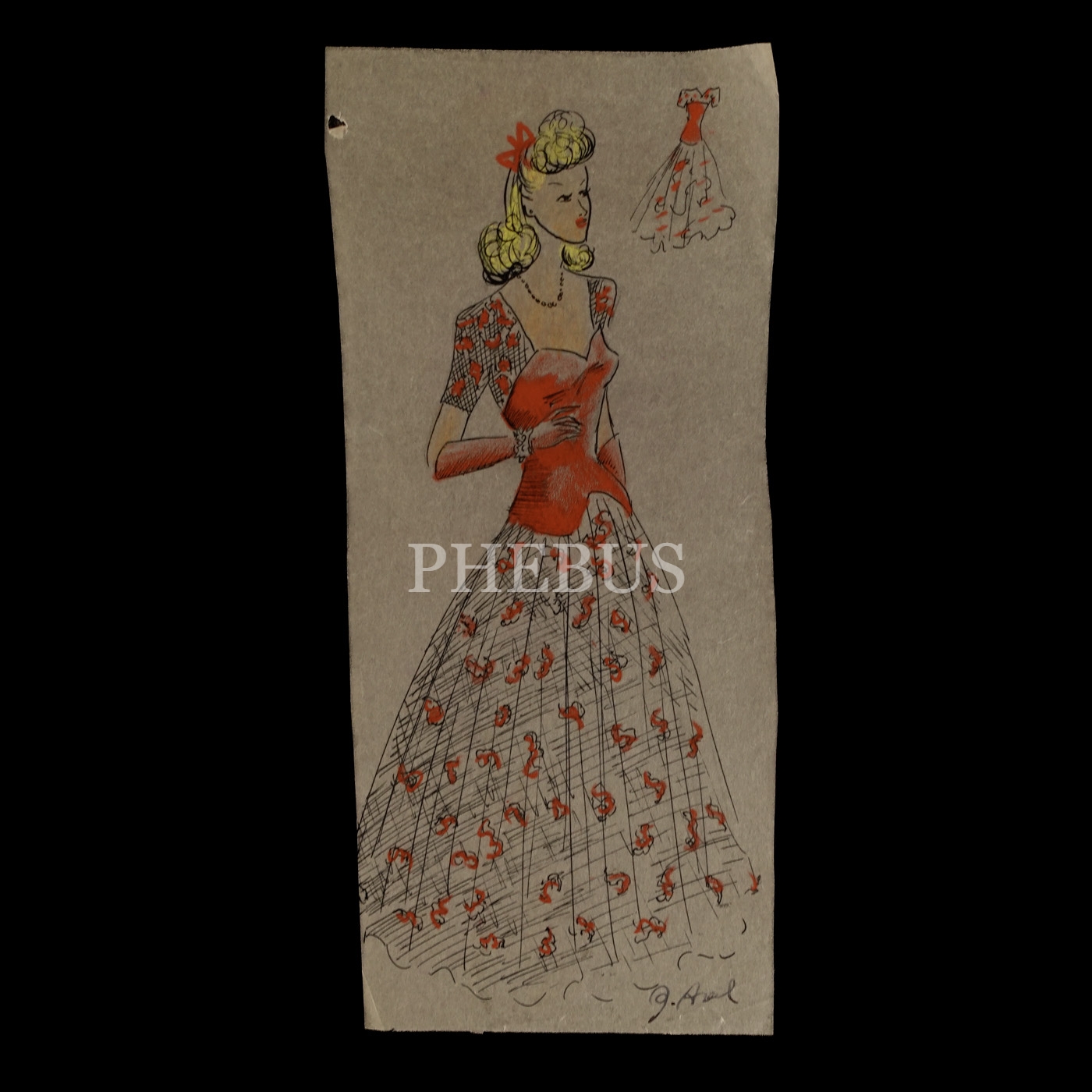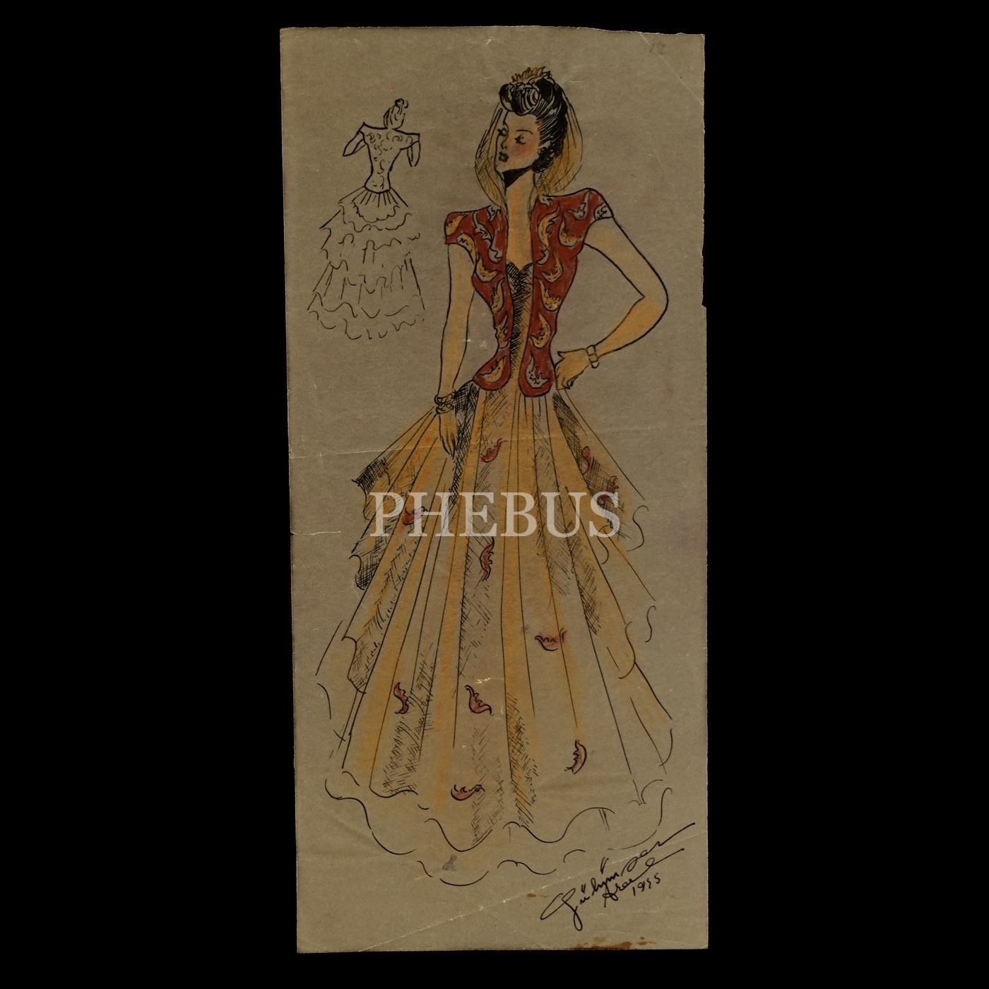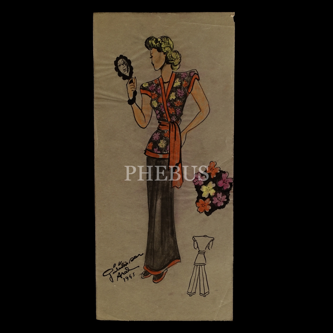 Gülümser Aral´ın EV-İŞ dergisi için çizdiği, üçü ıslak imzalı dört adet kıyafet tasarımı, ortalama 14x28 cm...
