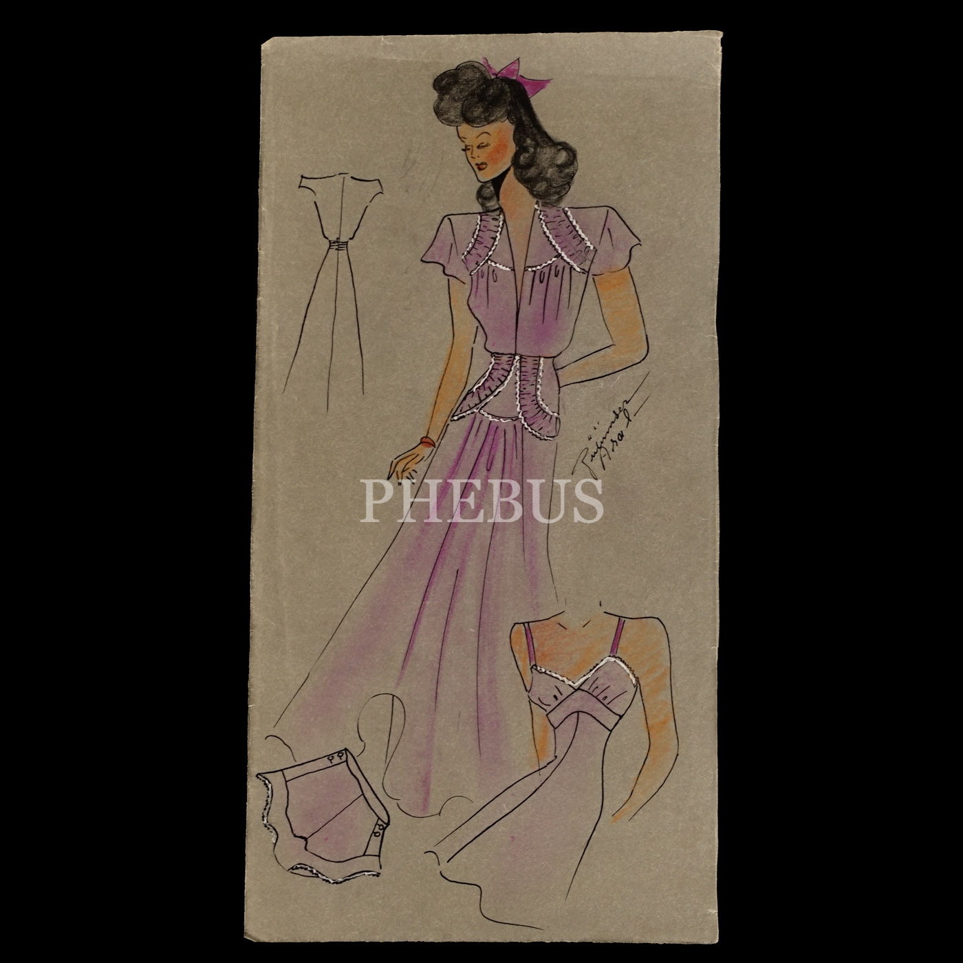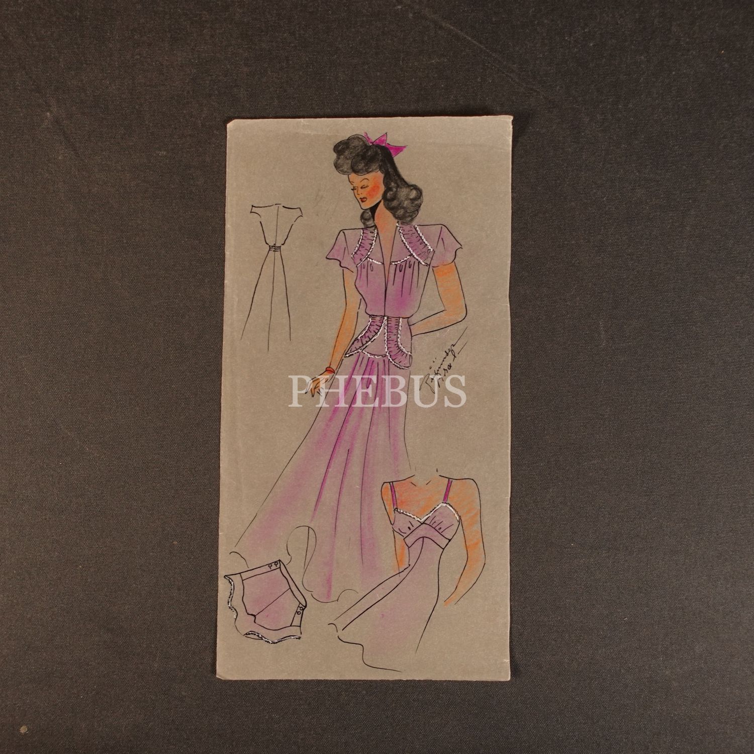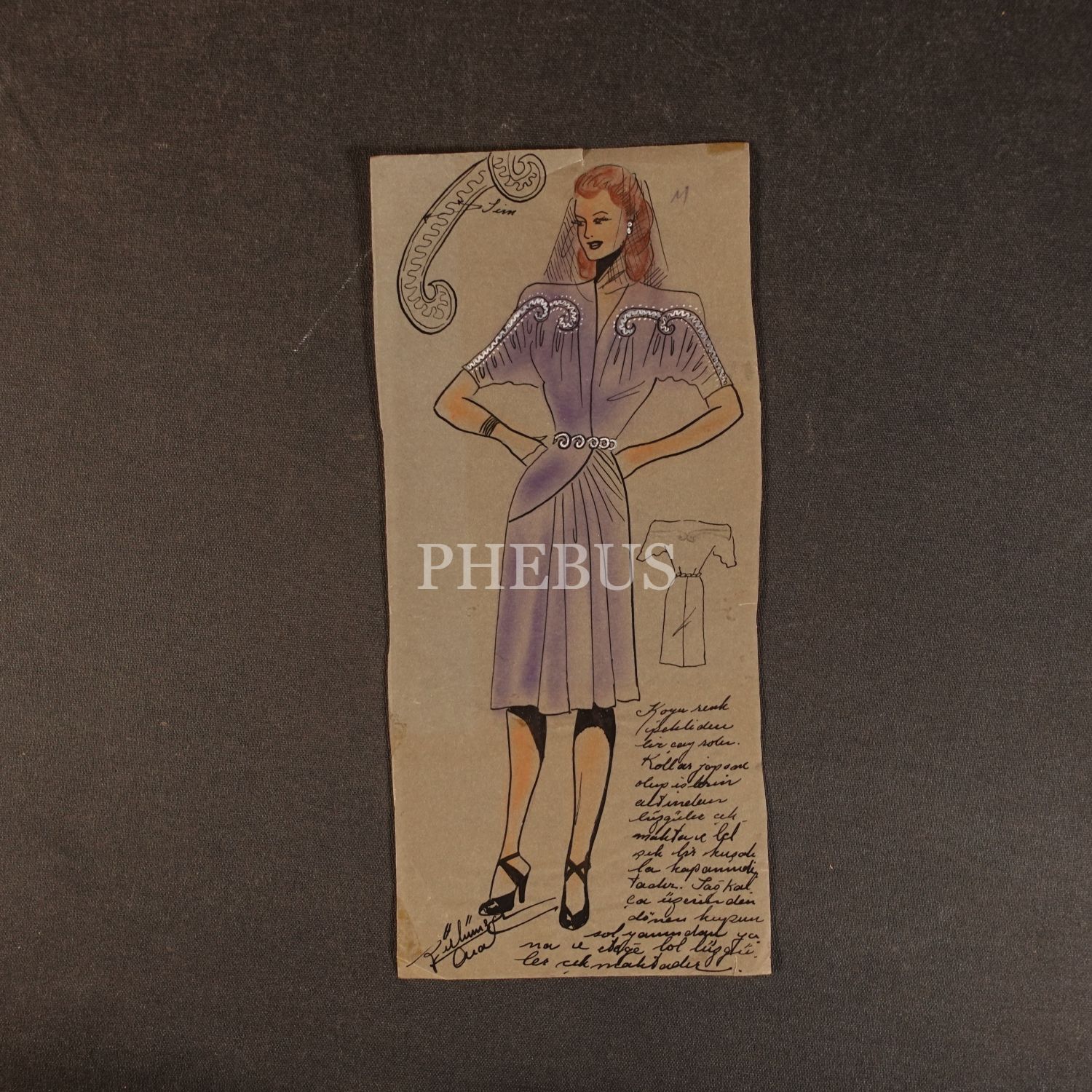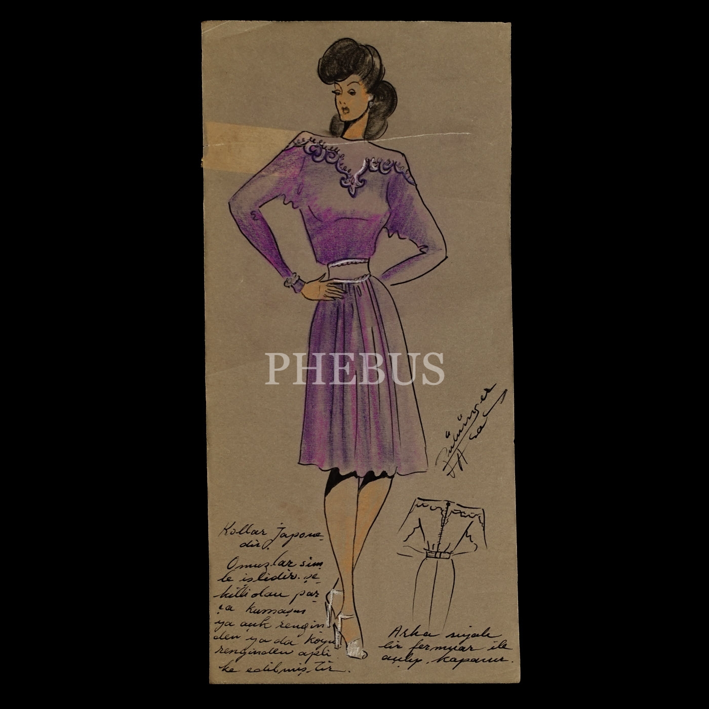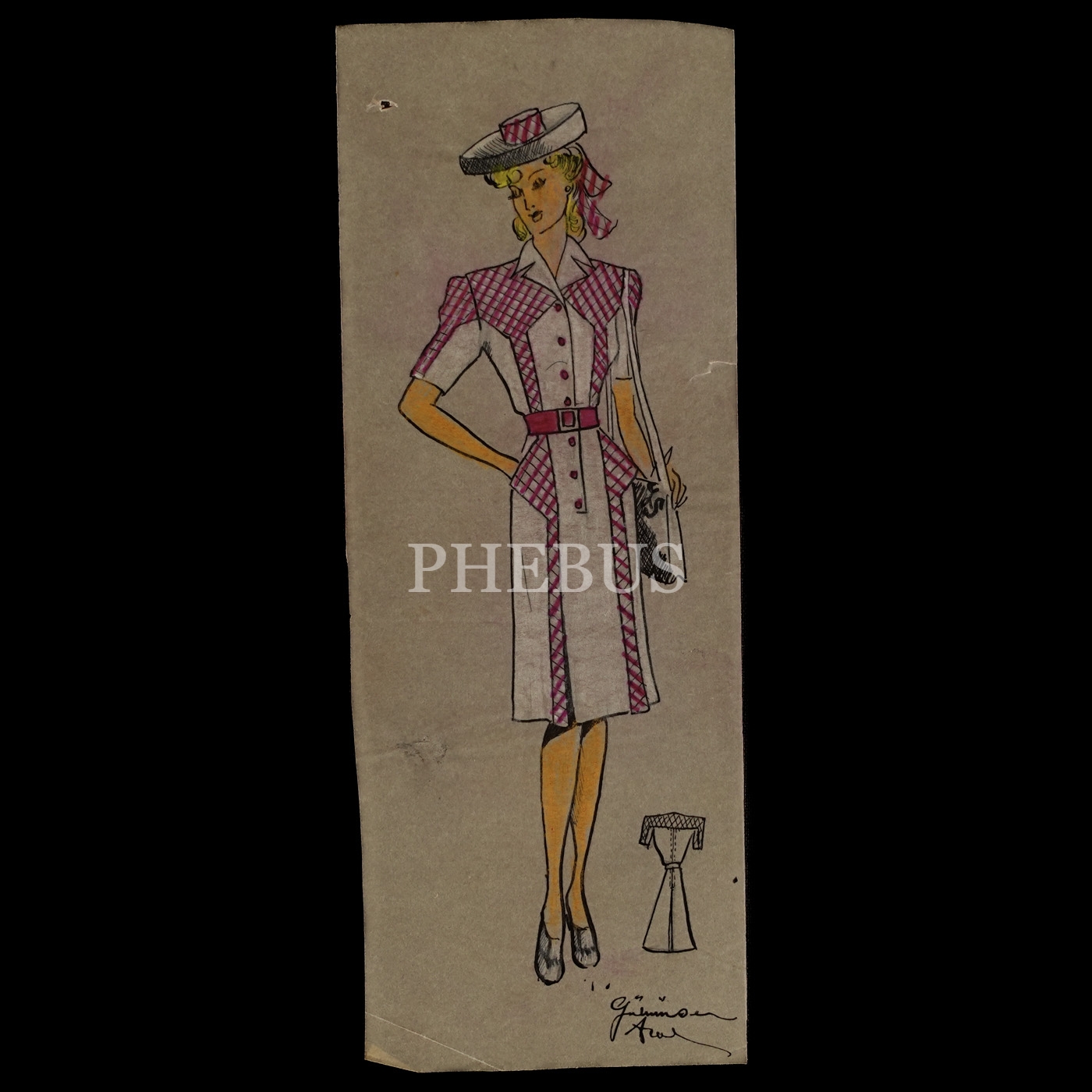 Gülümser Aral´ın EV-İŞ dergisi için çizdiği, ıslak imzalı dört adet kıyafet tasarımı, ortalama 14x28 cm...