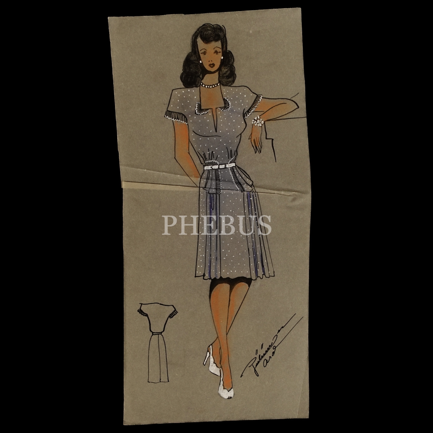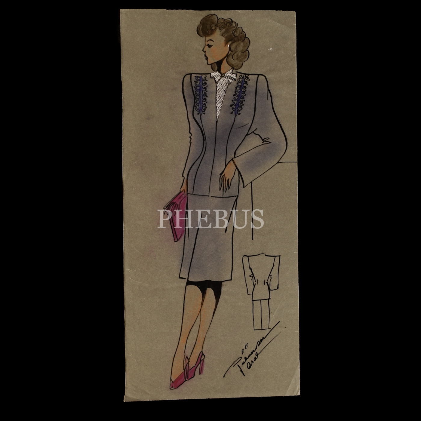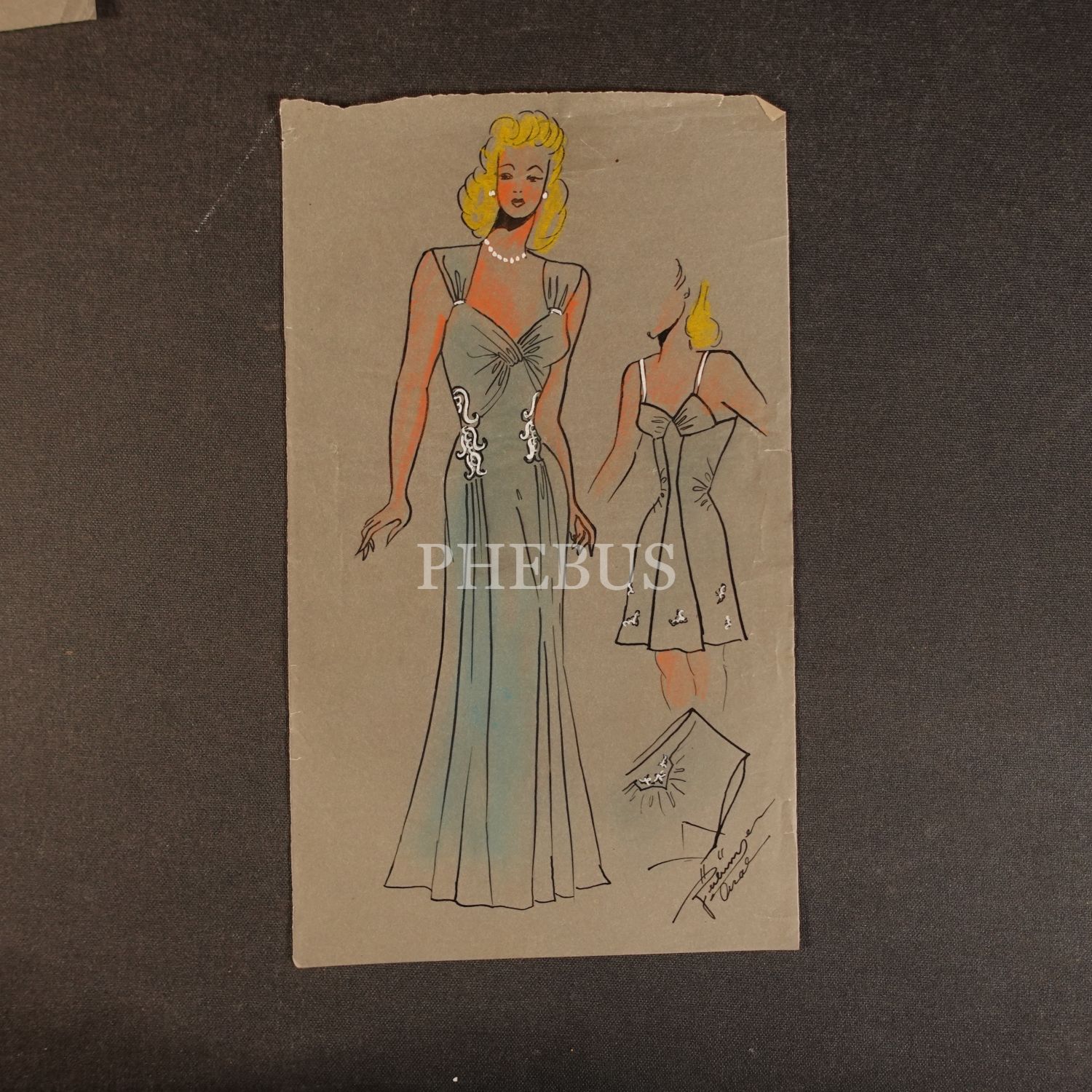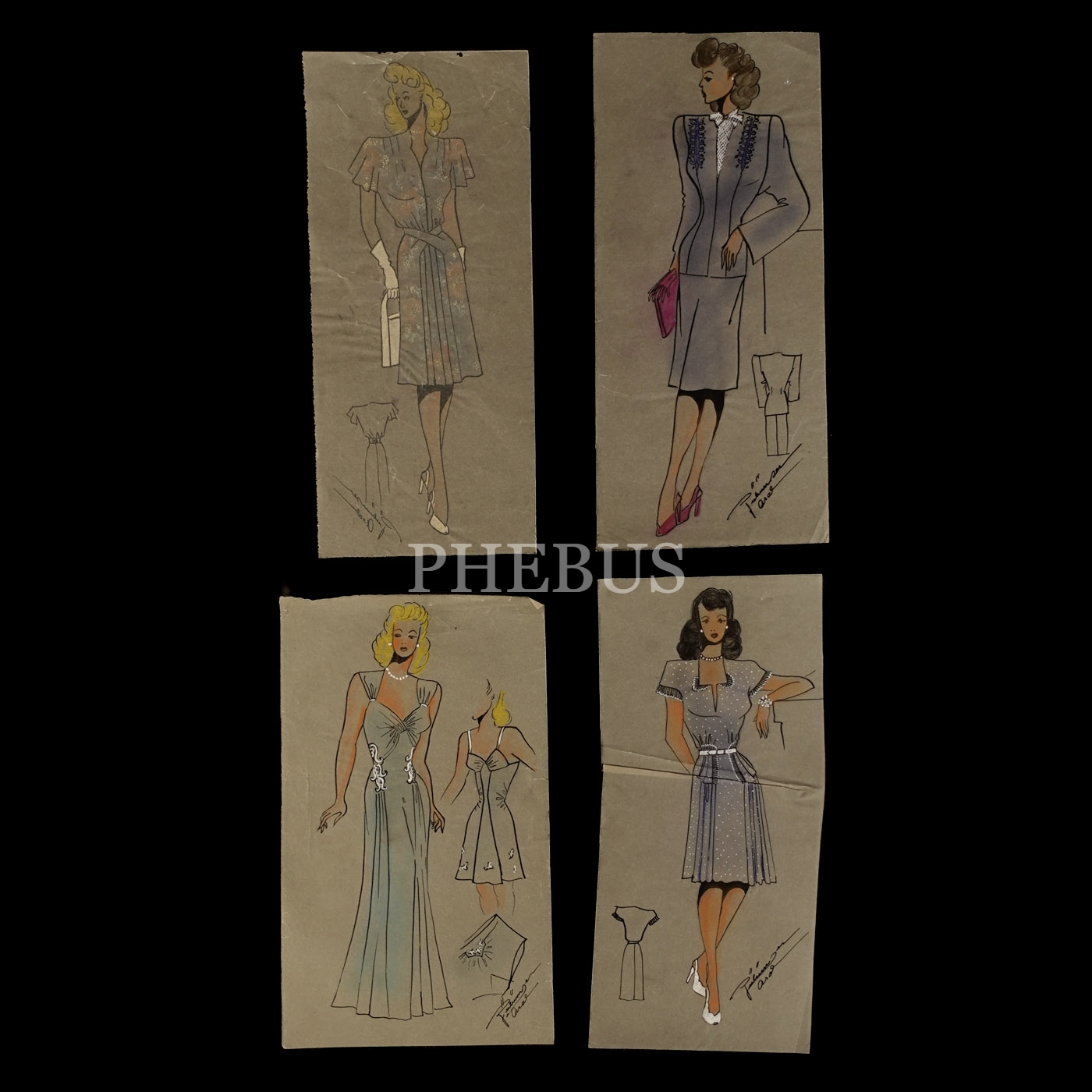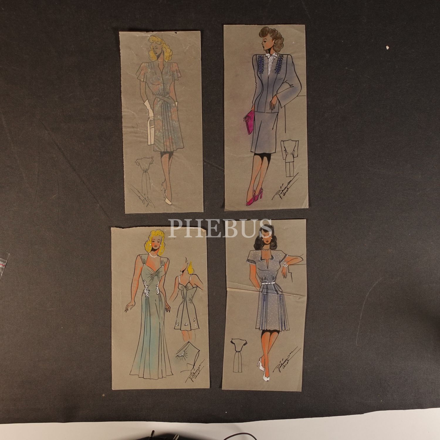 Gülümser Aral´ın EV-İŞ dergisi için çizdiği, ıslak imzalı dört adet kıyafet tasarımı, ortalama 14x28 cm...