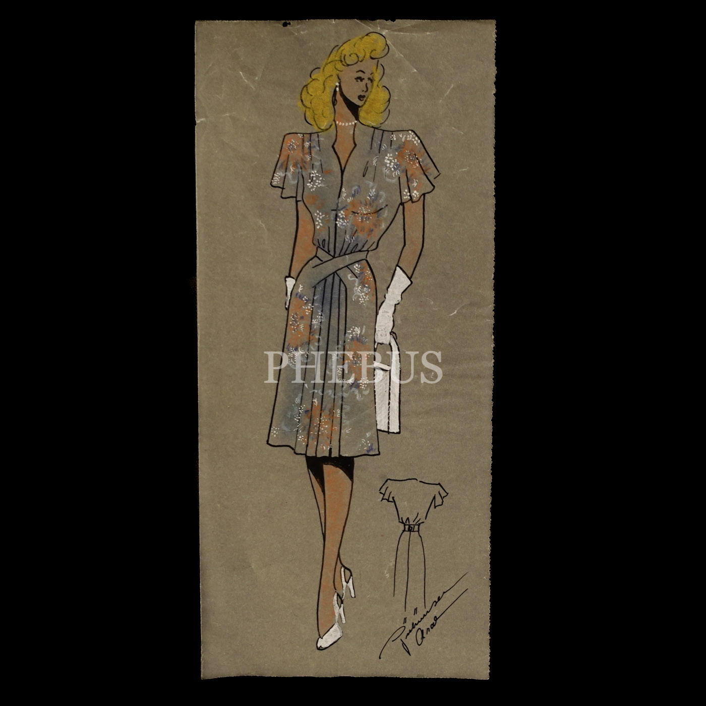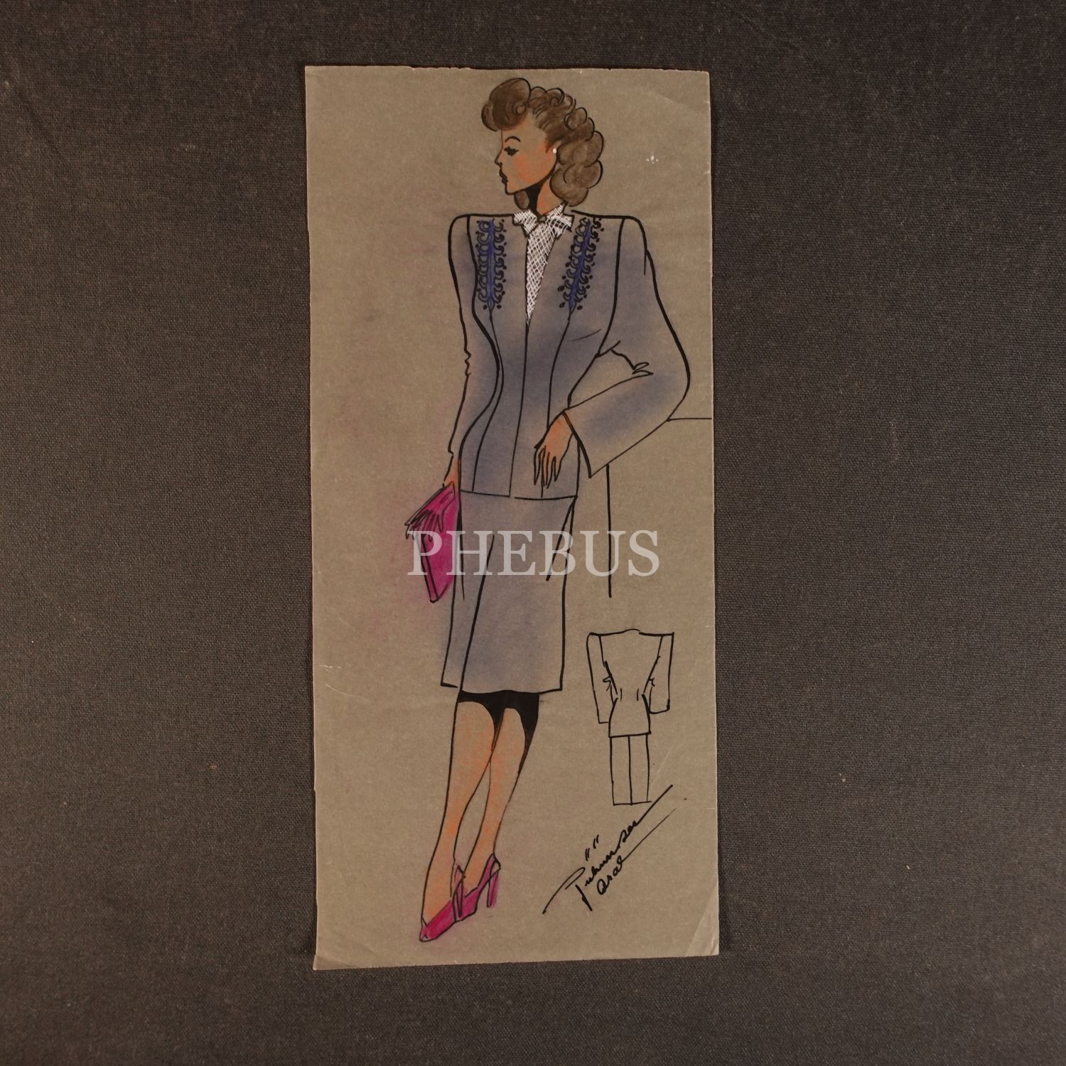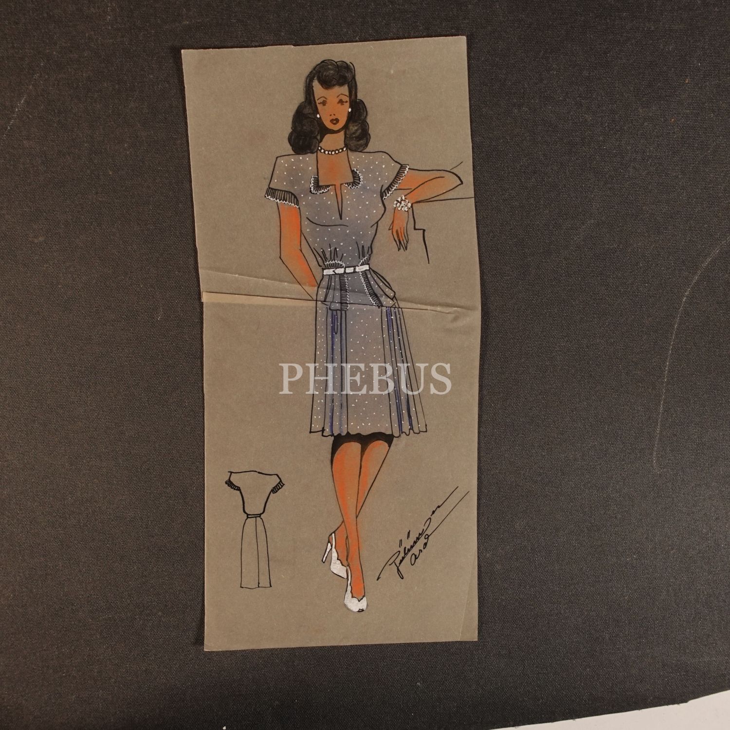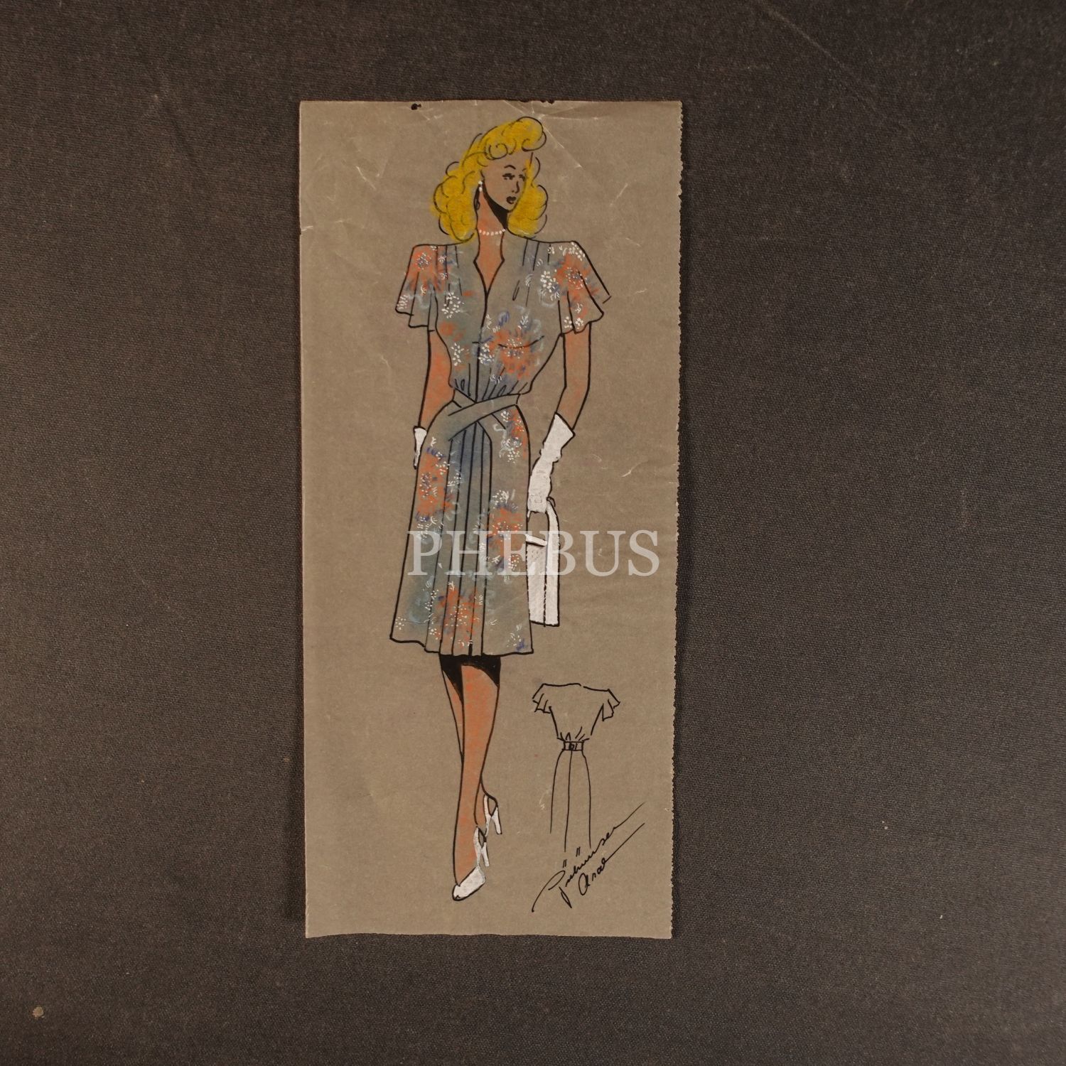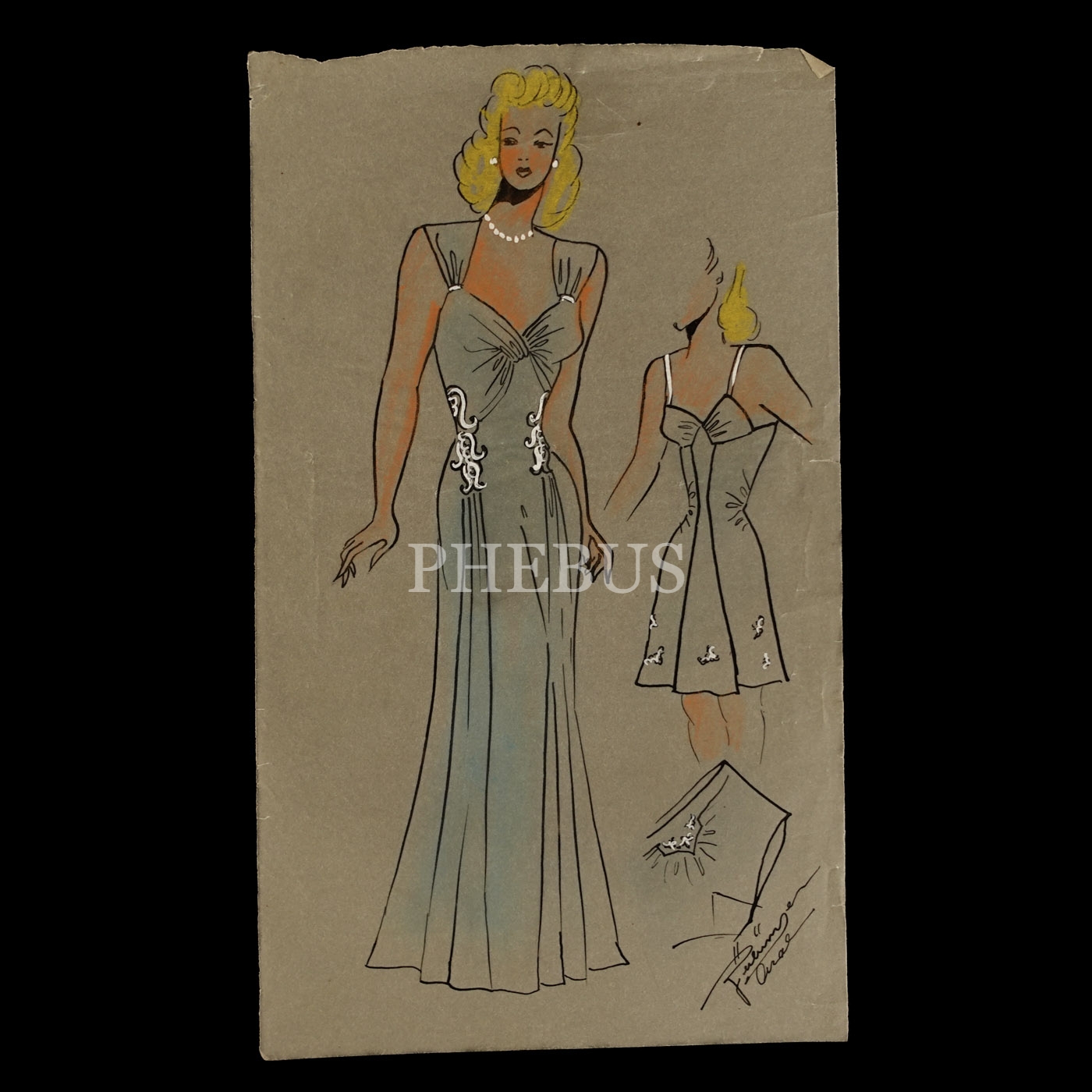 Gülümser Aral´ın EV-İŞ dergisi için çizdiği, ıslak imzalı dört adet kıyafet tasarımı, ortalama 14x28 cm...
