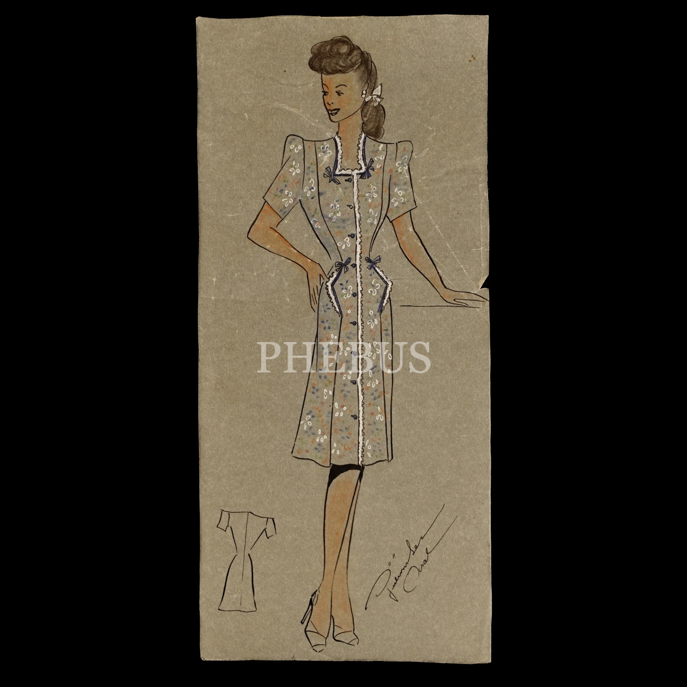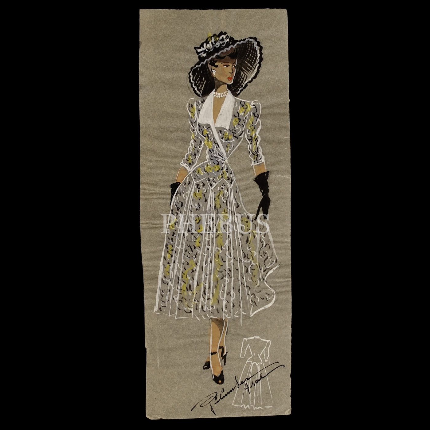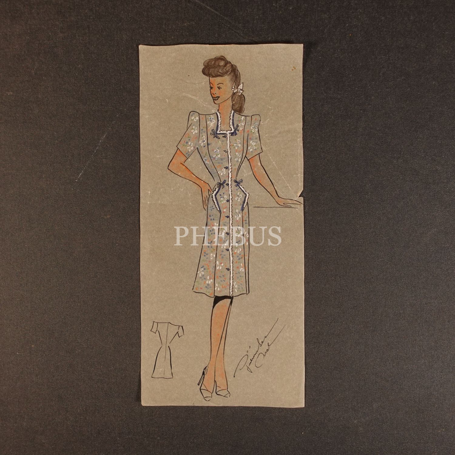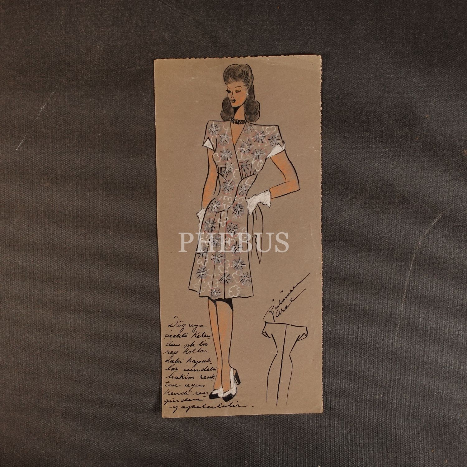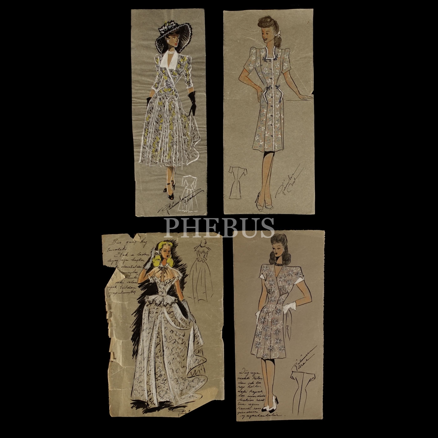 Gülümser Aral´ın EV-İŞ dergisi için çizdiği, ıslak imzalı dört adet kıyafet tasarımı, ortalama 14x28 cm...