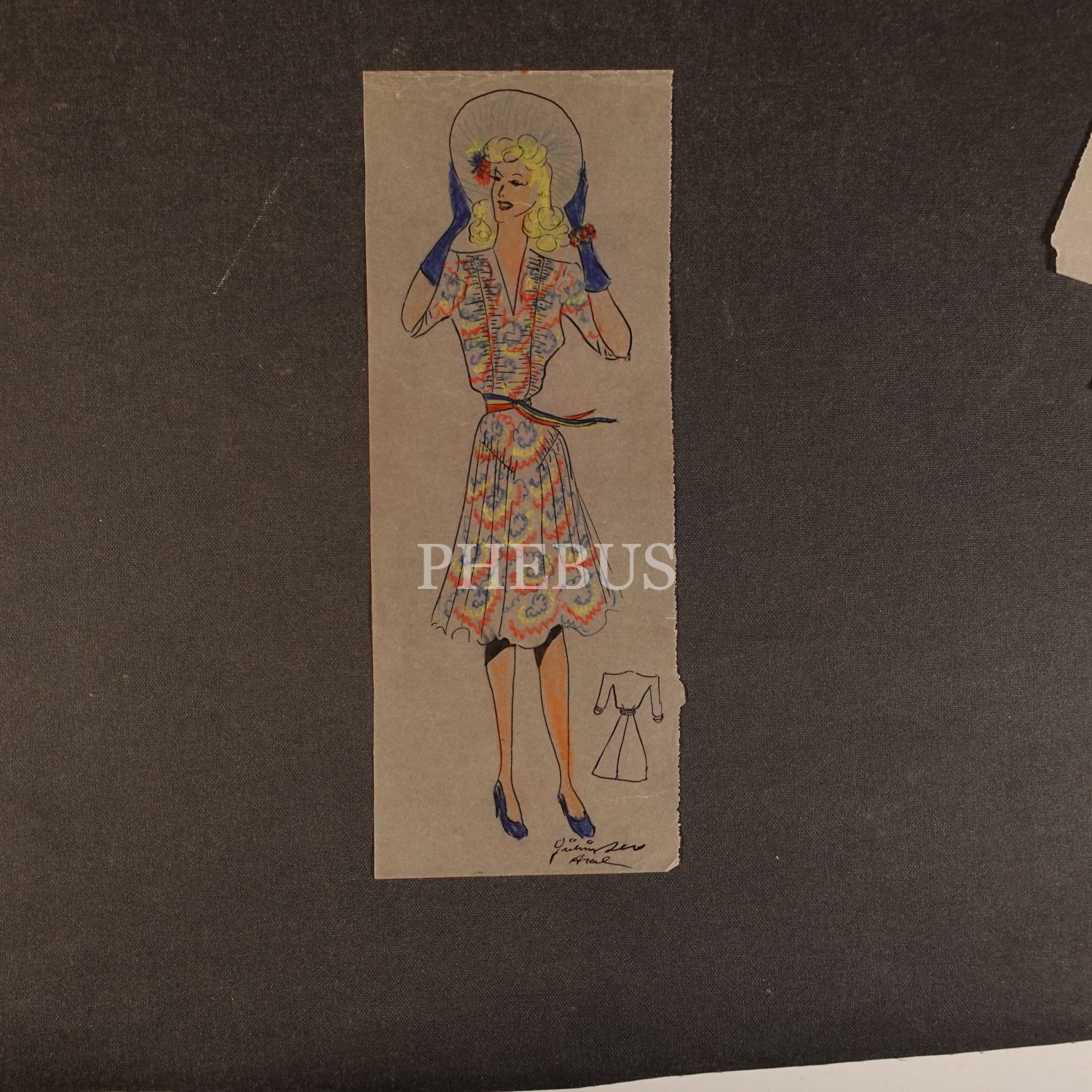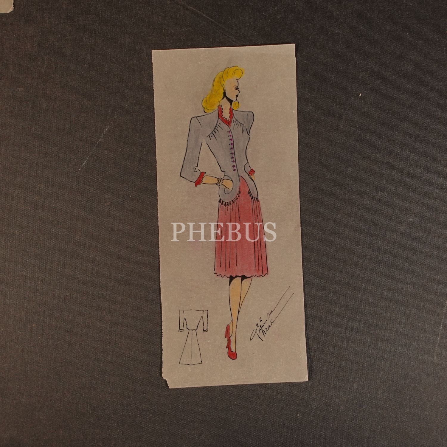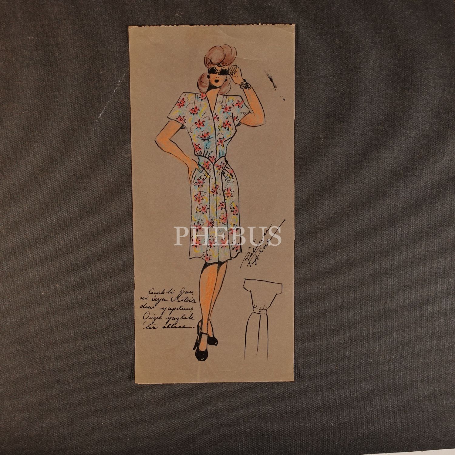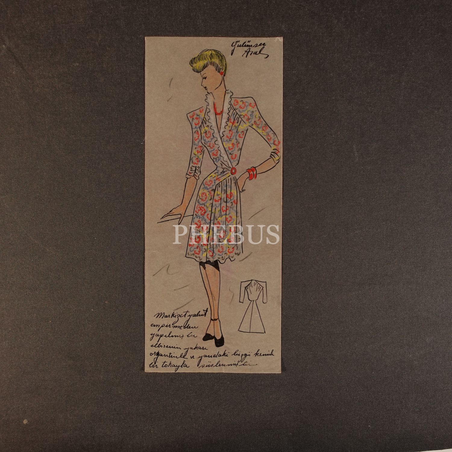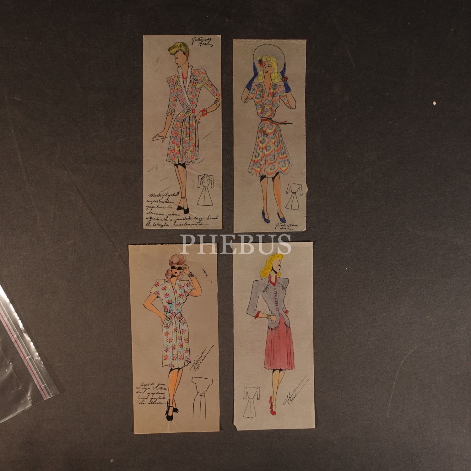 Gülümser Aral´ın EV-İŞ dergisi için çizdiği, ıslak imzalı dört adet kıyafet tasarımı, ortalama 14x28 cm...