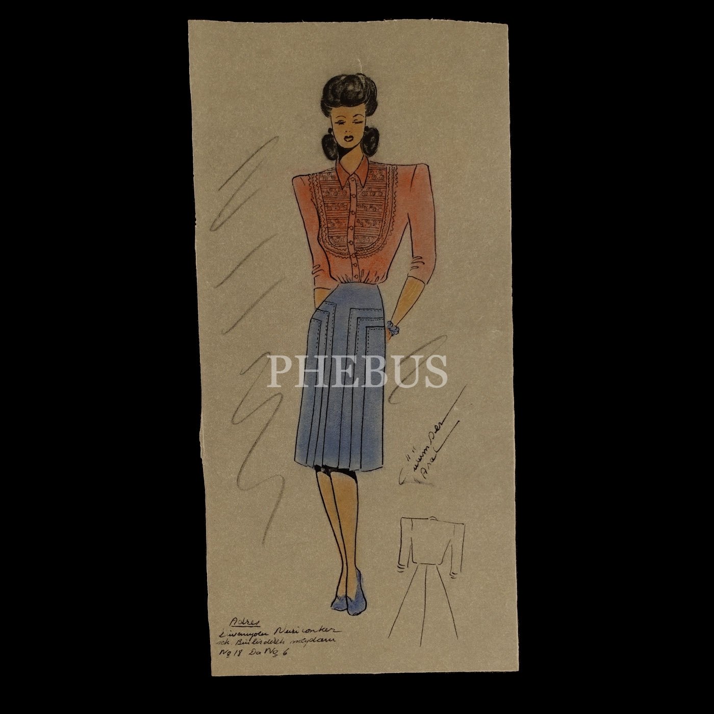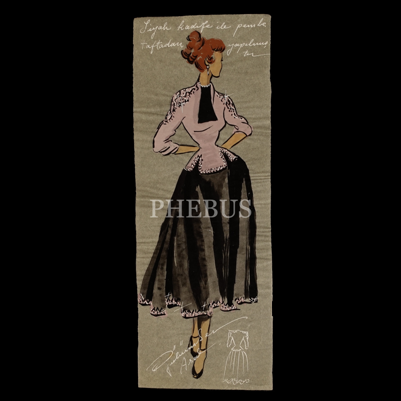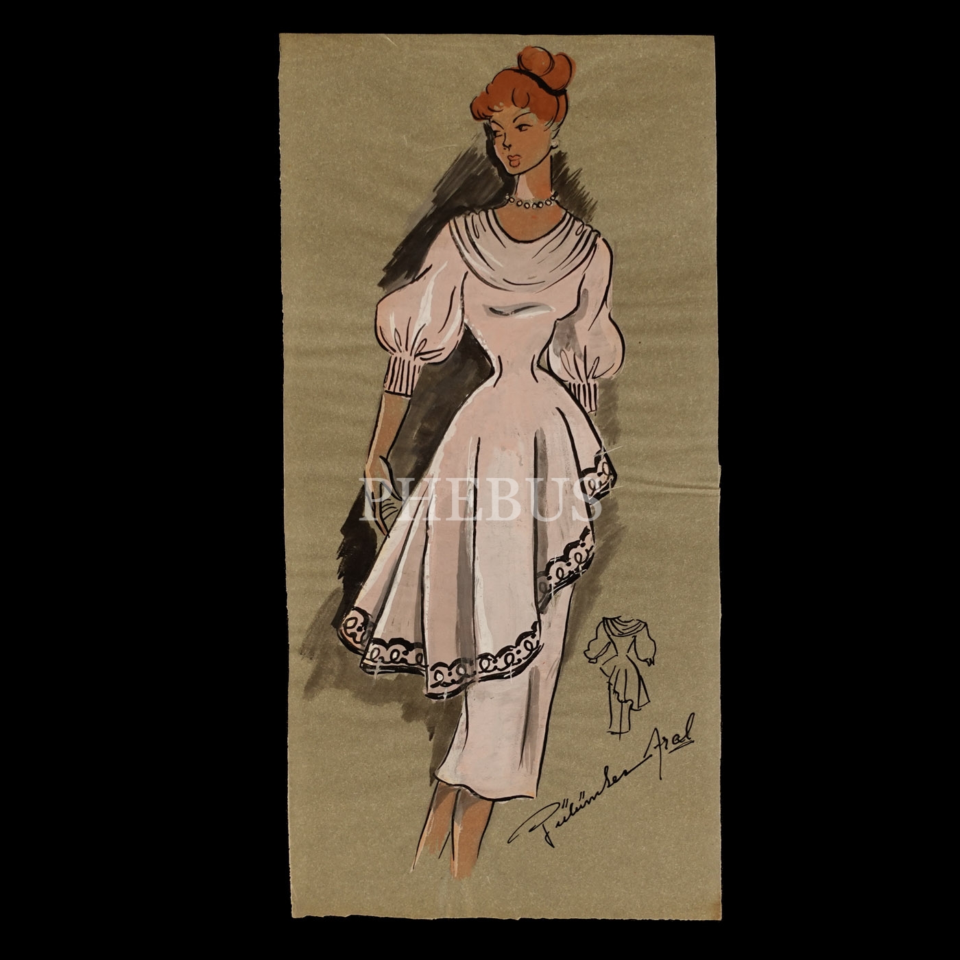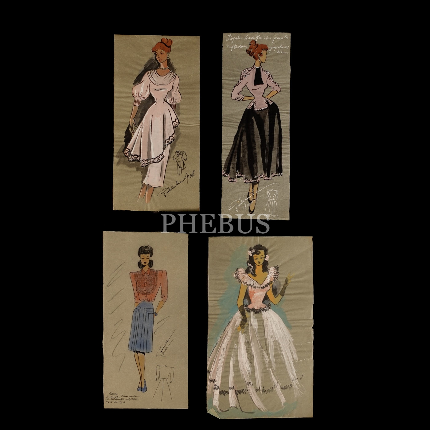 Gülümser Aral´ın EV-İŞ dergisi için çizdiği, üçü ıslak imzalı dört adet kıyafet tasarımı, ortalama 14x28 cm...