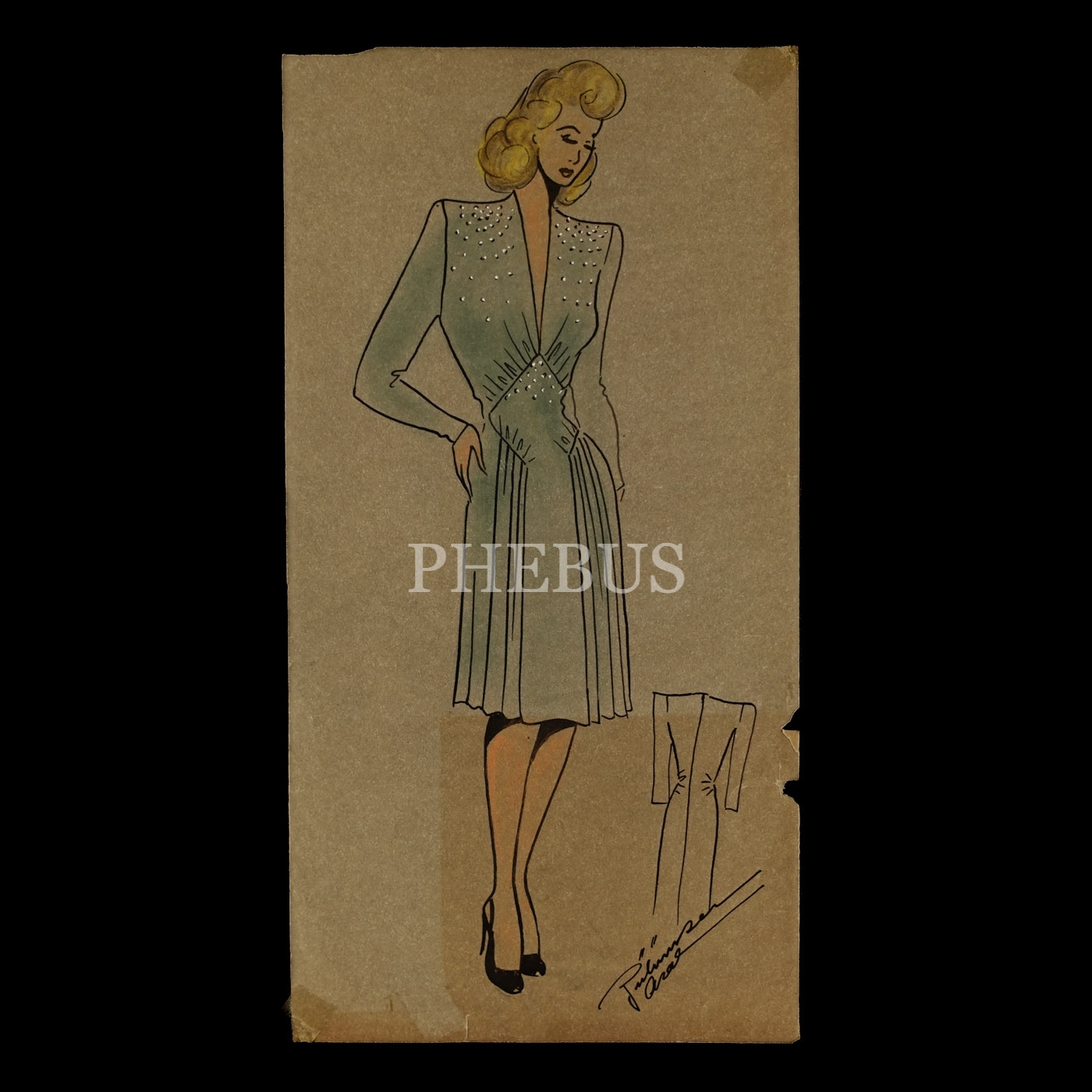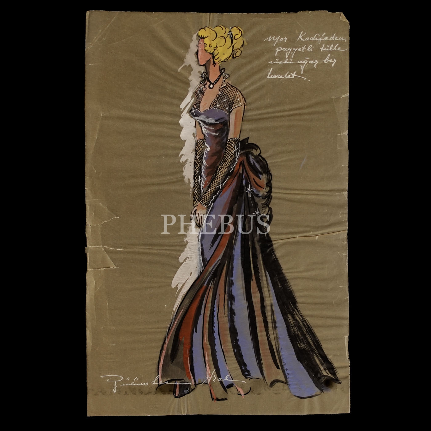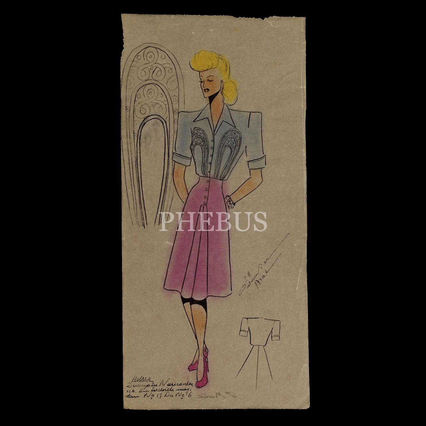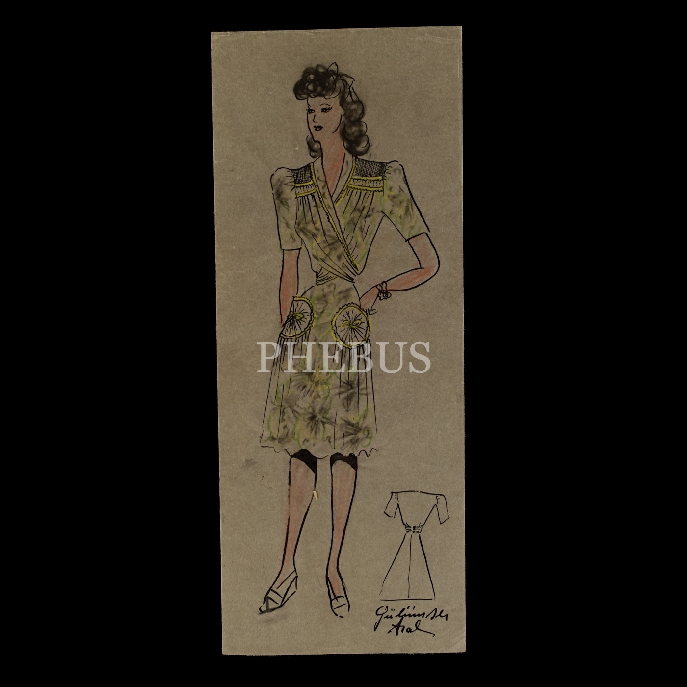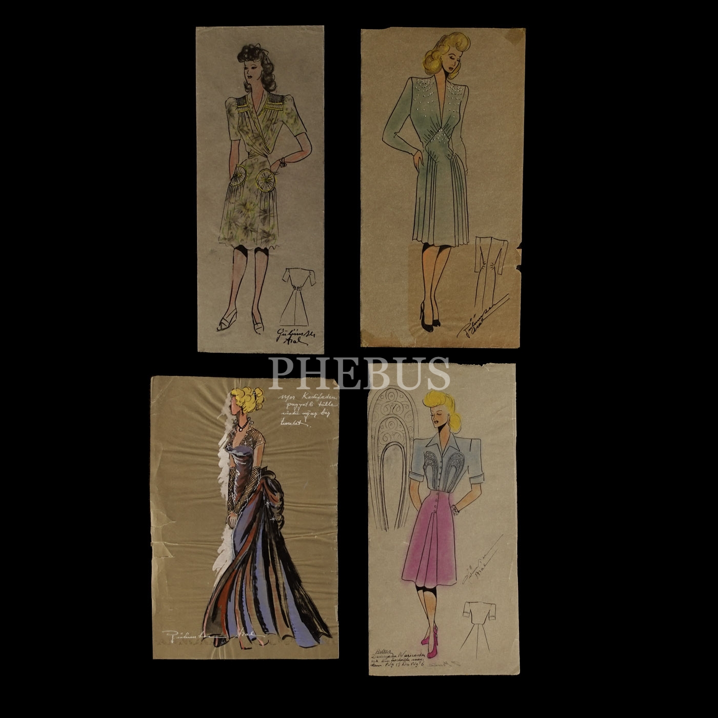 Gülümser Aral´ın EV-İŞ dergisi için çizdiği, üçü ıslak imzalı dört adet kıyafet tasarımı, ortalama 14x28 cm...