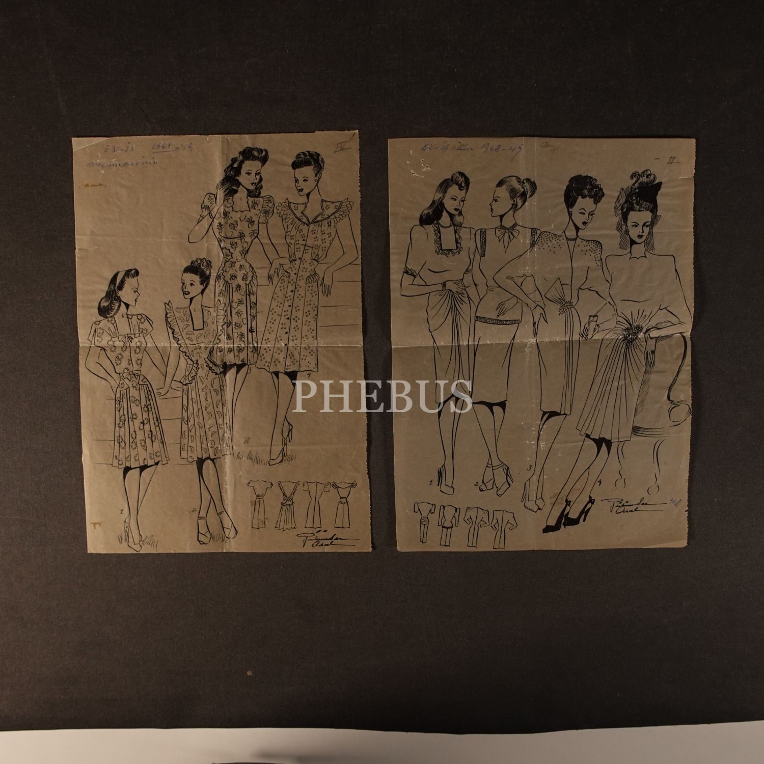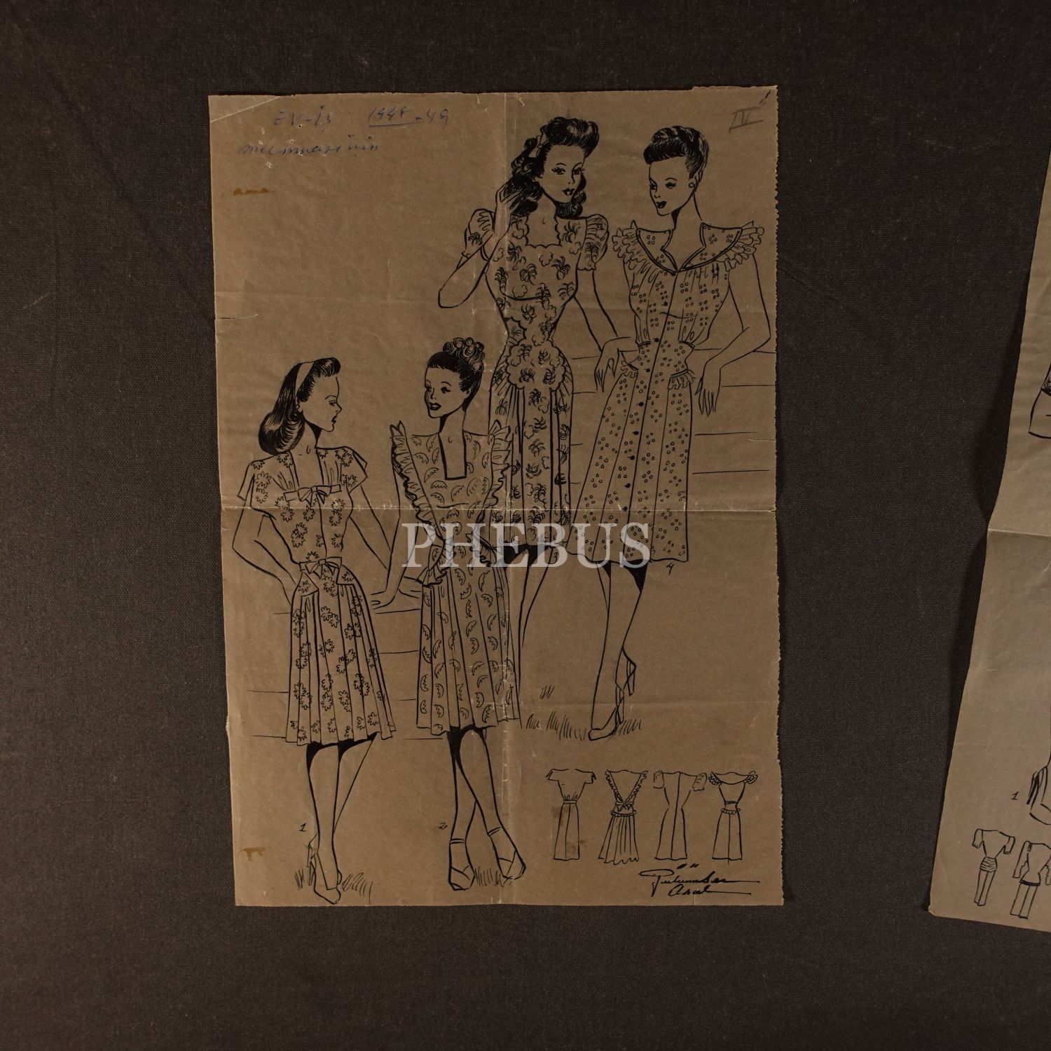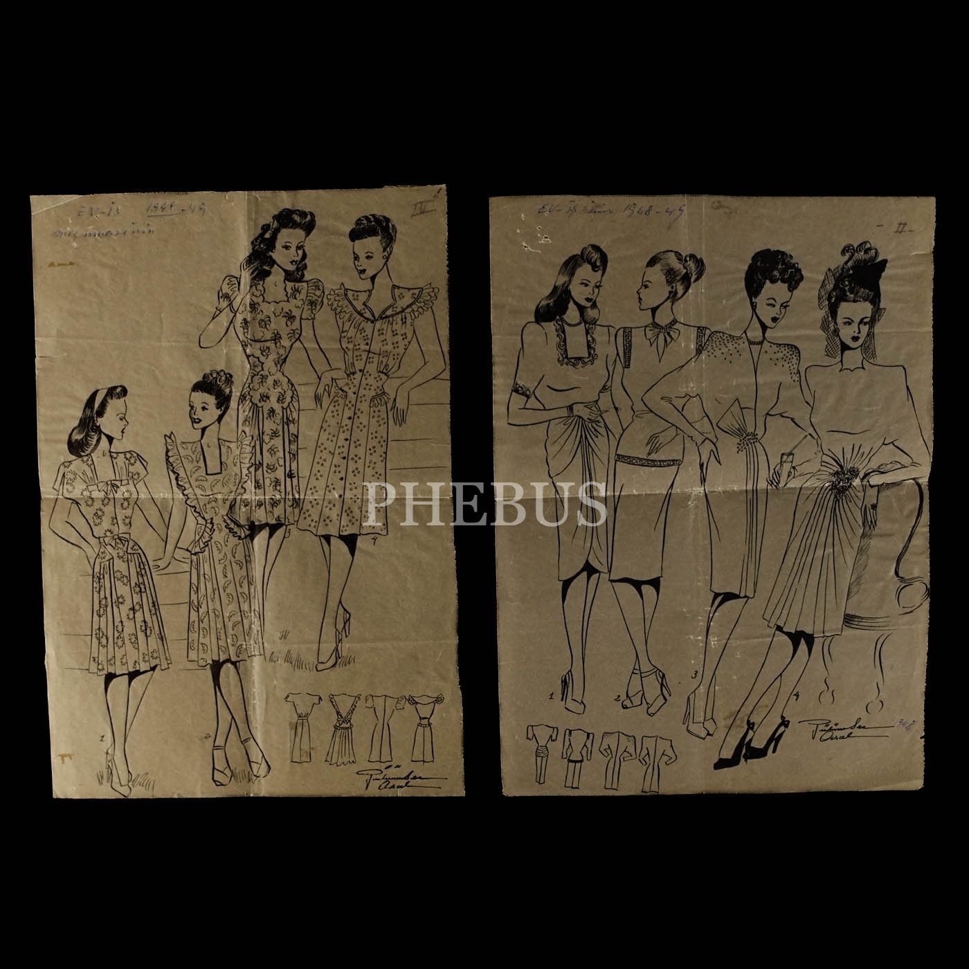 Gülümser Aral´ın EV-İŞ dergisi için çizdiği, ıslak imzalı iki adet kıyafet tasarımı, ortalama 22x25 cm...